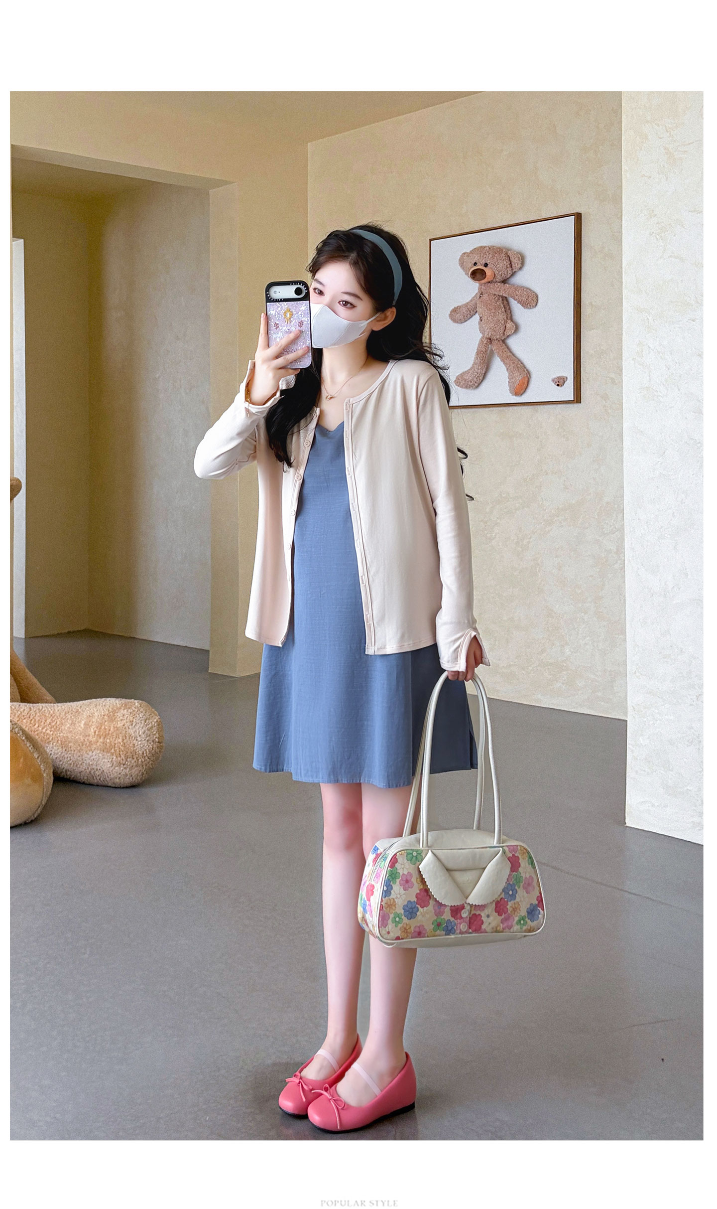 실사 임산부 파란색 아마 주간 실크 인사이드 가져 가라. 조끼 스커트 아몬드 황색 순수한 욕망 캐주얼 자외선 차단 니트 오픈 가디건