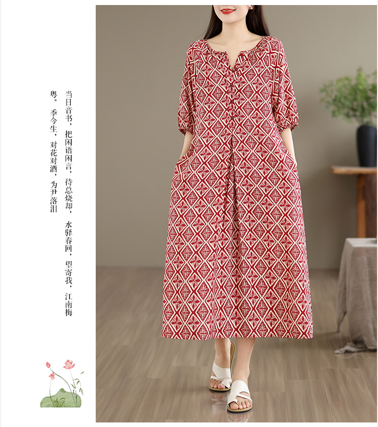 여름 요금 품격 슬림해 보이는 면 린넨 중국풍 개선 치파오 2026 여름 새로운 루즈핏 중간 길이 드레스