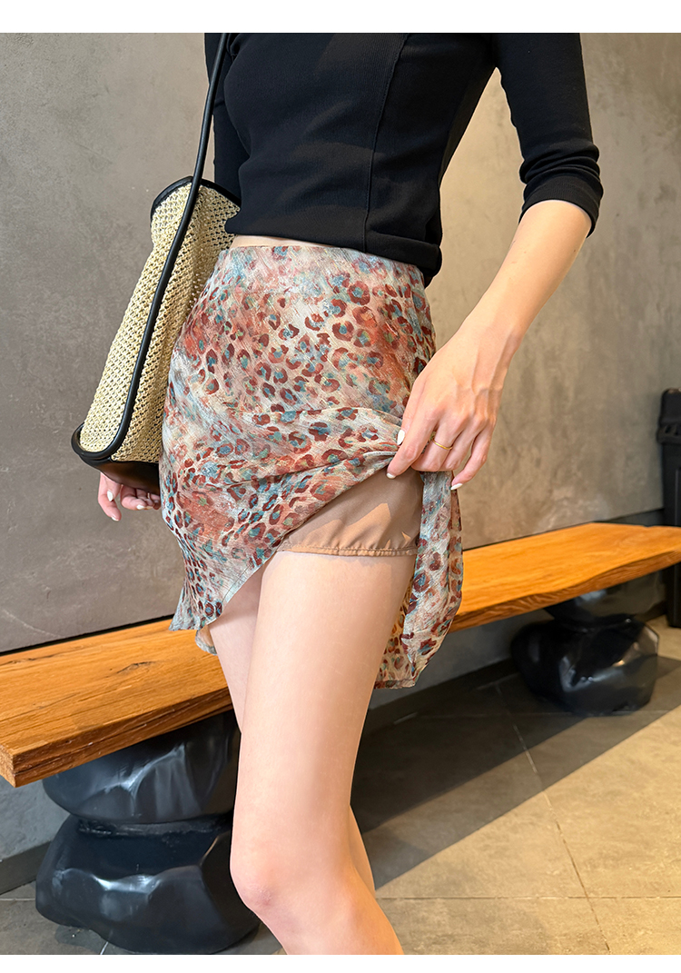 실사 2026 여름 새로운 다용도 금사 쉬폰 레오파드 무늬 한 마디 반신 스커트 타이트 스커트 몸매 가꾸기 인어 꼬리 미니 스커트 여성