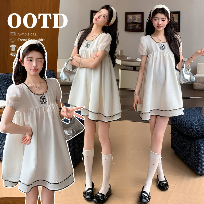 실사 지금 임산부 블랙 장미 자수 레이스 치마 이중층 플러스 금액 주간 실크 고급 센스 화이트 거품 소매