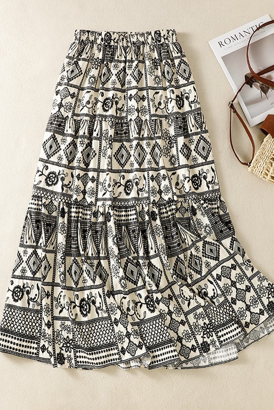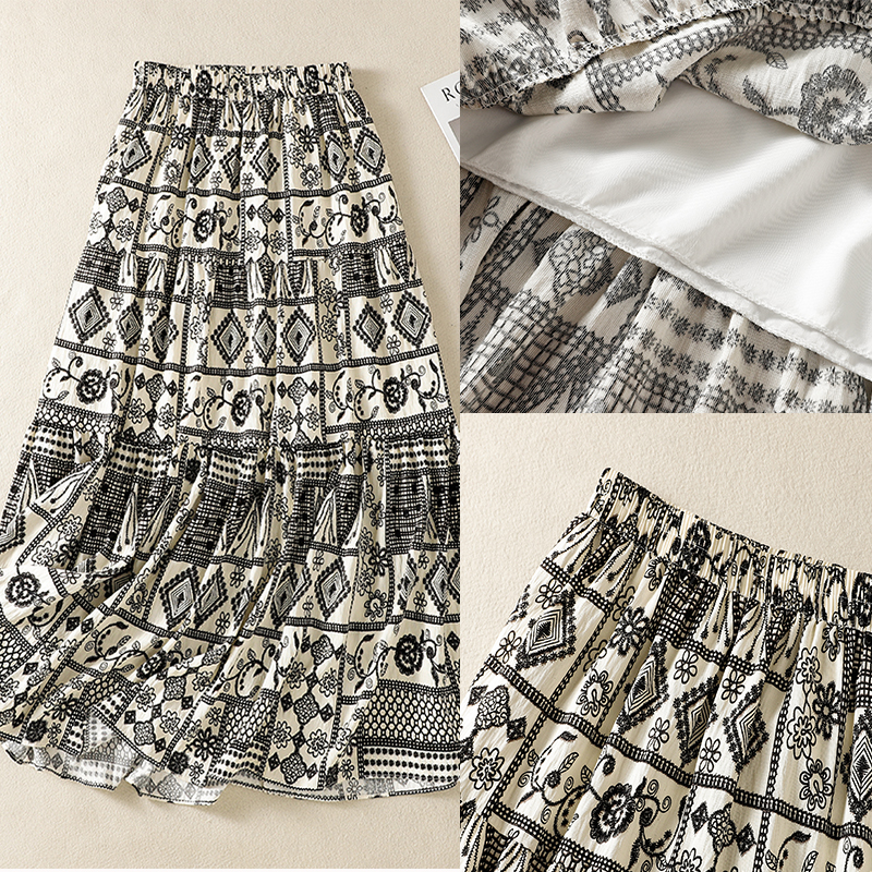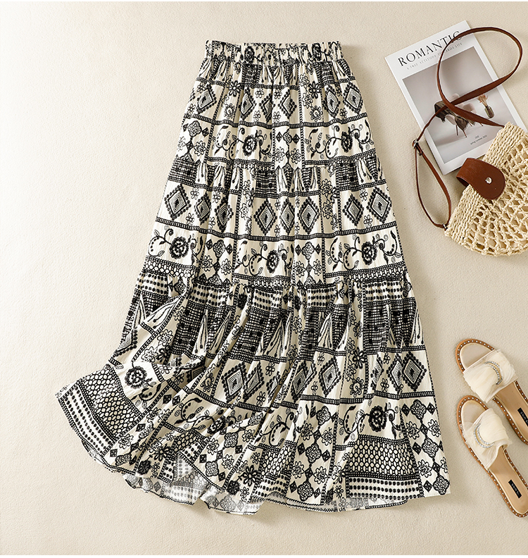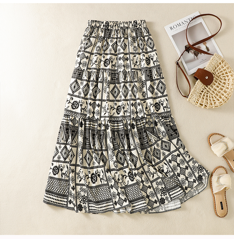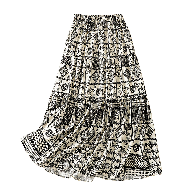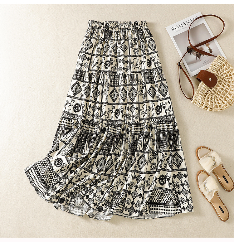 실사 보헤미안 휴가 바람 레트로 민족 스타일 큰 진자 허리밴드 반신 스커트 봄 여름 새로운