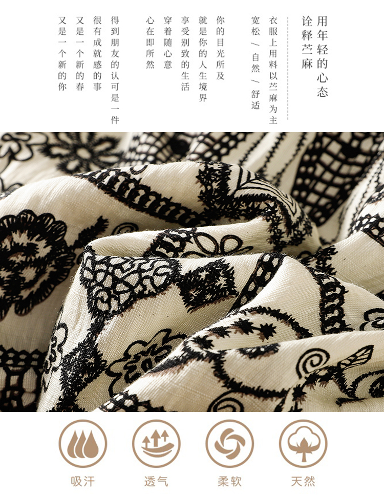 실사 여름 빅 사이즈 여성 라운드 넥 면 린넨 레트로 맨위 프린트 루즈핏 반팔