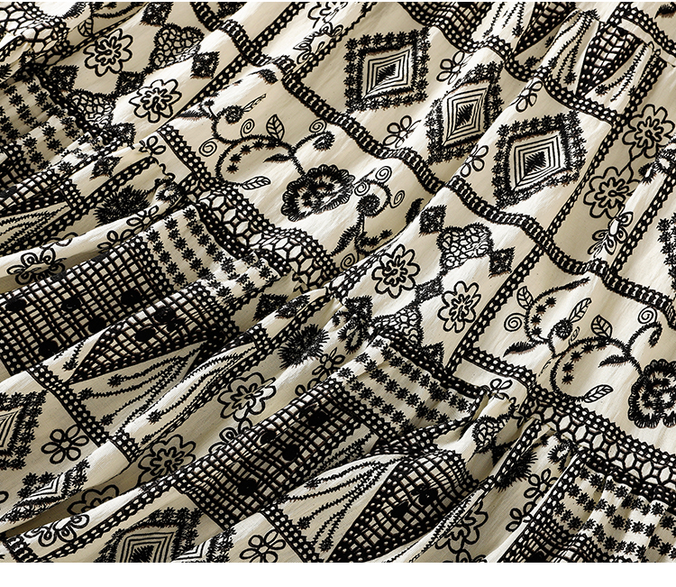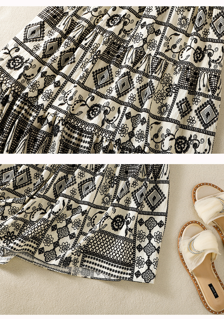 실사 2026 여름 디자인 센스 루즈핏 민족 스타일 프린트 여성 드레스 품격 여행 휴가 바람 롱 스커트