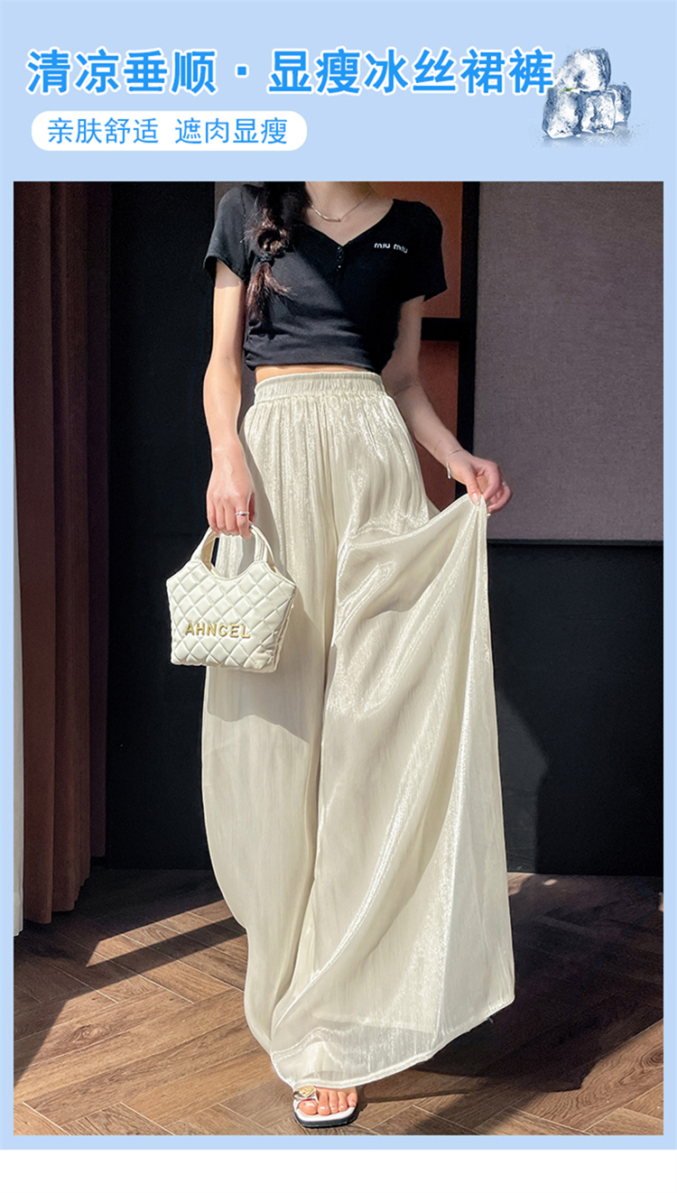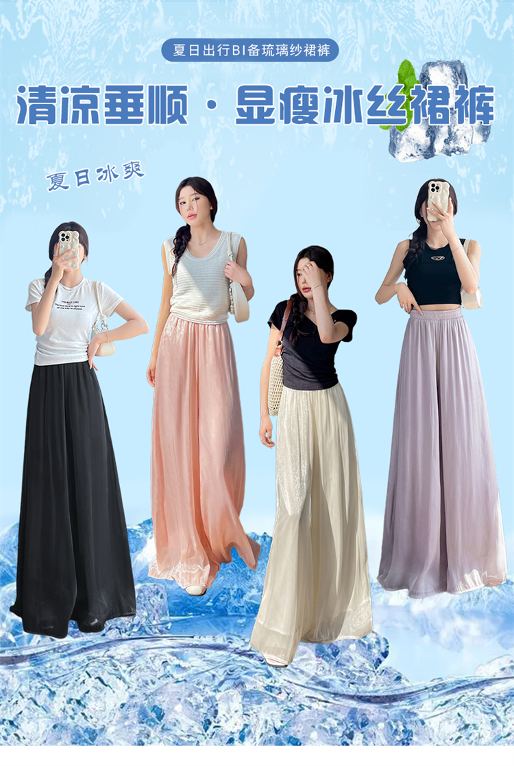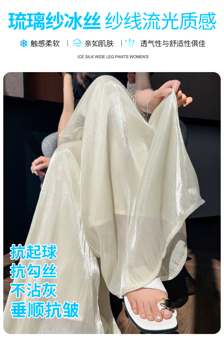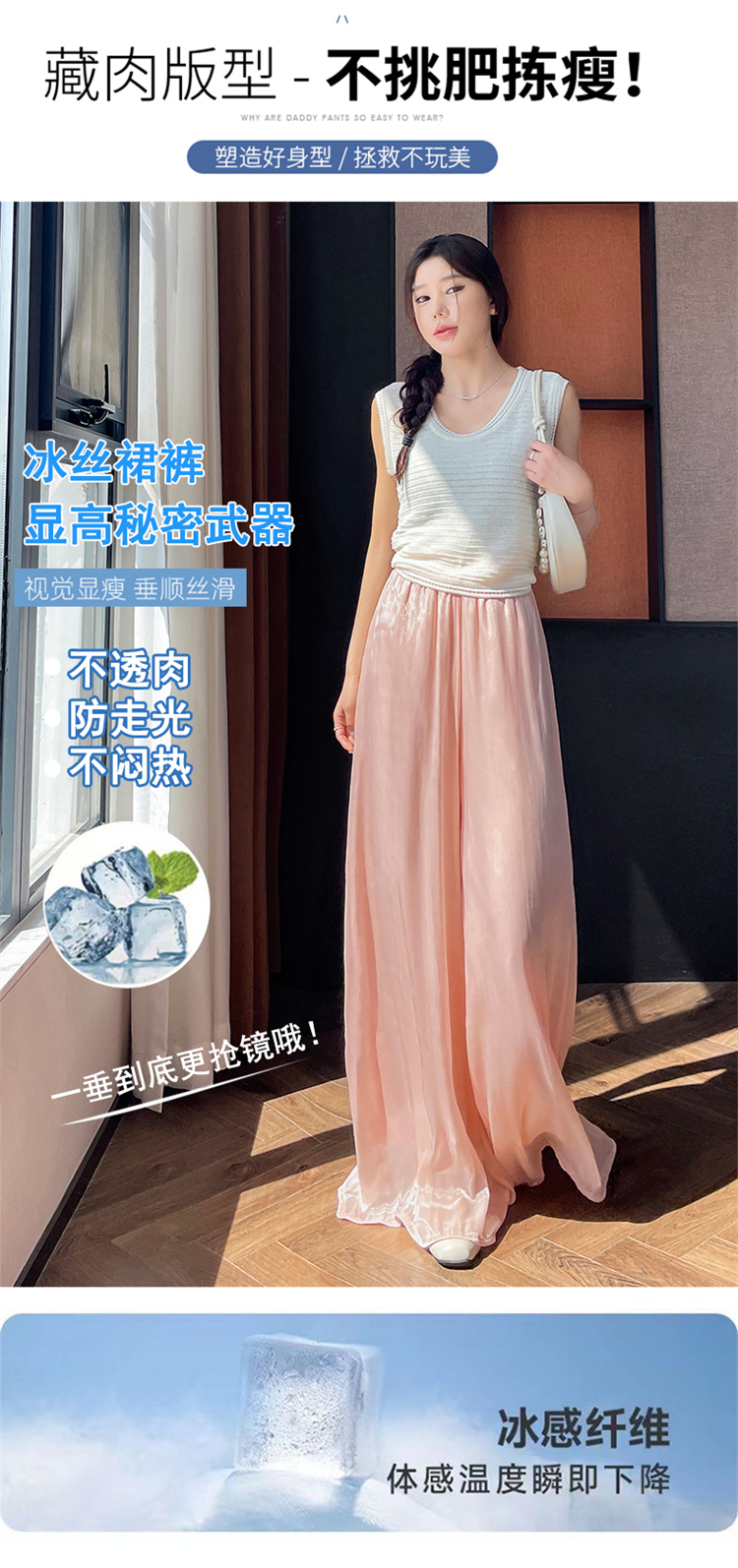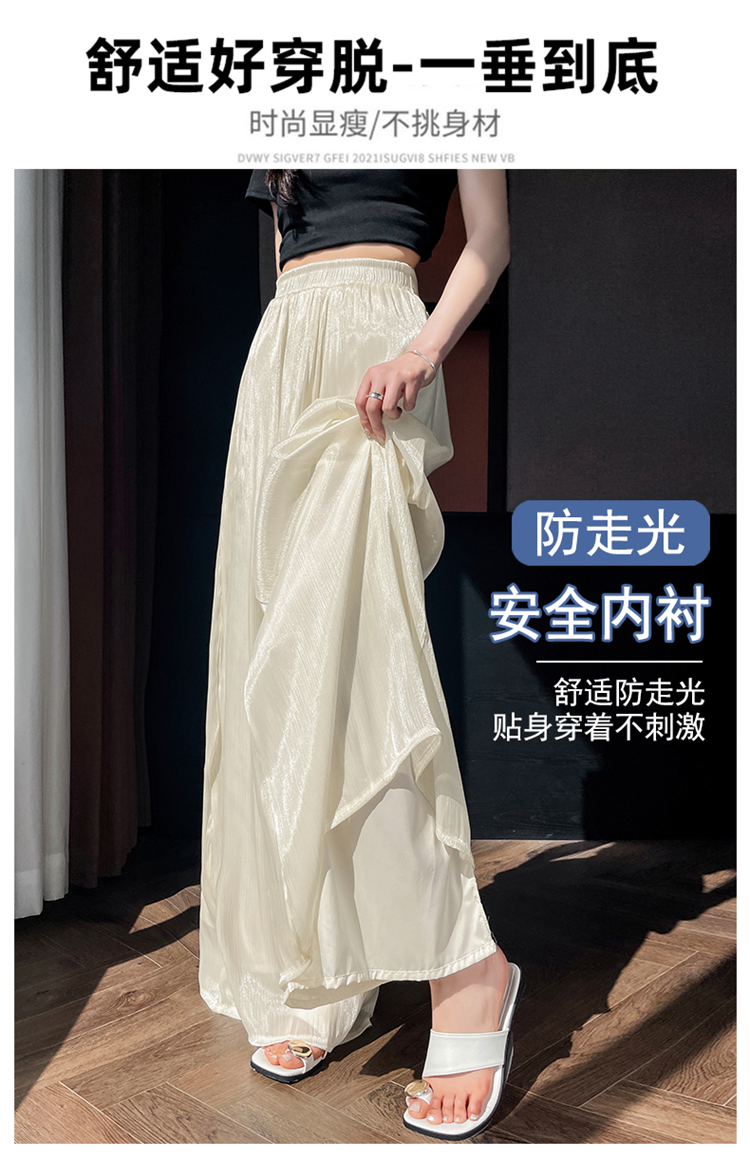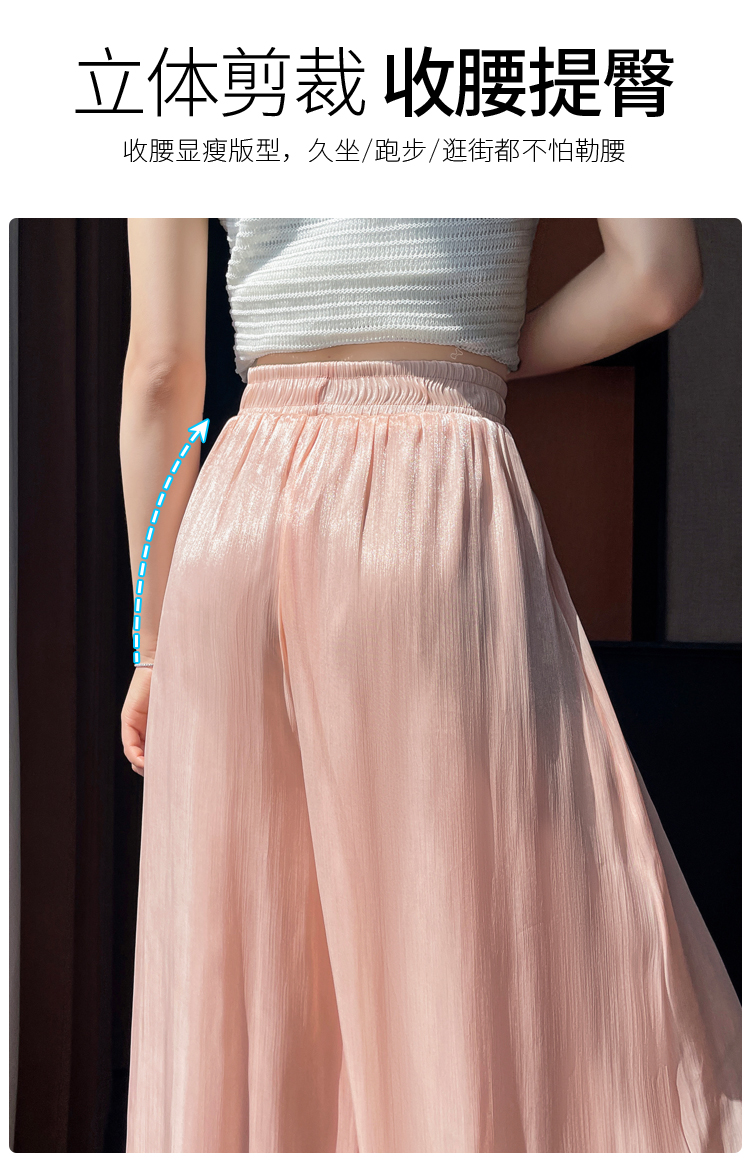 실사 2026 여름 새로운 얇은 스타일 유리 실 얼음 실크 치마바지 여성 하이웨이스트 요정 가스 펄럭 이는 자외선 차단 바지