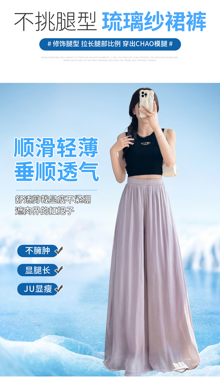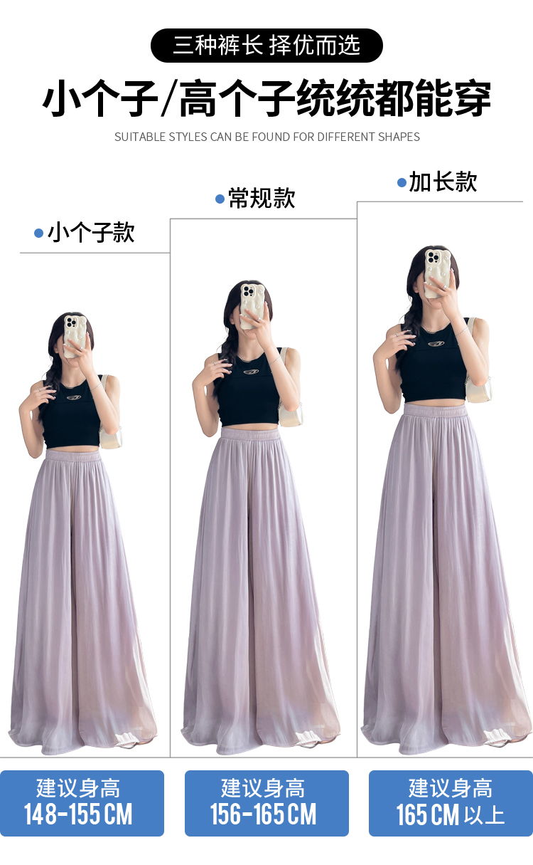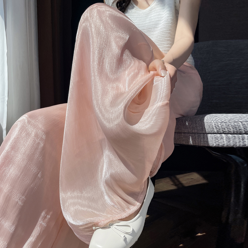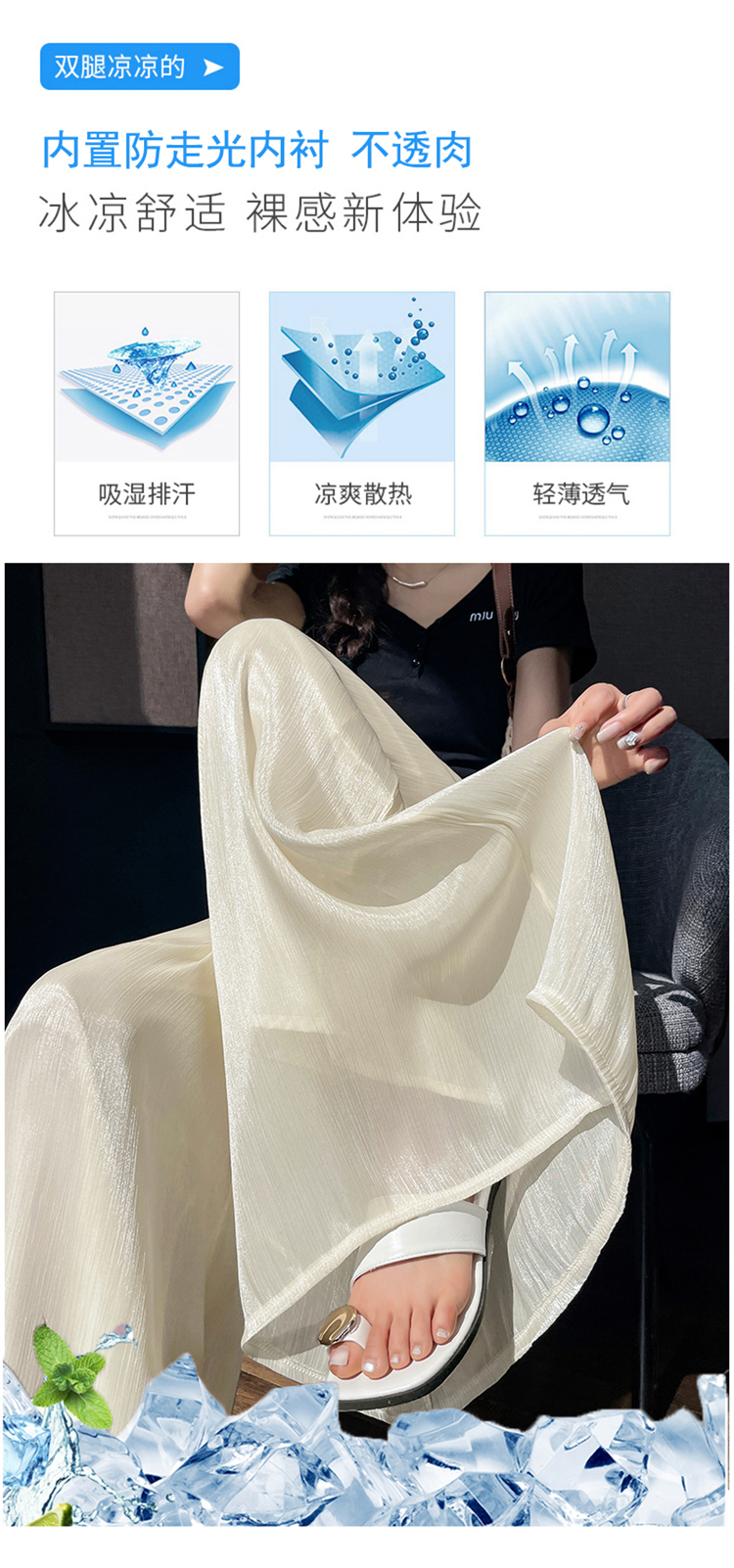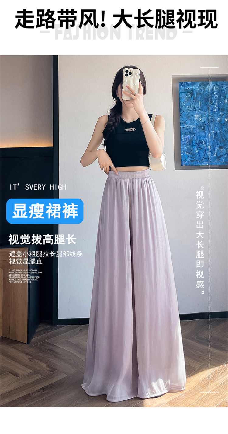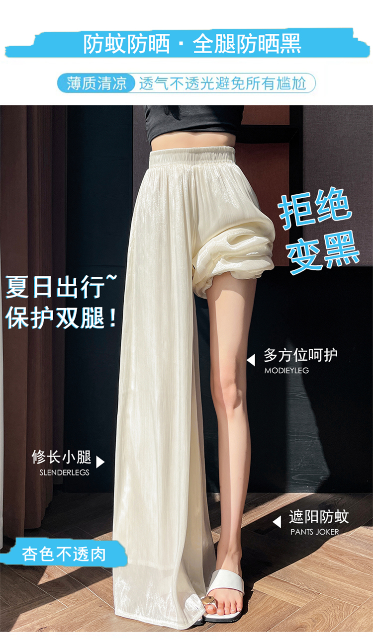 실사 2026 여름 새로운 얇은 스타일 유리 실 얼음 실크 치마바지 여성 하이웨이스트 요정 가스 펄럭 이는 자외선 차단 바지