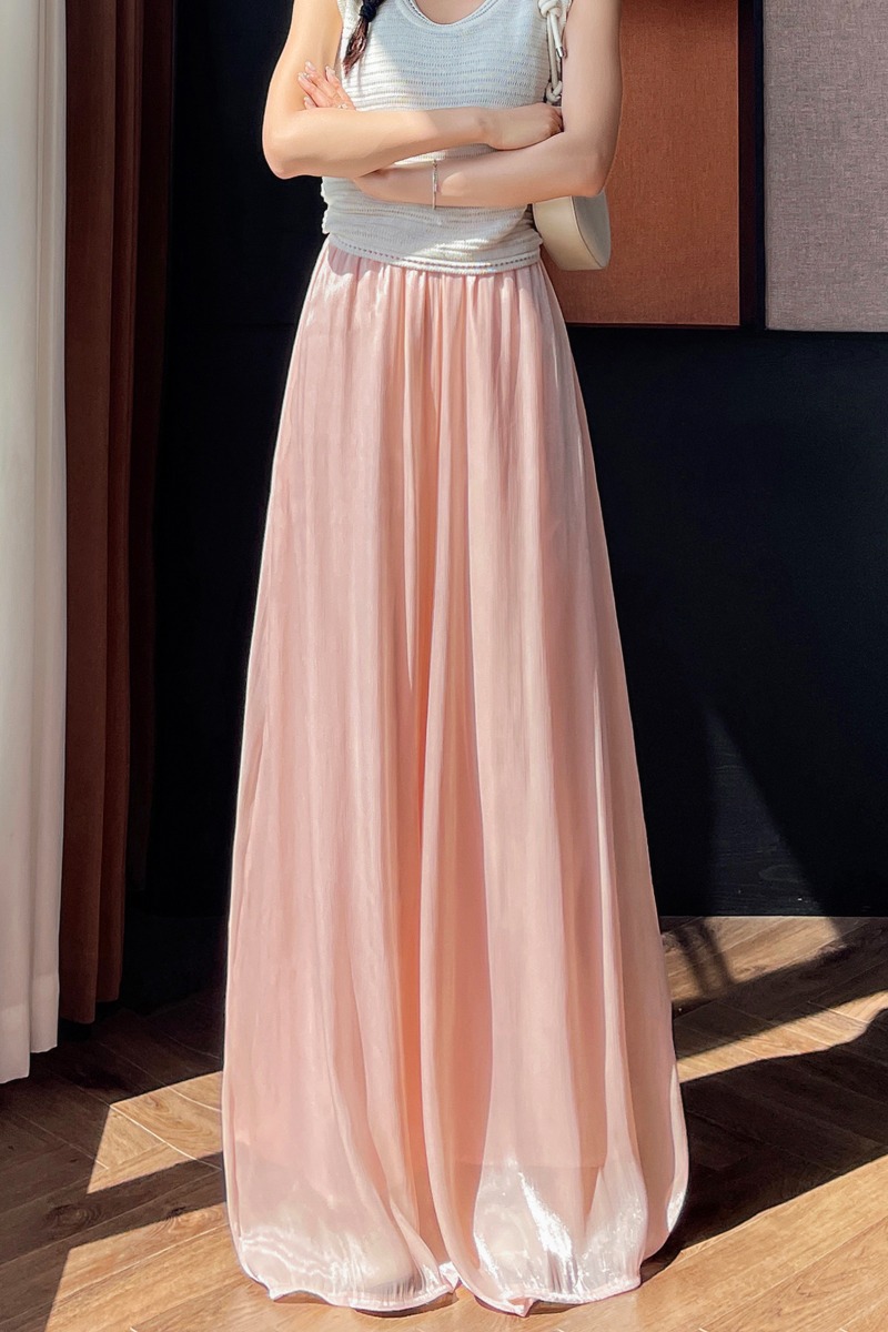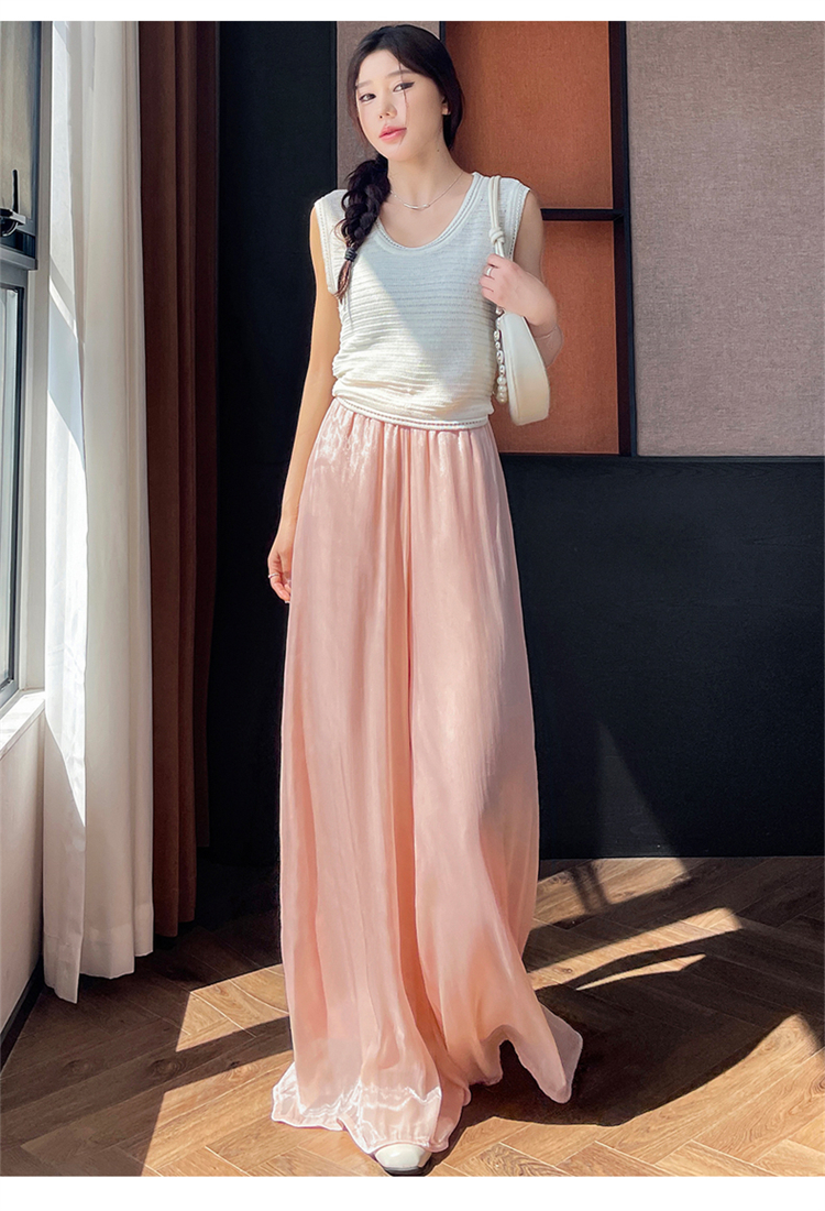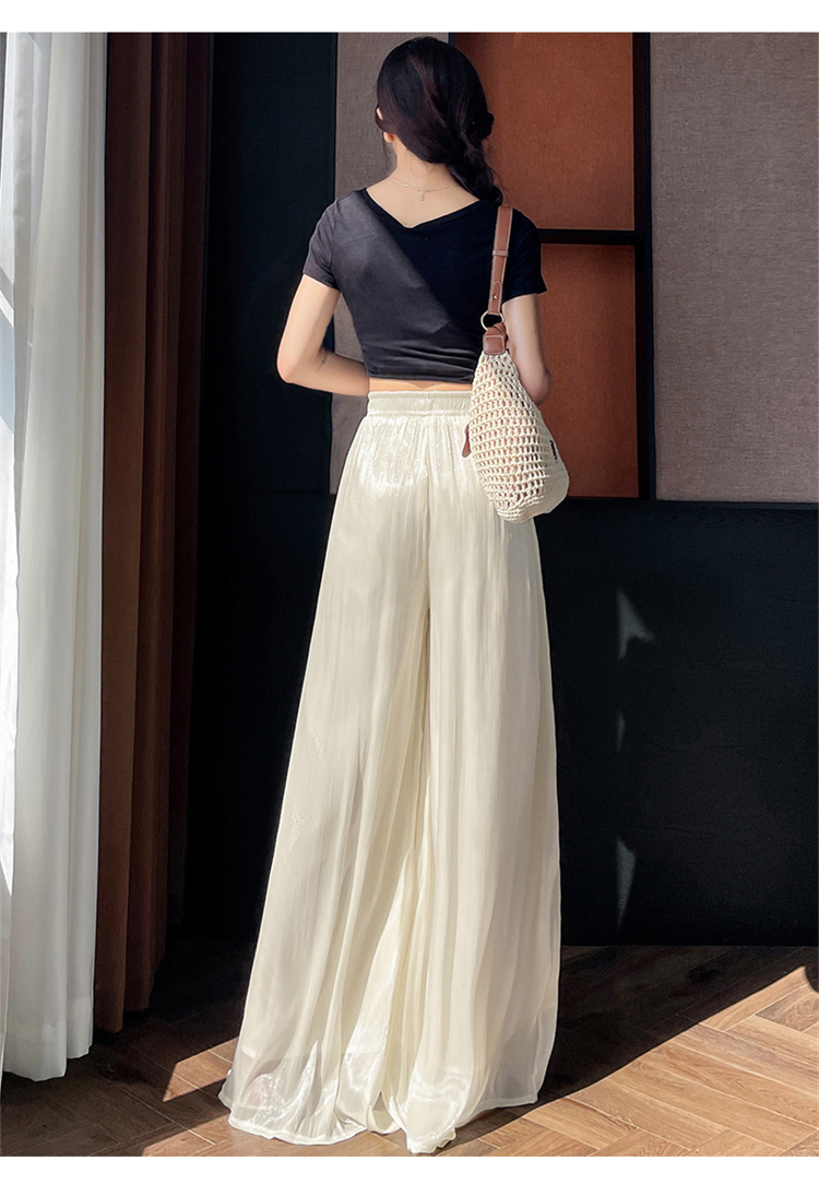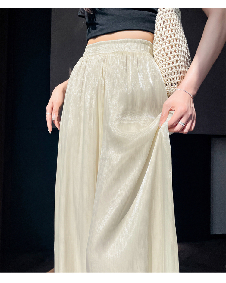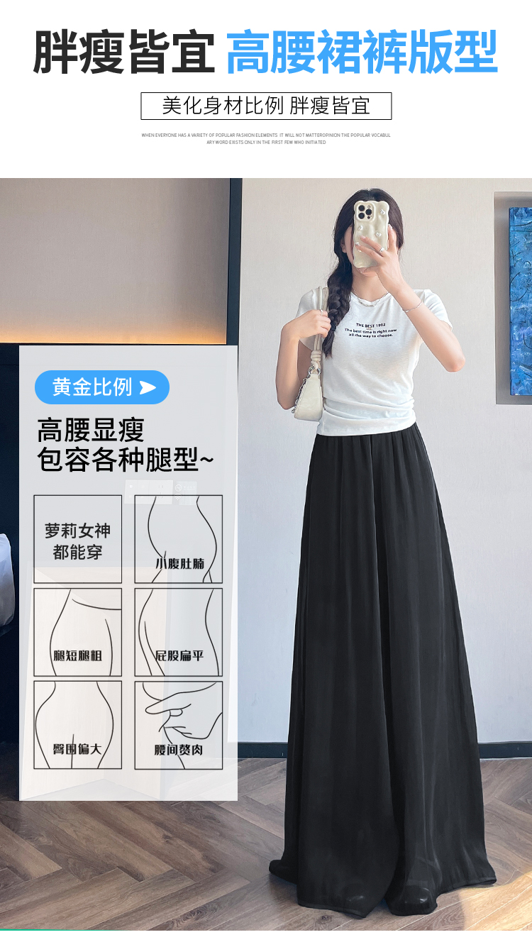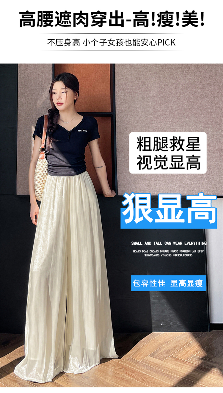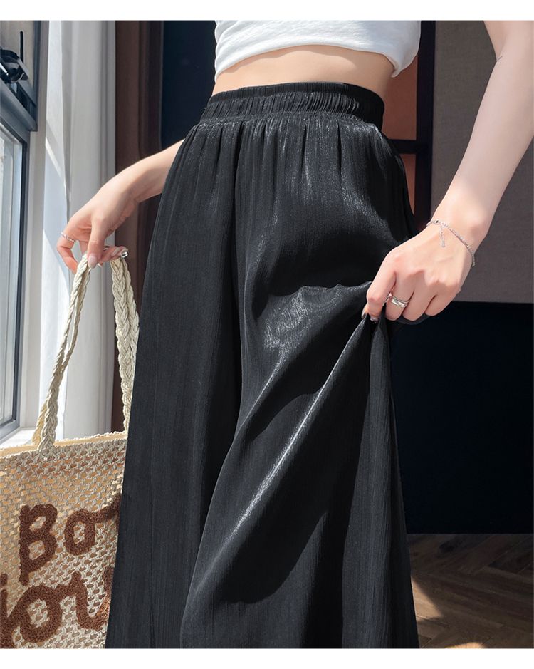 실사 2026 여름 새로운 얇은 스타일 유리 실 얼음 실크 치마바지 여성 하이웨이스트 요정 가스 펄럭 이는 자외선 차단 바지
