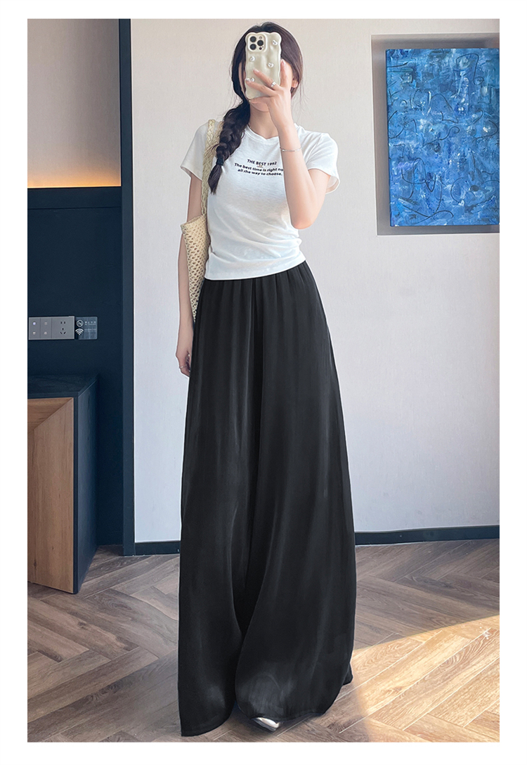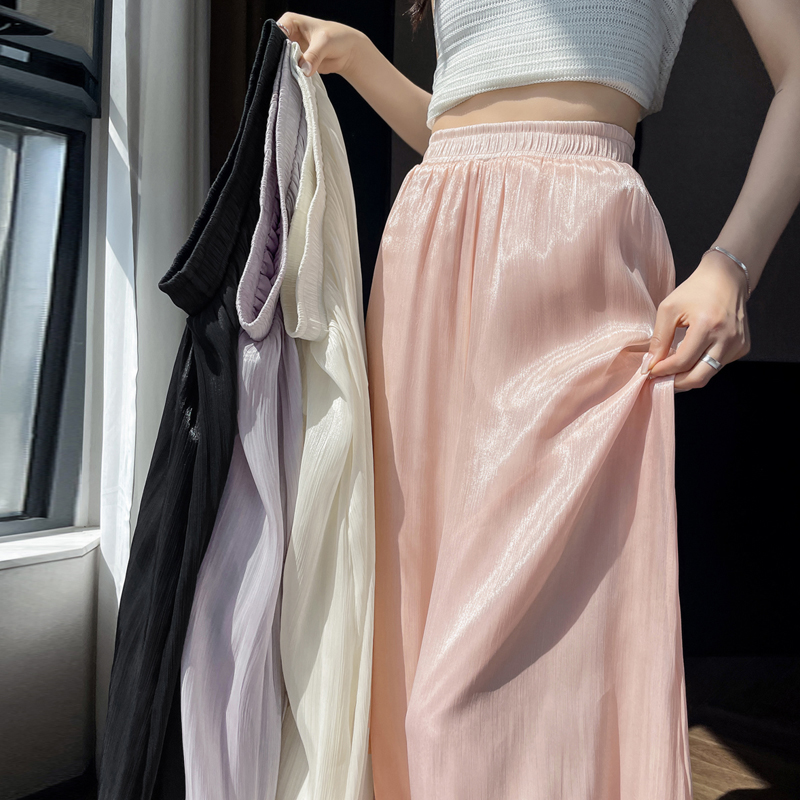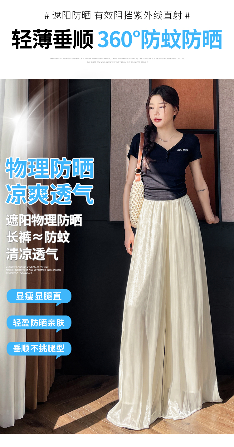 실사 2026 여름 새로운 얇은 스타일 유리 실 얼음 실크 치마바지 여성 하이웨이스트 자외선 차단 바지 바닥 청소 바지 여성