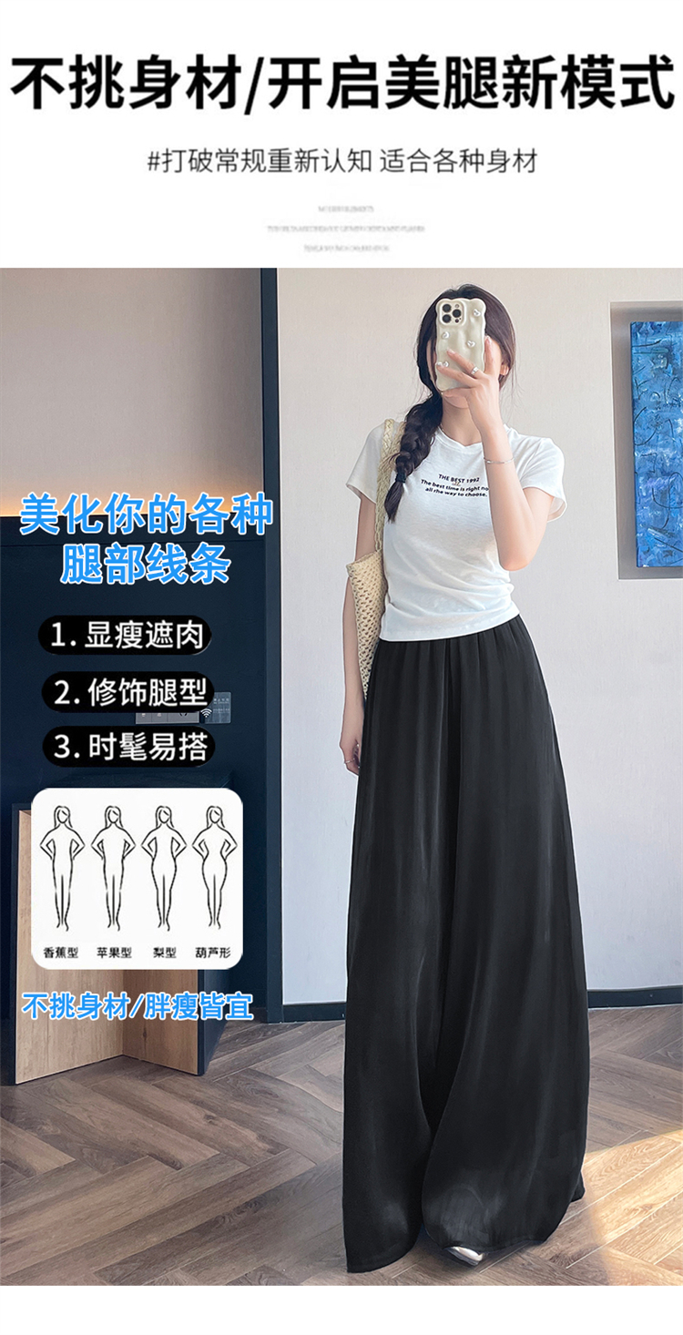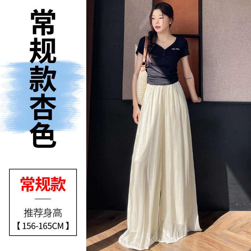 실사 2026 여름 새로운 밝은 훈련 얼음 실크 바지 아세트산 새틴 하이웨이스트 스트레이트 핫픽스 자외선 차단 와이드 레깅스 바지