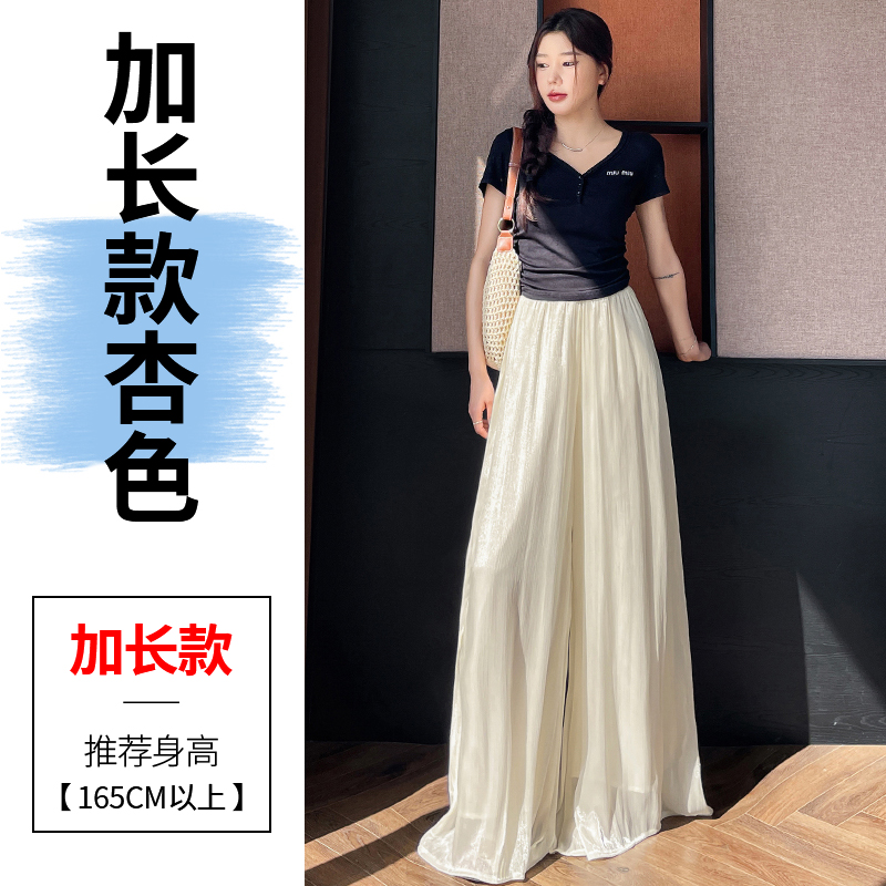 실사 2026 여름 새로운 주간 실크 아마 와이드 레그 팬츠 하이웨이스트 캐주얼 바지 얼음 실크 스트레이트 바닥 청소 바지 여성