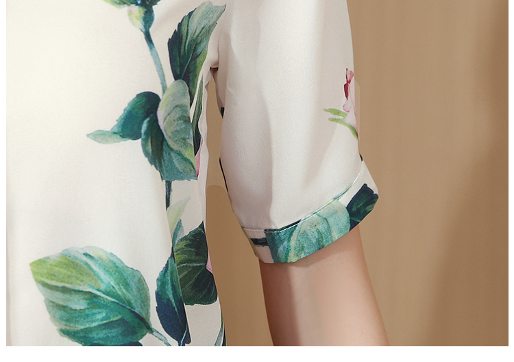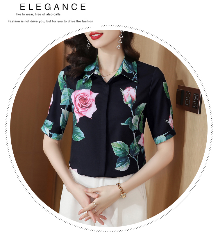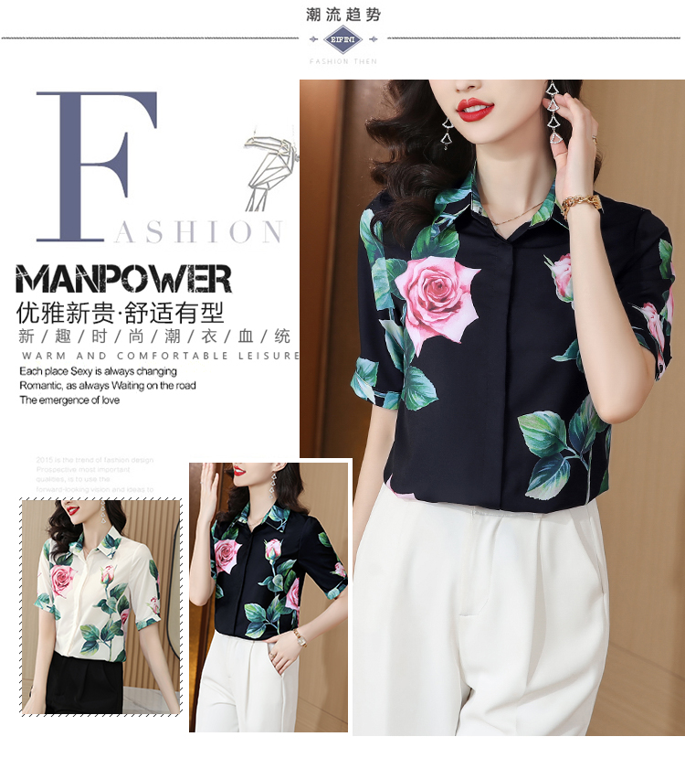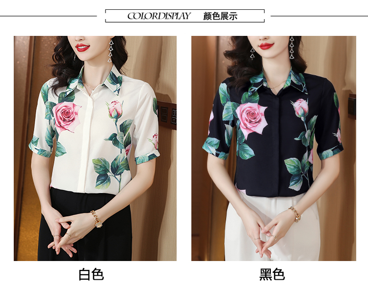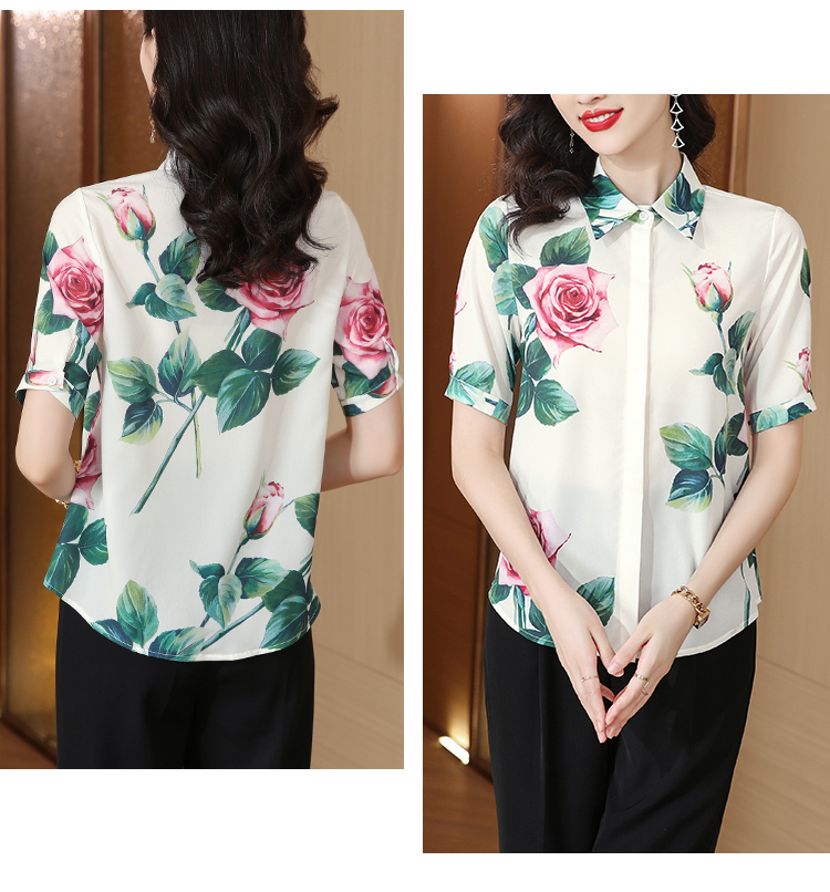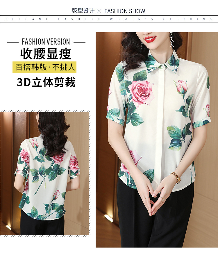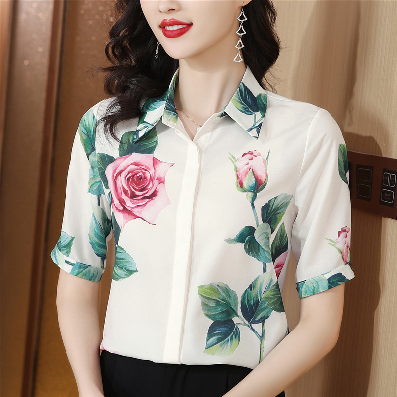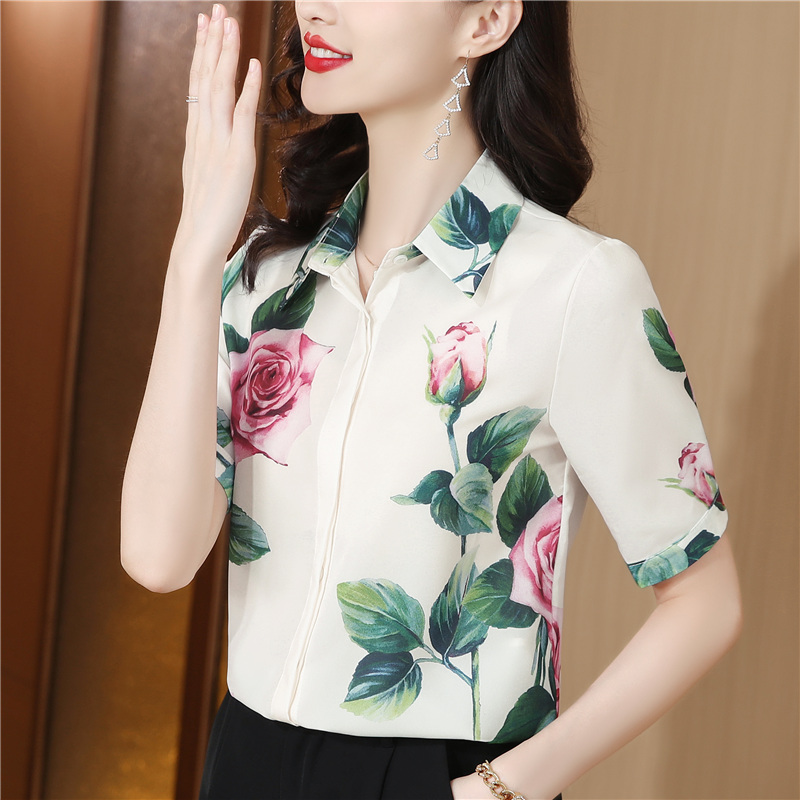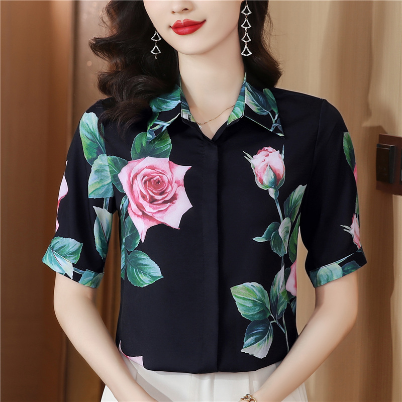 무거운 실크 맨위 여성 뽕나무 누에 실크 외국 가스 프린트 셔츠 여름 드레스 새로운 루즈핏 반팔 폴로 칼라 비단 셔츠