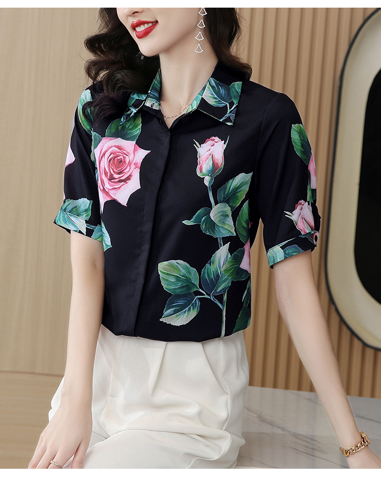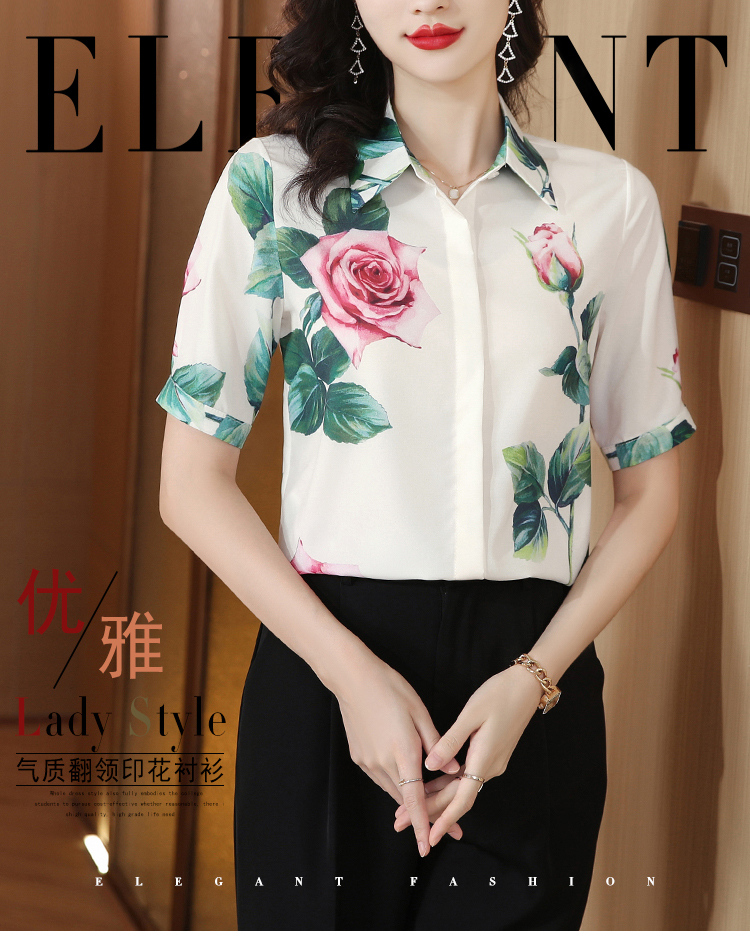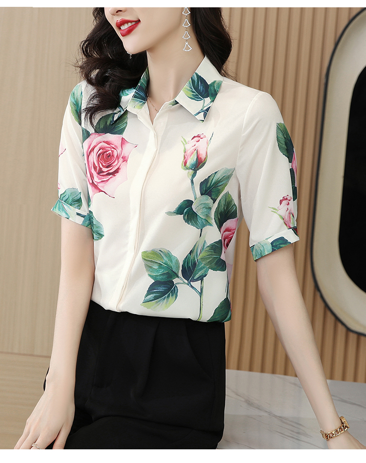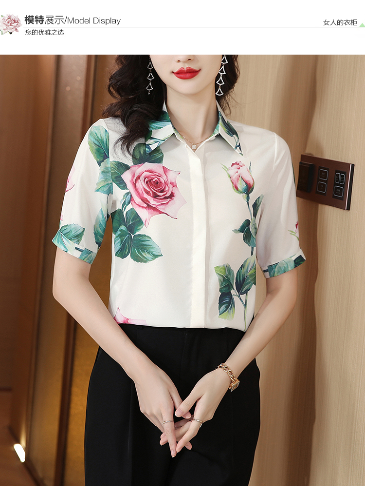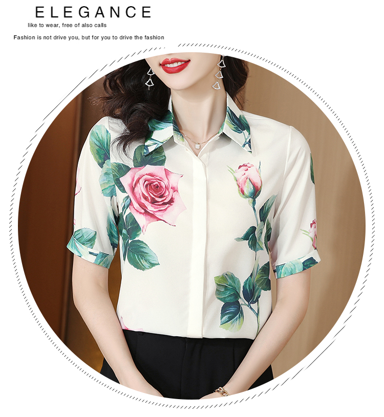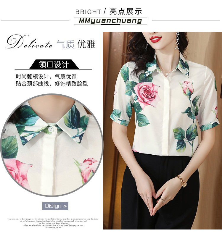 실크 셔츠 여성용 짧은 소매 2026 여름 드레스 새로운 셔츠 여성 여름 섹션 Chic 꽃무늬 아름다운 뽕나무 누에 실크 맨위