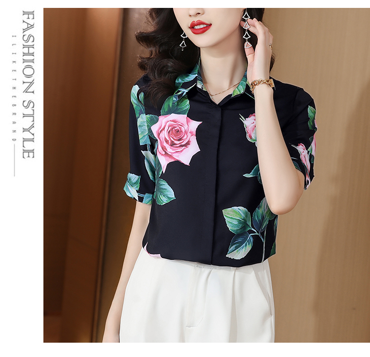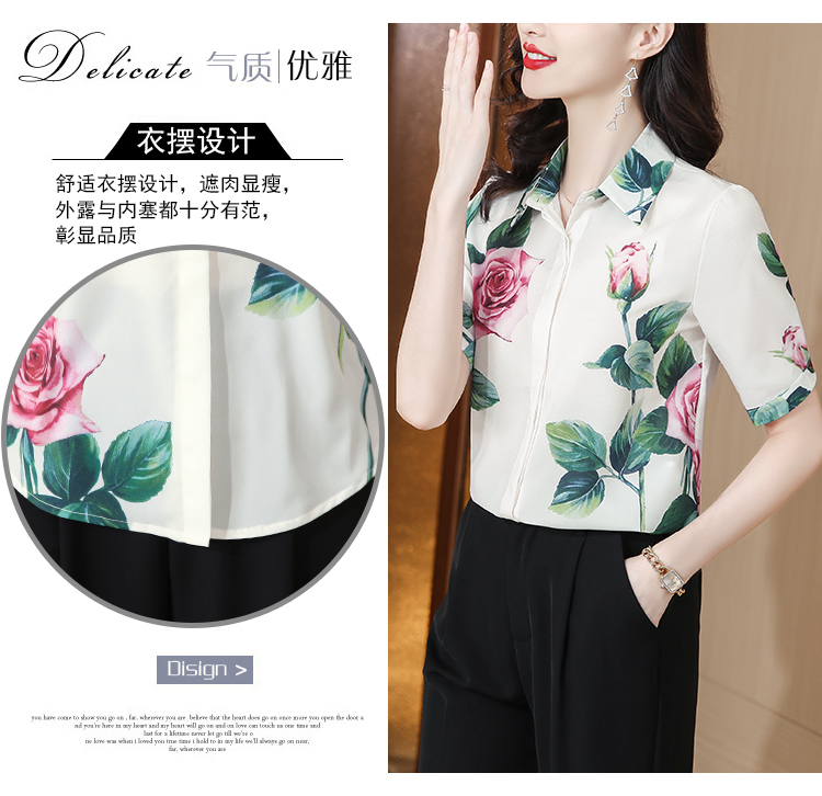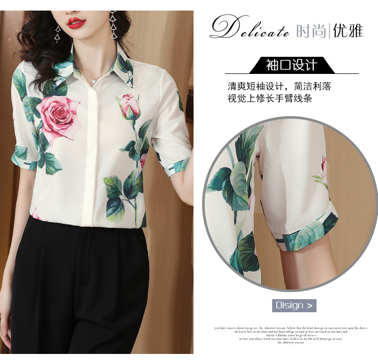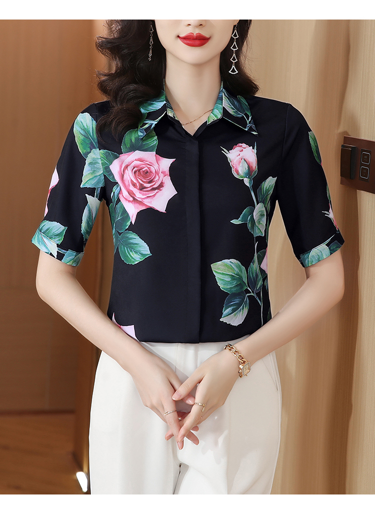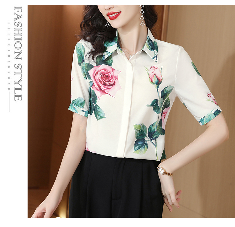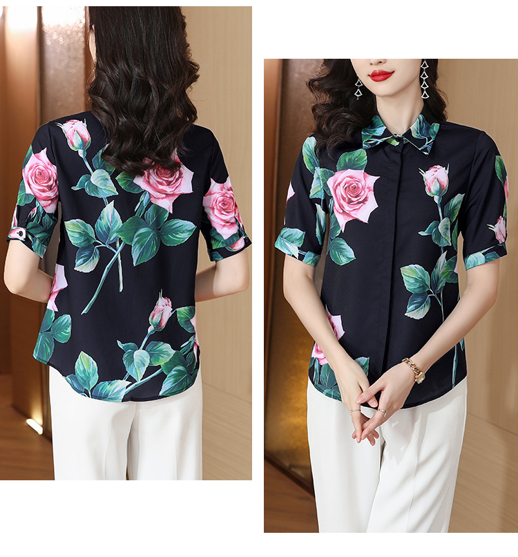 실크 셔츠 여성용 짧은 소매 2026 여름 드레스 새로운 셔츠 여성 여름 섹션 Chic 꽃무늬 아름다운 뽕나무 누에 실크 맨위