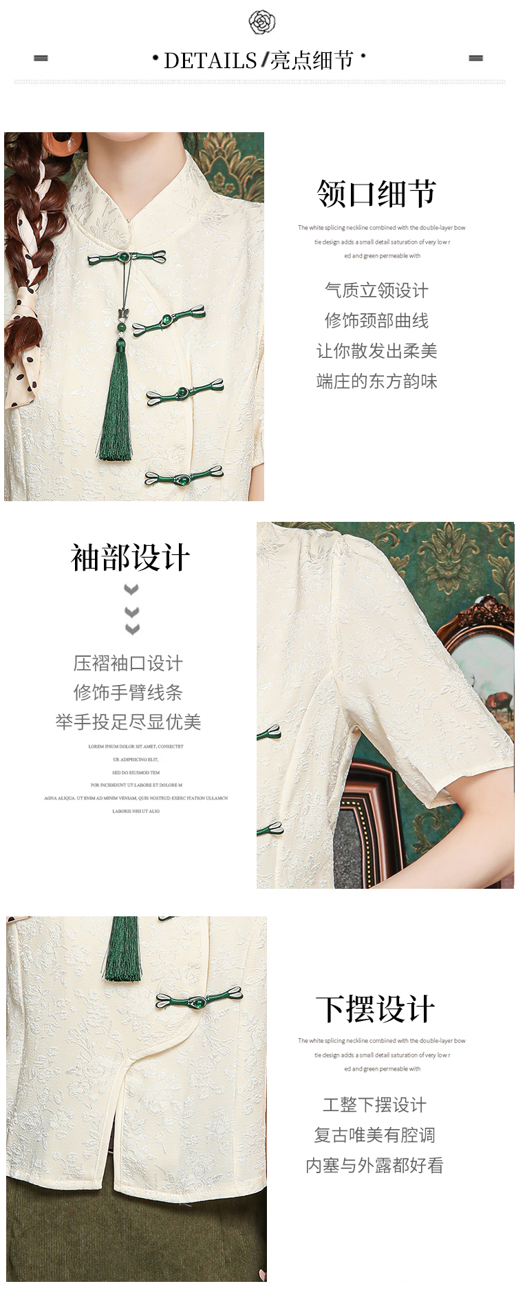 새로운 중식 실크 셔츠 여성 의류 7부 소매 봄 가을 여름 새로운 단추 작은 셔츠 국풍 자카드 당나라 맨위