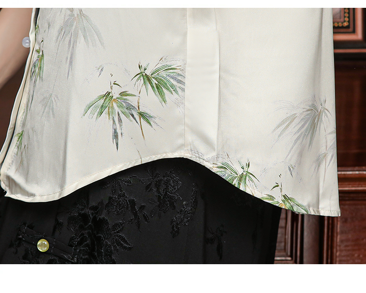 새로운 중식 스탠드 칼라 반팔 여성 셔츠 여름 국풍 레트로 자카드 말 얼굴 치마 맨위 출퇴근 면접 품격 셔츠