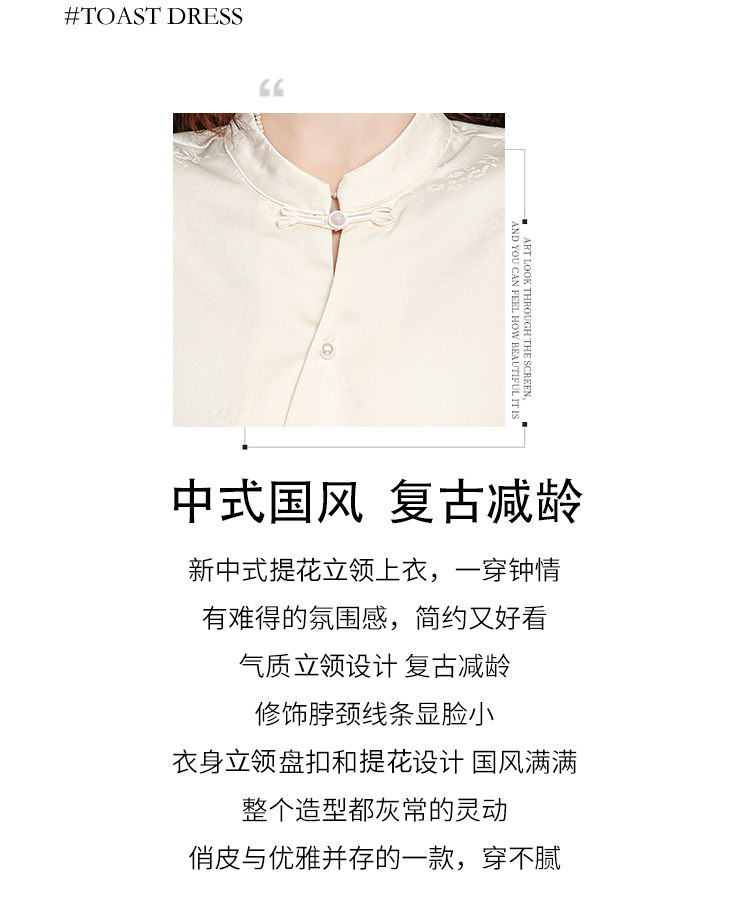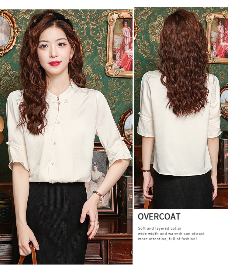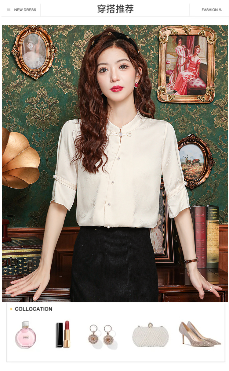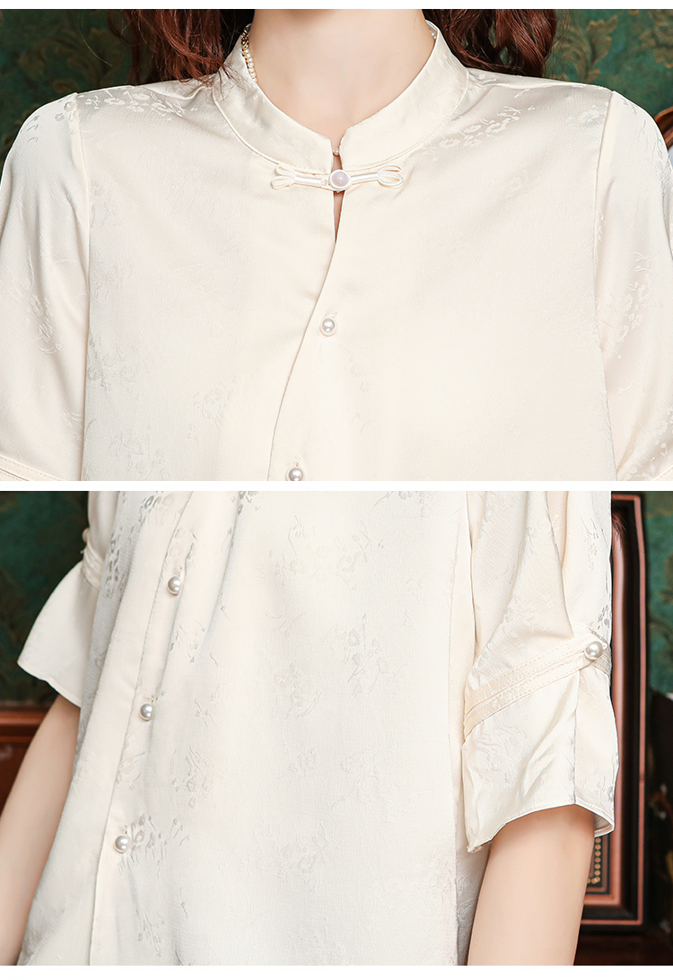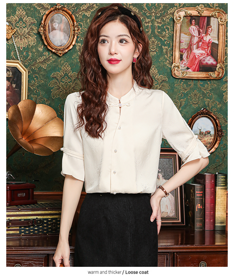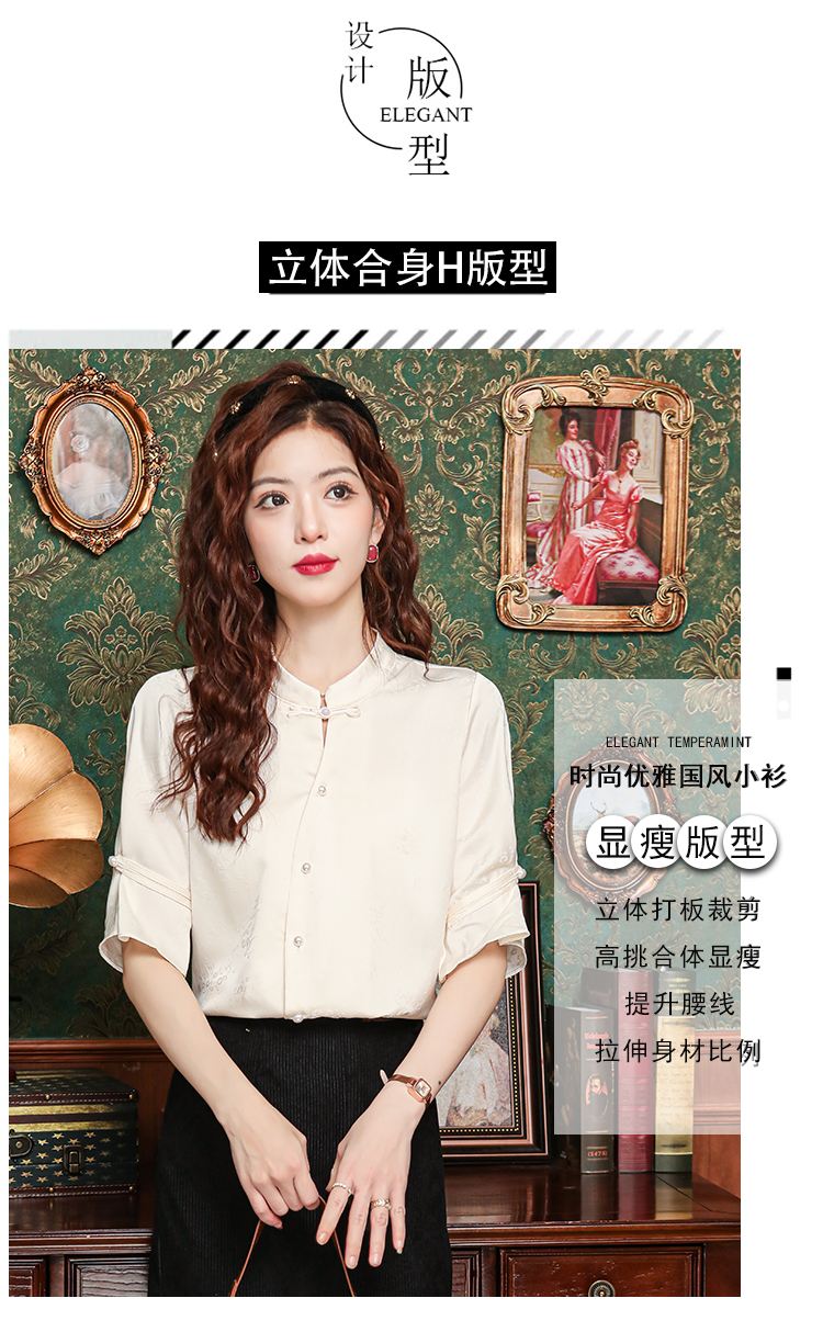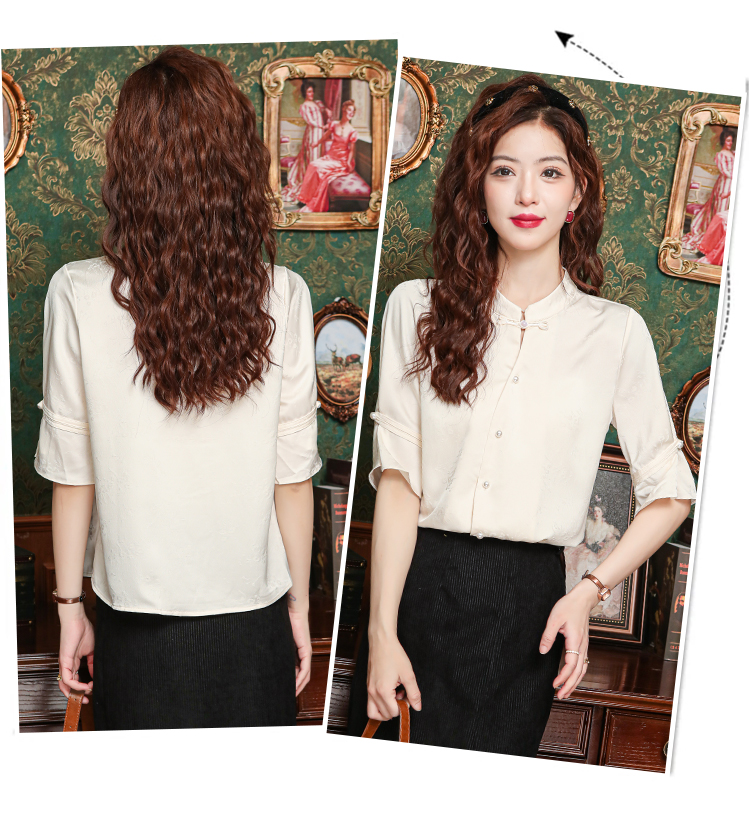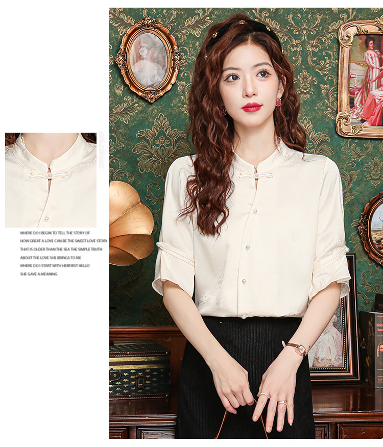 새로운 중식 스탠드 칼라 반팔 여성 셔츠 여름 국풍 레트로 자카드 말 얼굴 치마 맨위 출퇴근 면접 품격 셔츠