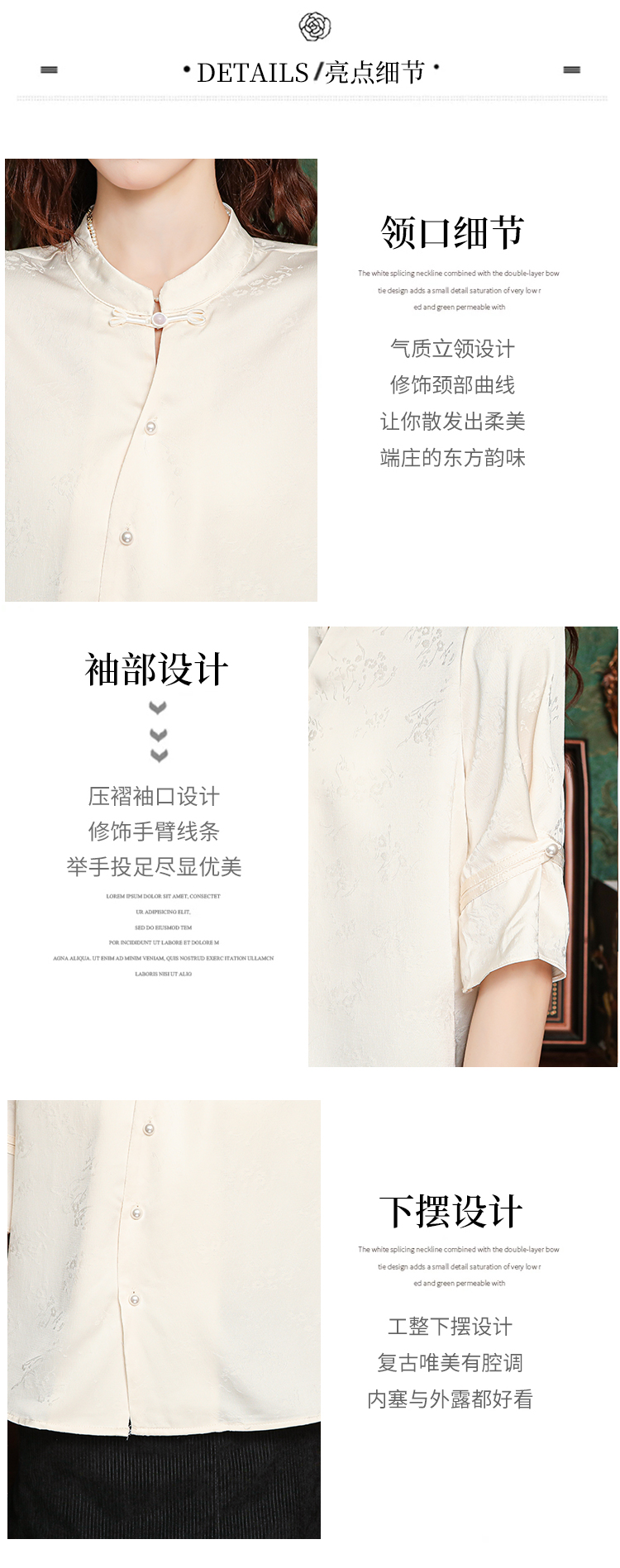 새로운 중식 실크 셔츠 여성 의류 7부 소매 봄 가을 여름 새로운 단추 작은 셔츠 국풍 자카드 당나라 맨위