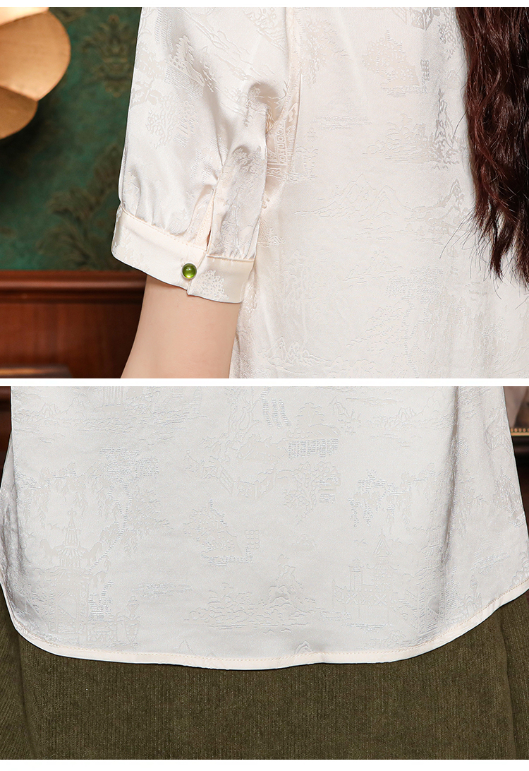 새로운 중식 실크 셔츠 여성 의류 7부 소매 봄 가을 여름 새로운 단추 작은 셔츠 국풍 자카드 당나라 맨위