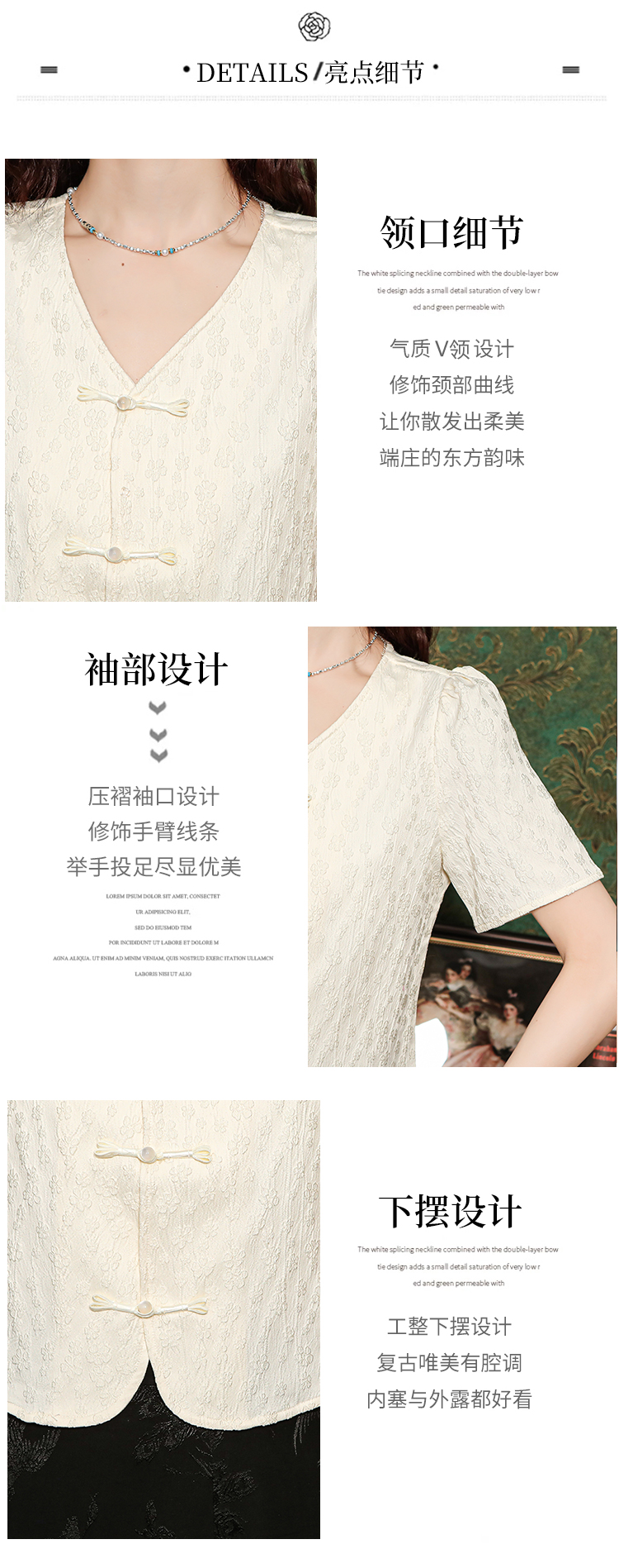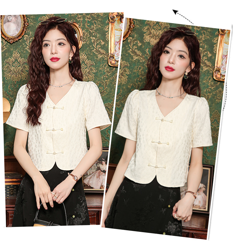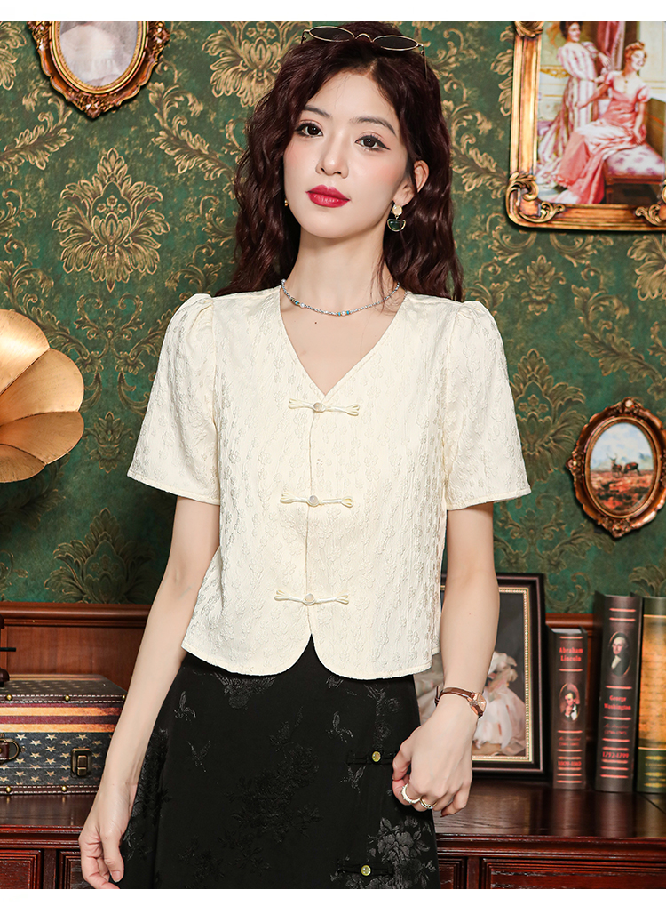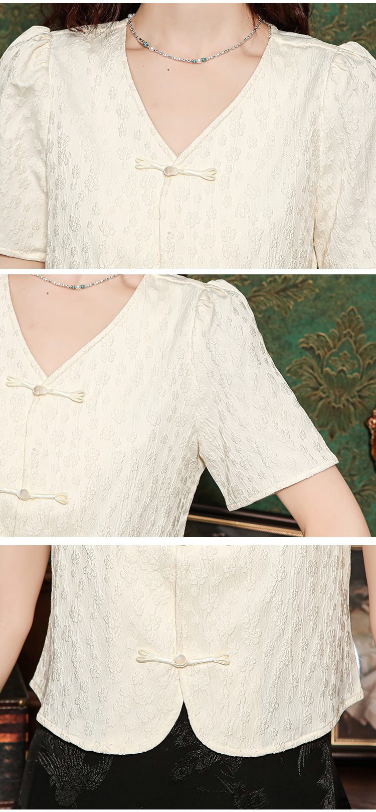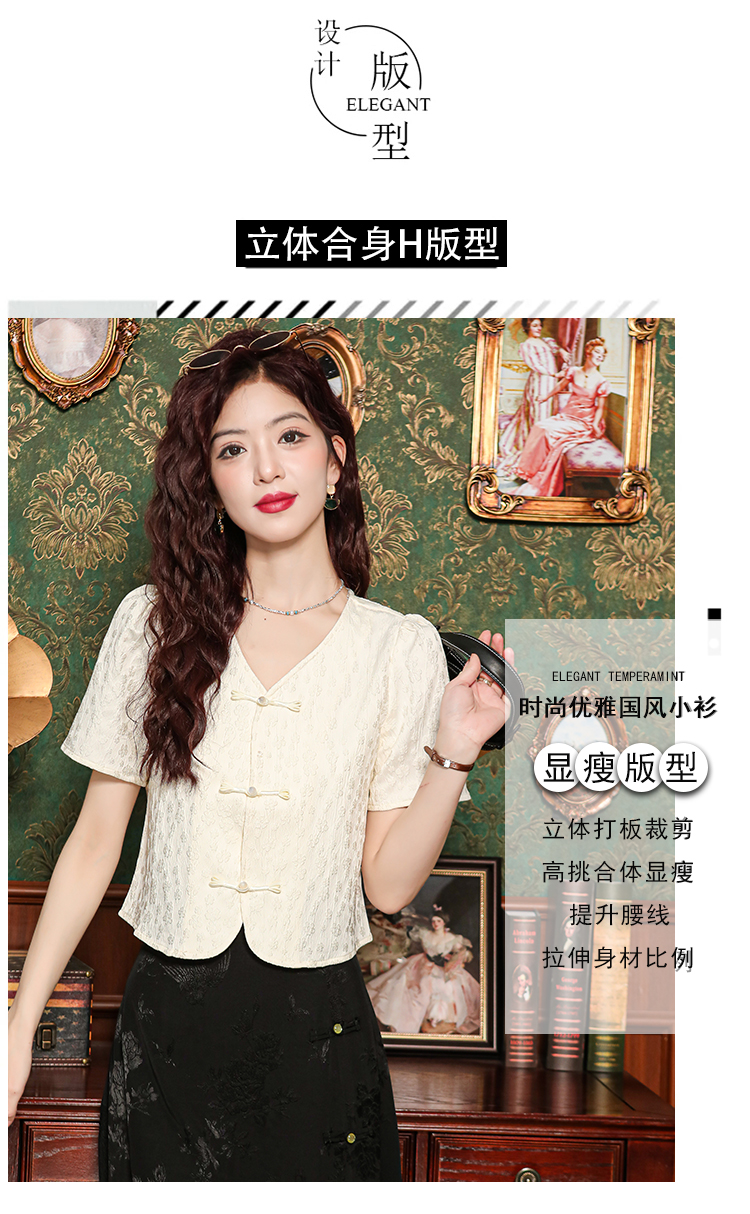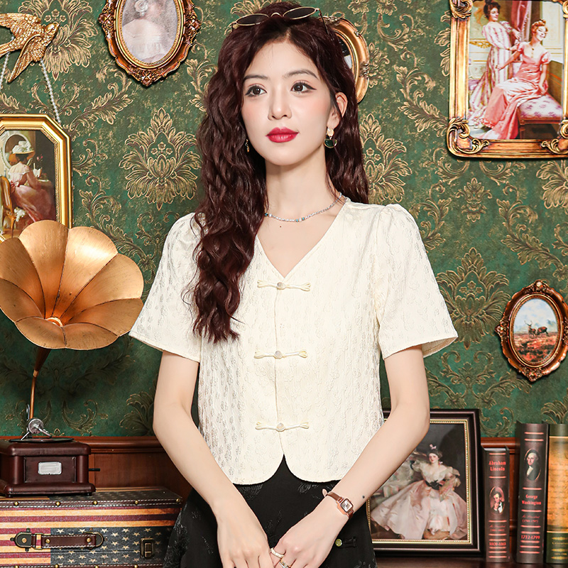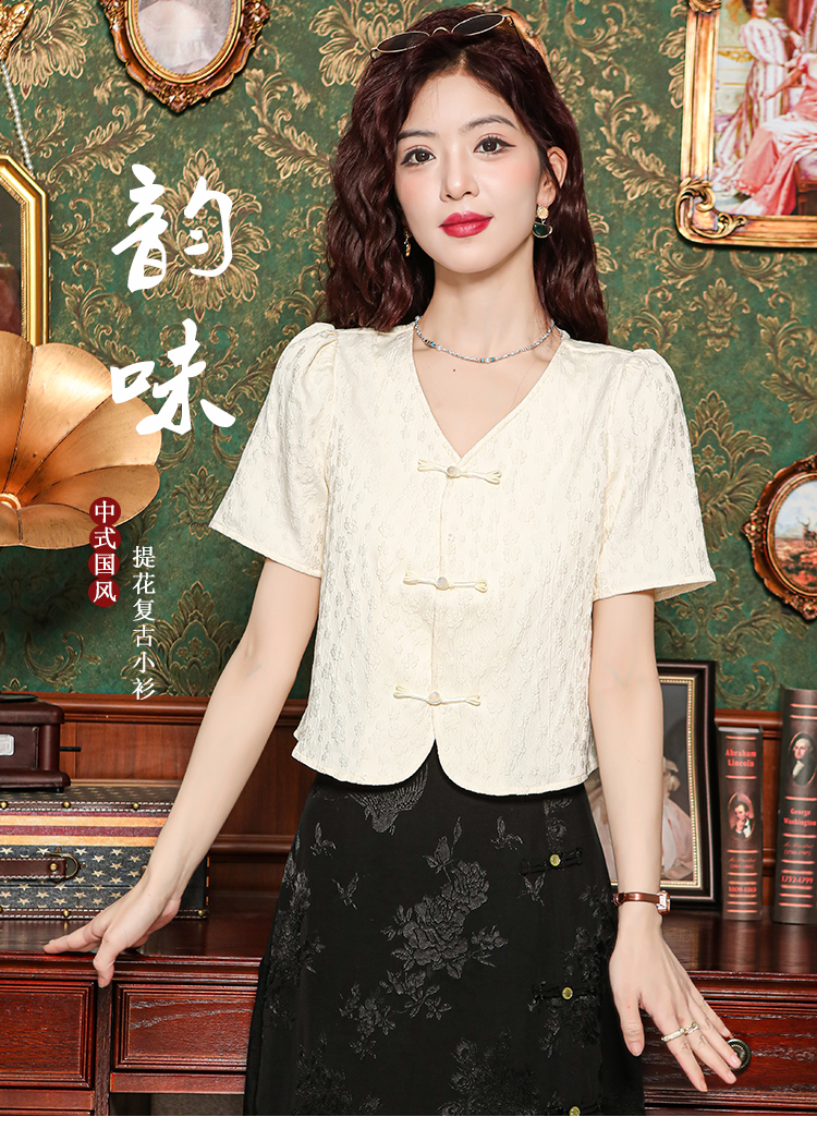 고급 센스 국풍 반팔 자카드 쉬폰 셔츠 여성 새로운 중식 레트로 단추 맨위 여름 2026 새로운