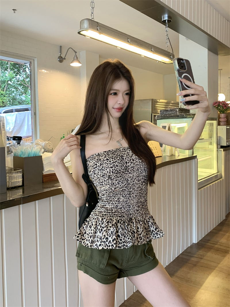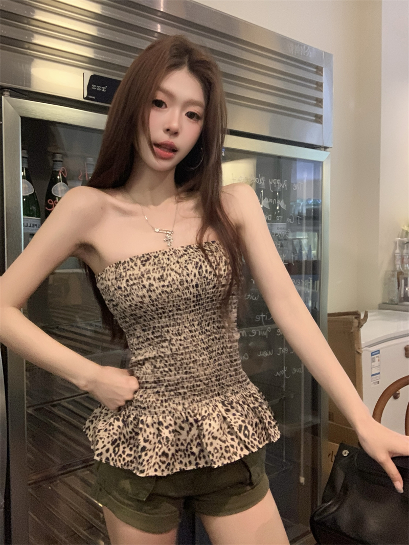 실사 정가 새로운 레트로 레오파드 무늬 핫걸 튜브탑 몸매 가꾸기 슬림해 보이는 다용도 오프숄더 맨위