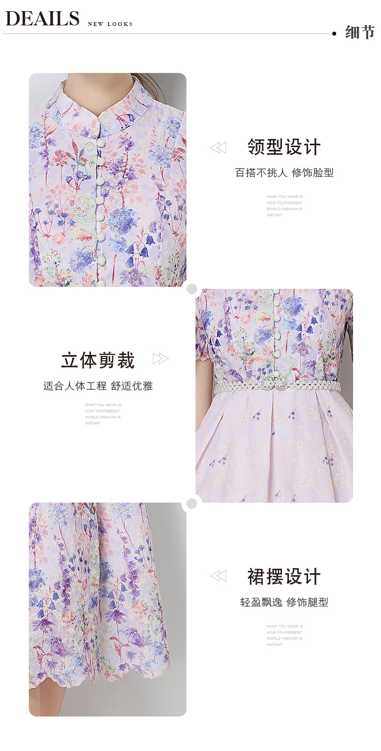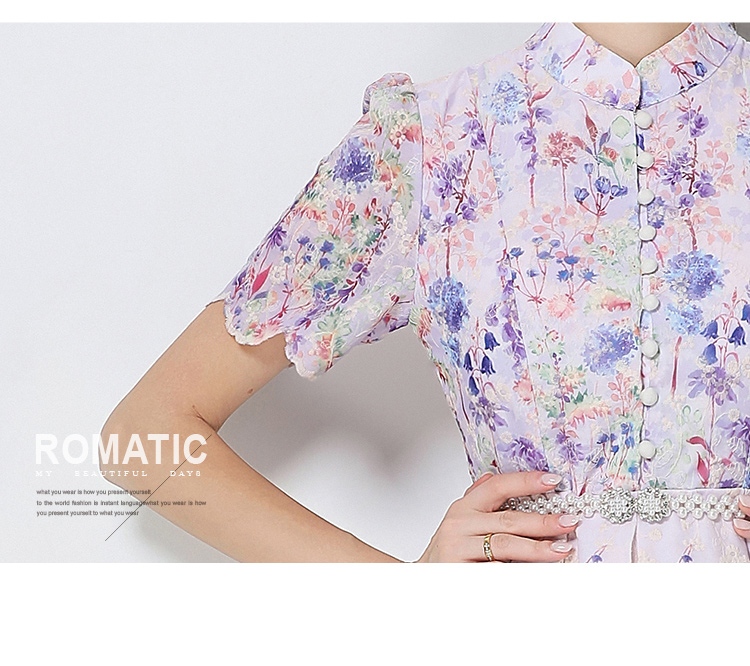 실사 오리지널 반팔 패션 슬림해 보이는 자수 프린트 포지셔닝 롱 코트 드레스