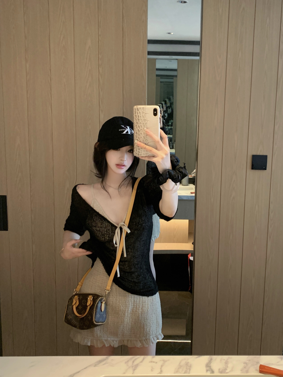 실사 정가 스트랩 반팔 오픈 가디건 레이스 레이스 화이트 슬립 3 차원 자르기 슬림해 보이는 다용도 반신 스커트