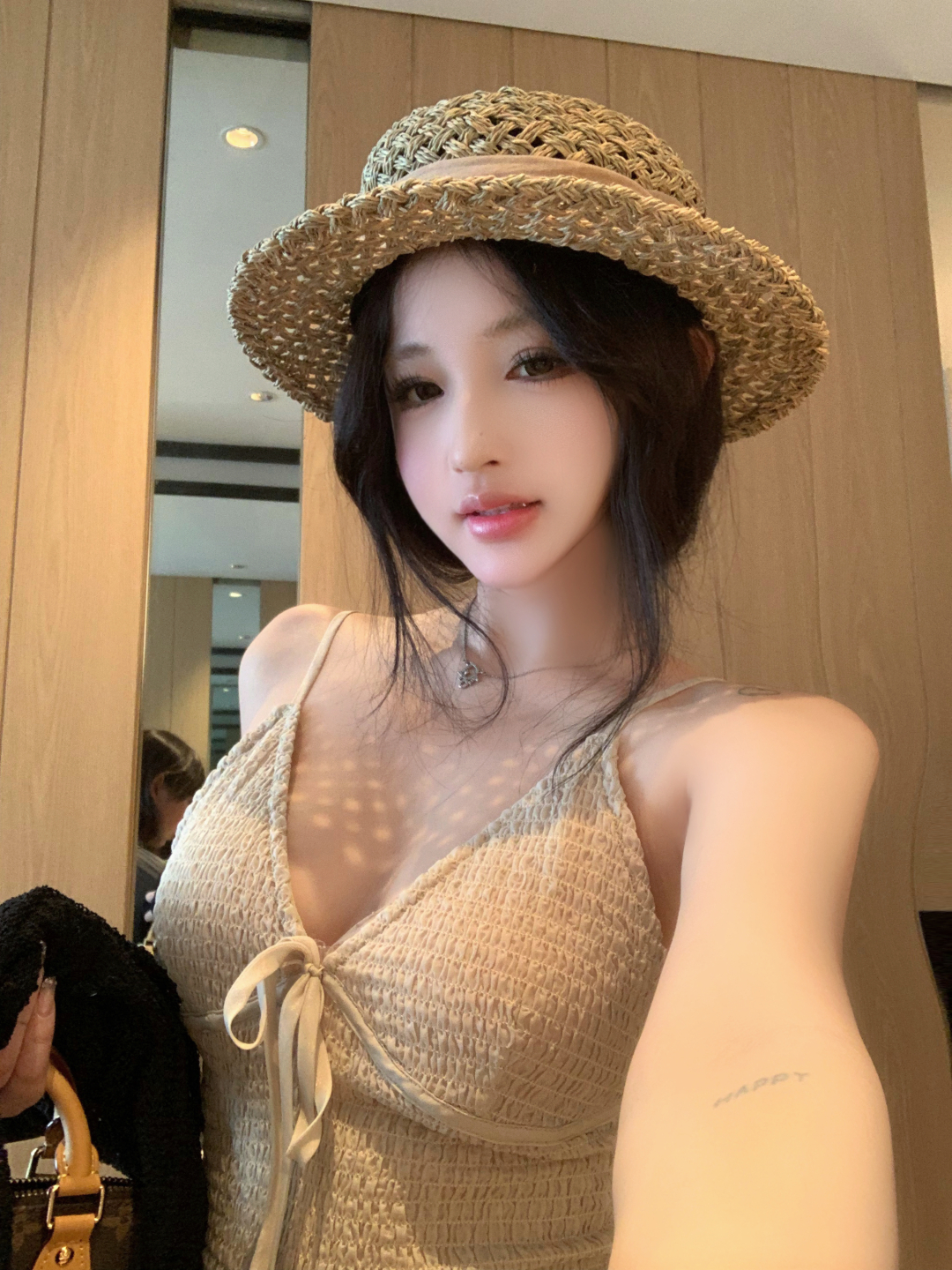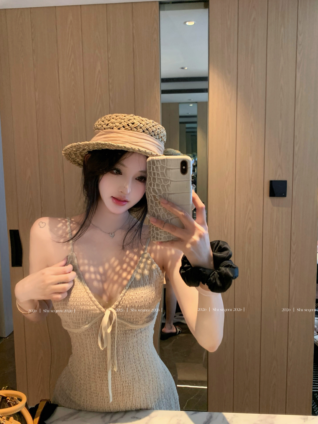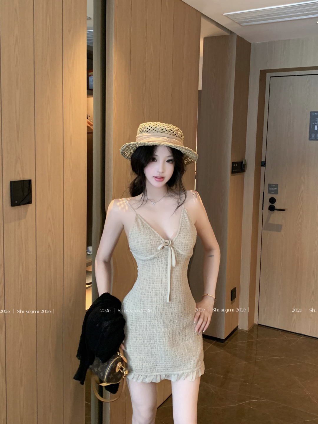 아메리칸 레트로 여름 센스 민소매 V넥 슬립 여성 드레스 2026 여름 새로운 행침 목 허리 수축 섹션 미니 스커트