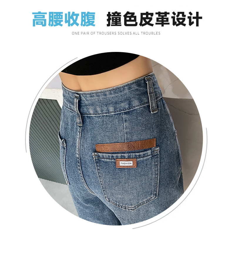 실사 하이웨이스트 하늘색 패치워크 넓은 다리 청바지 여성 여름 새로운 작은 키 워크웨어 바람 바지 슬림해 보이는 바지