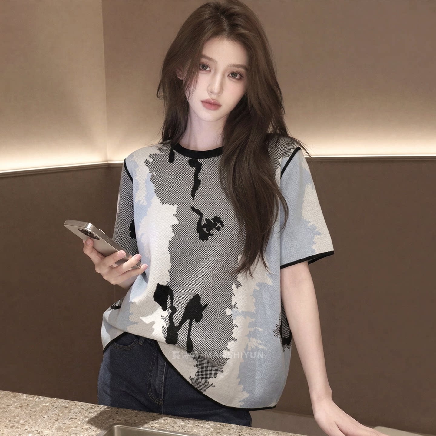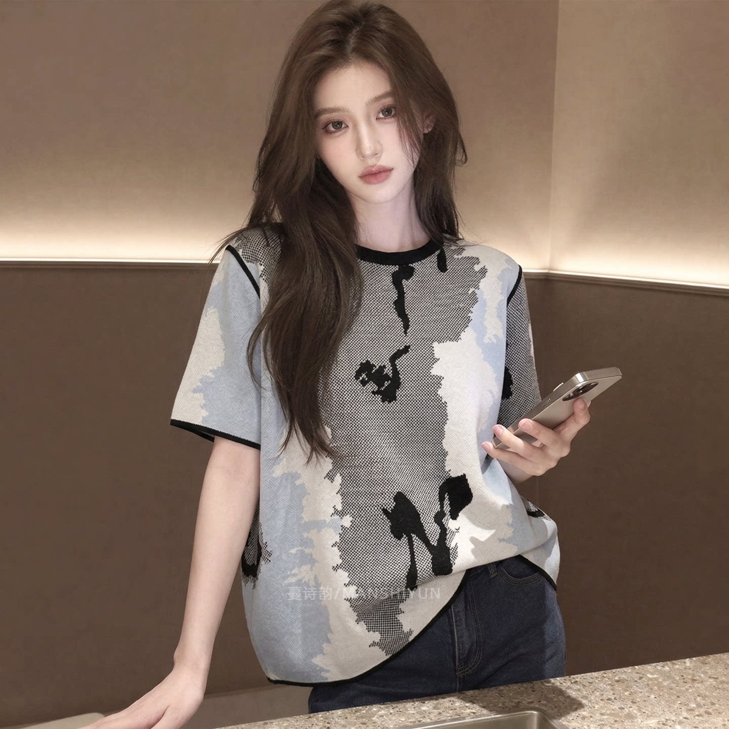 2026 여름 새로운 패션 여성 고급 디자인 센스 캐주얼 바람 긴팔 반팔 티셔츠 루즈핏 출퇴근 맨위