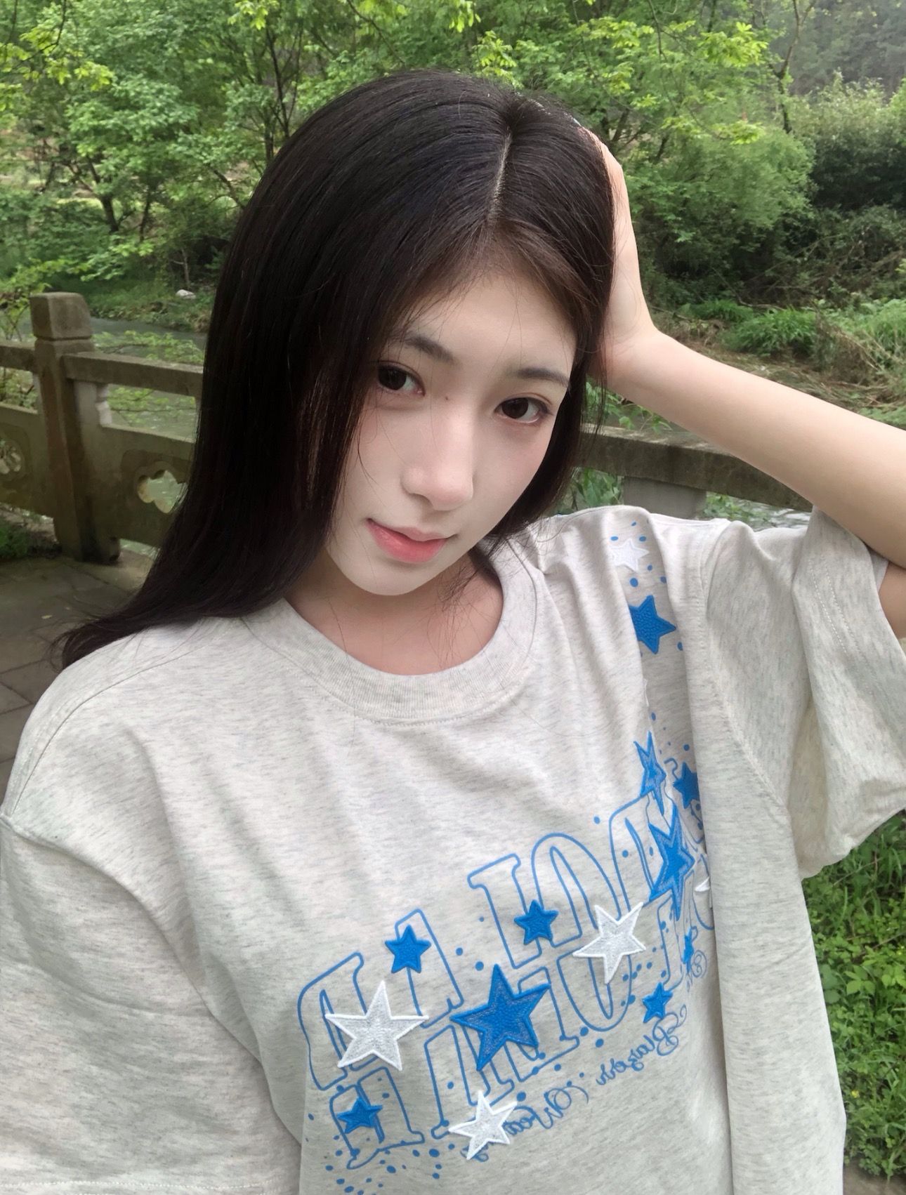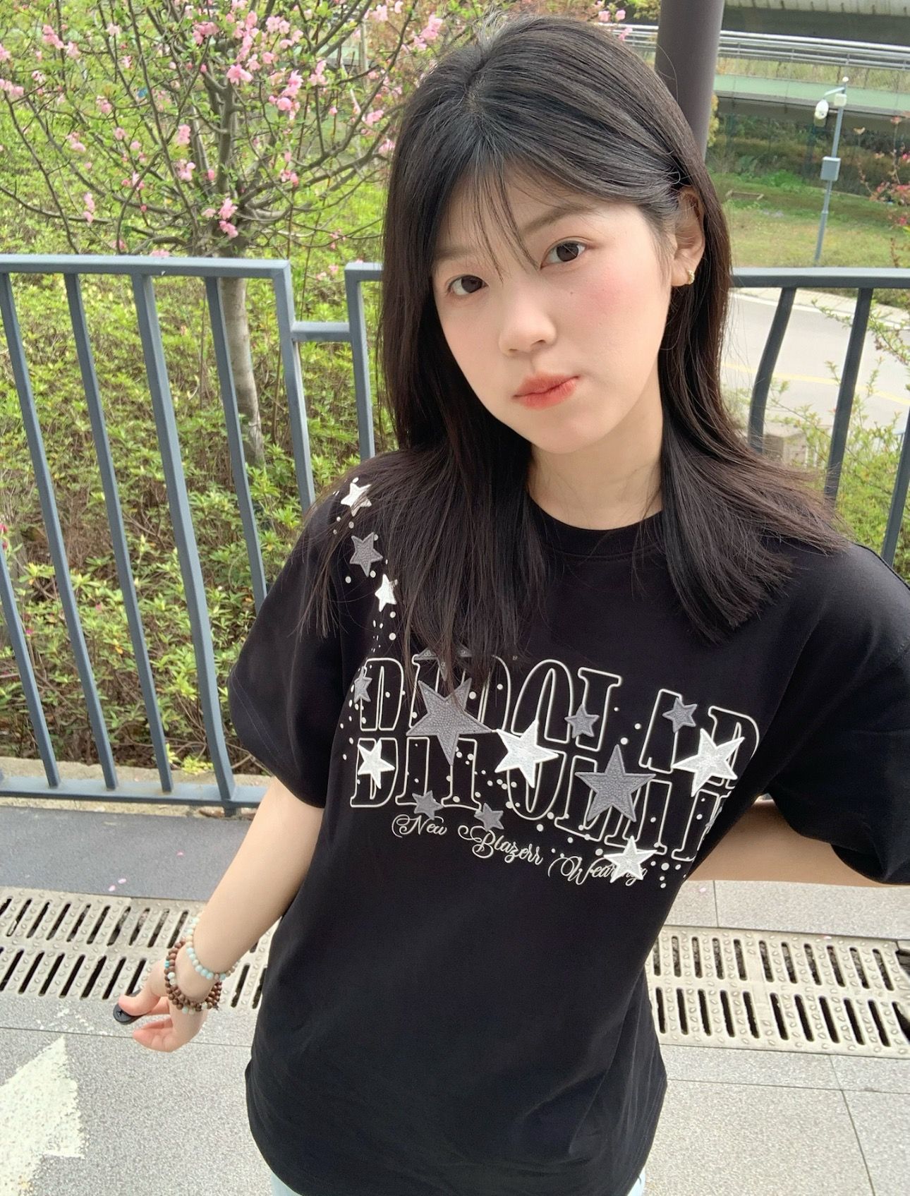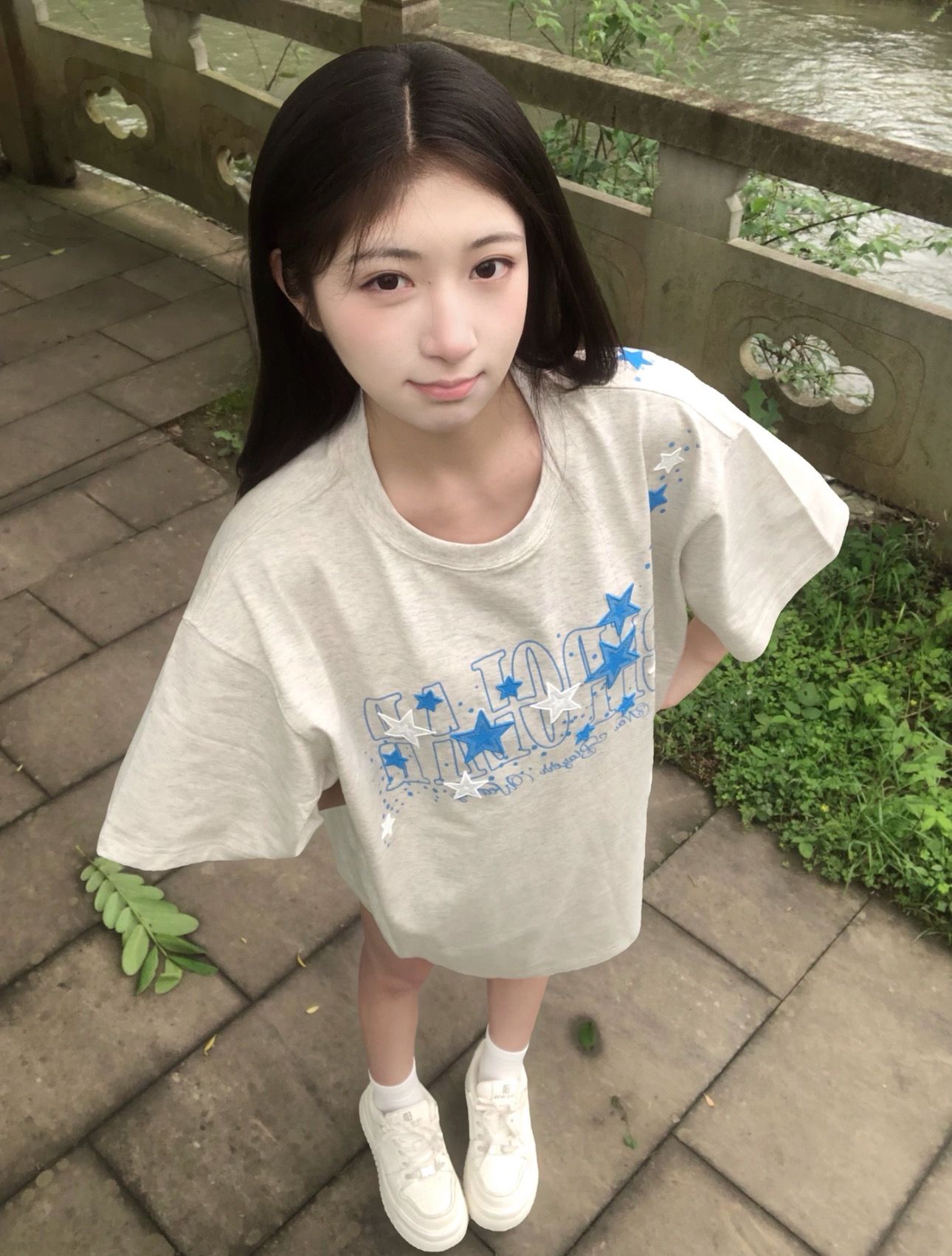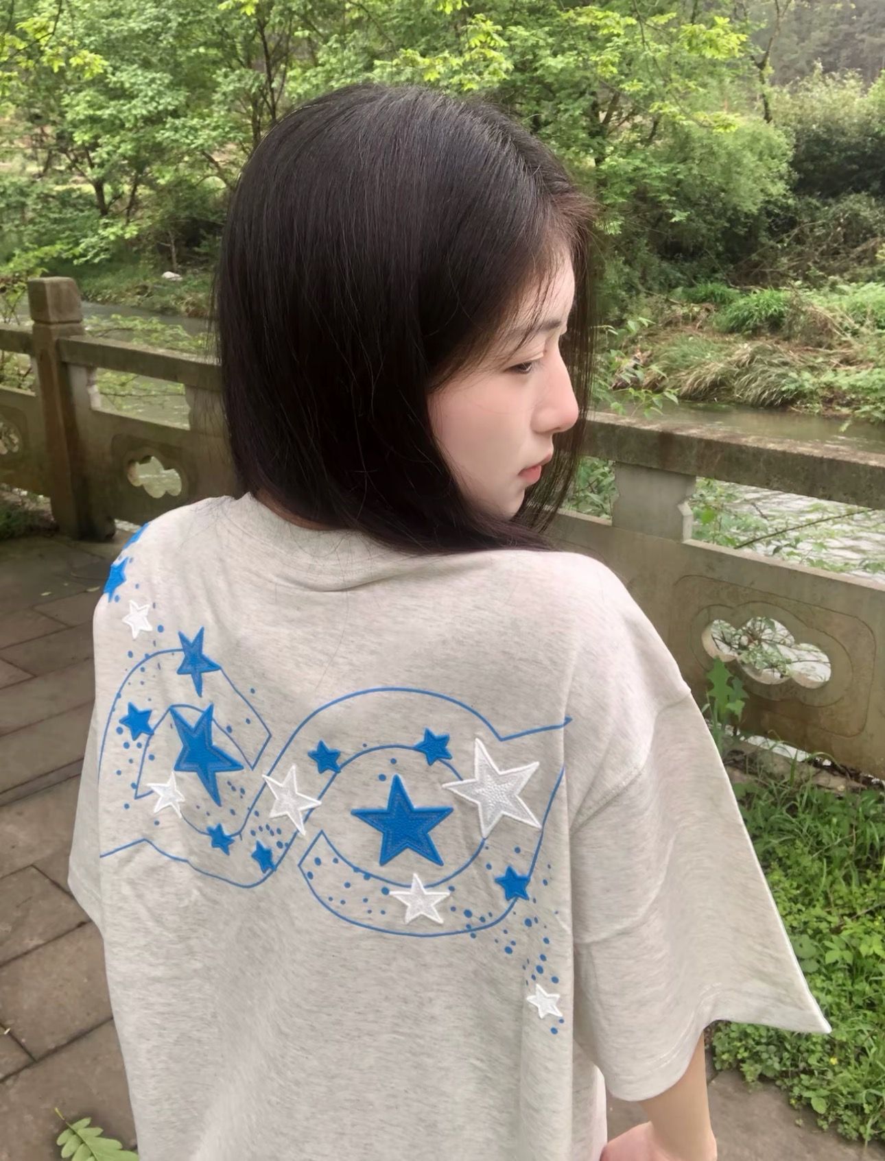210 그램 40 순면 y2k 빛 아시아 인 바람 전체 인쇄 별 반팔 기본 셔츠 맨위 여름 새로운 반팔 여성