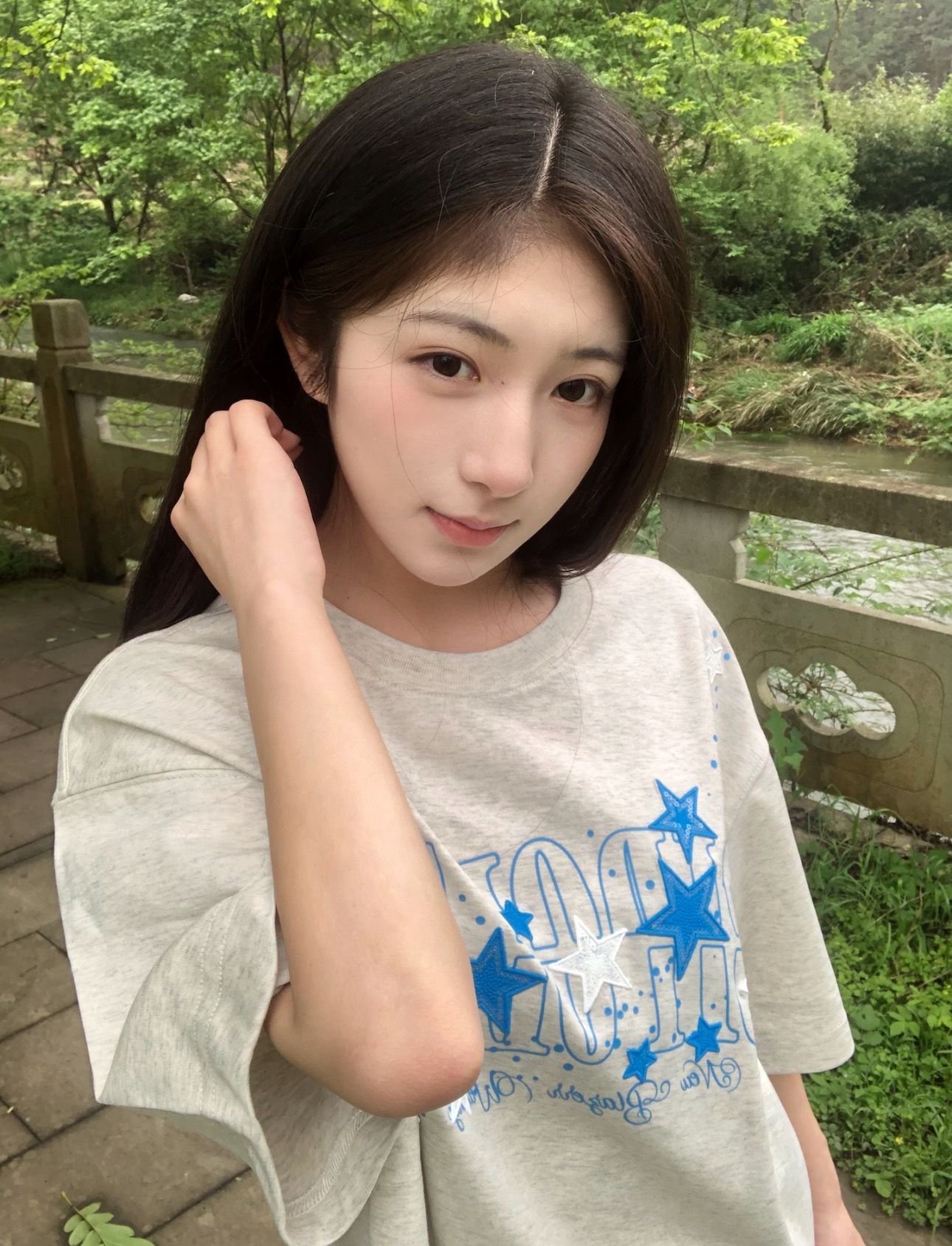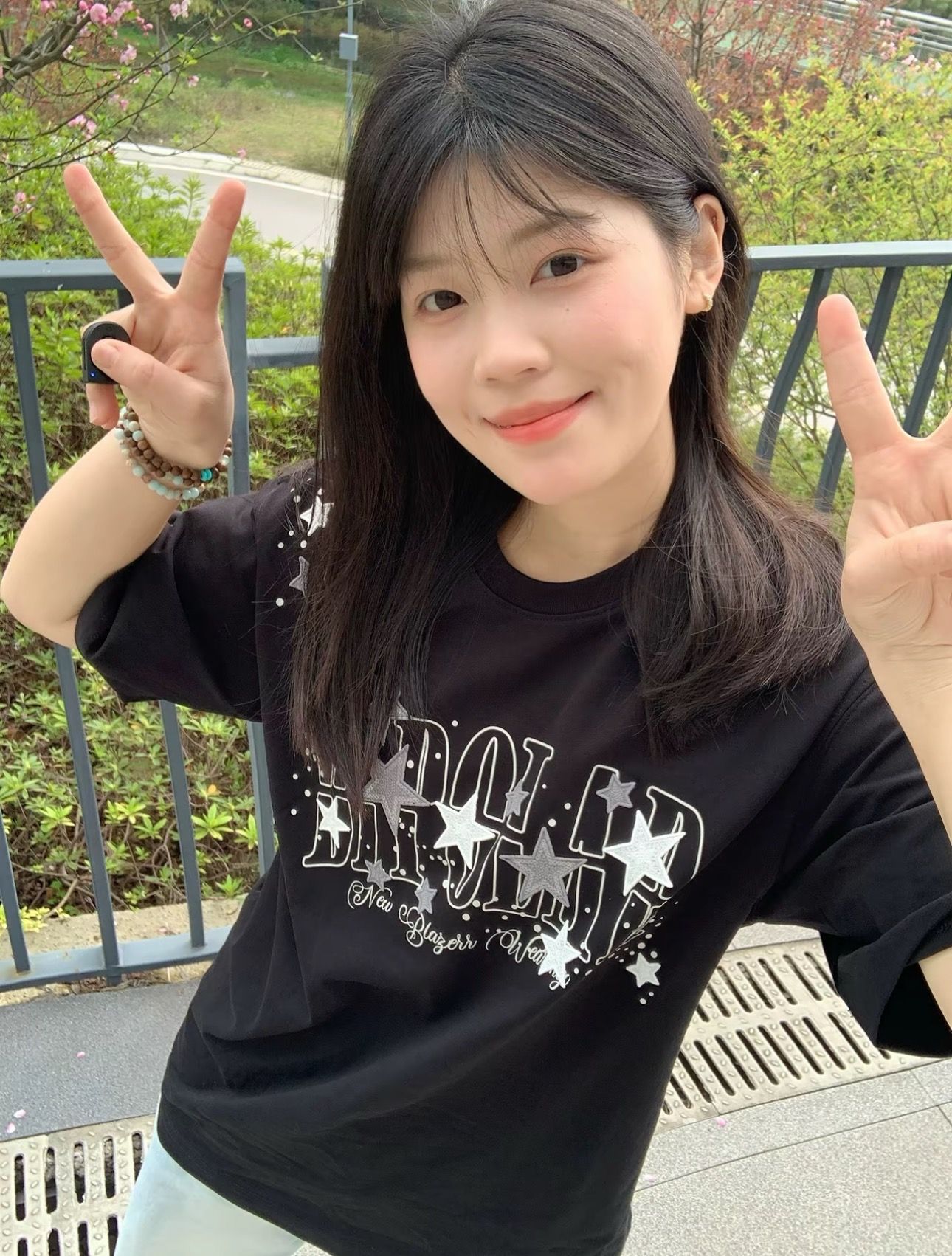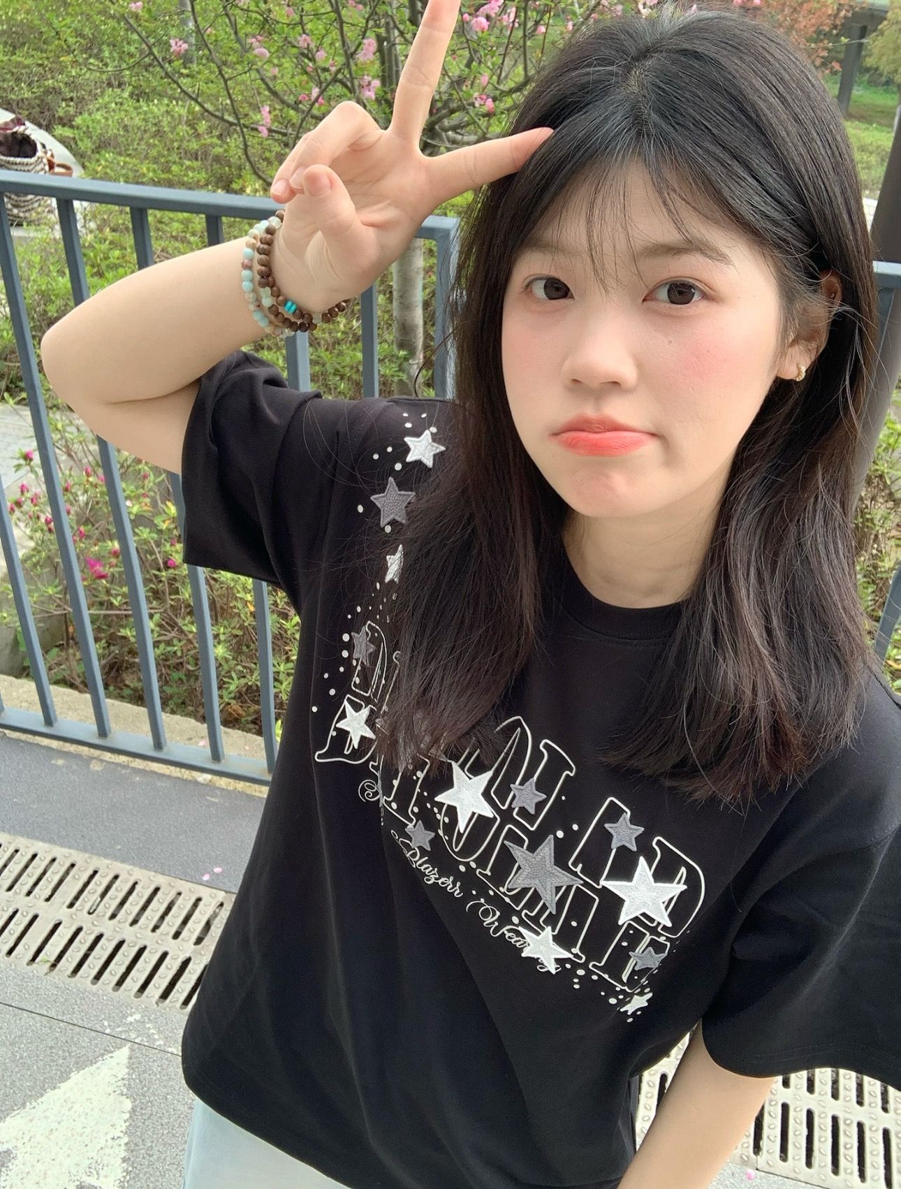 210 그램 40 순면 y2k 빛 아시아 인 바람 전체 인쇄 별 반팔 기본 셔츠 맨위 여름 새로운 반팔 여성