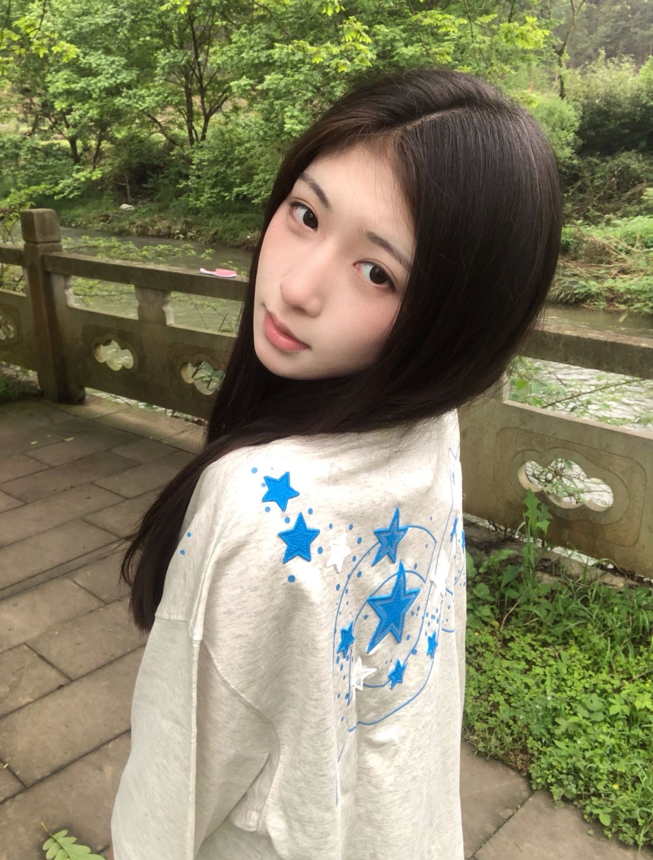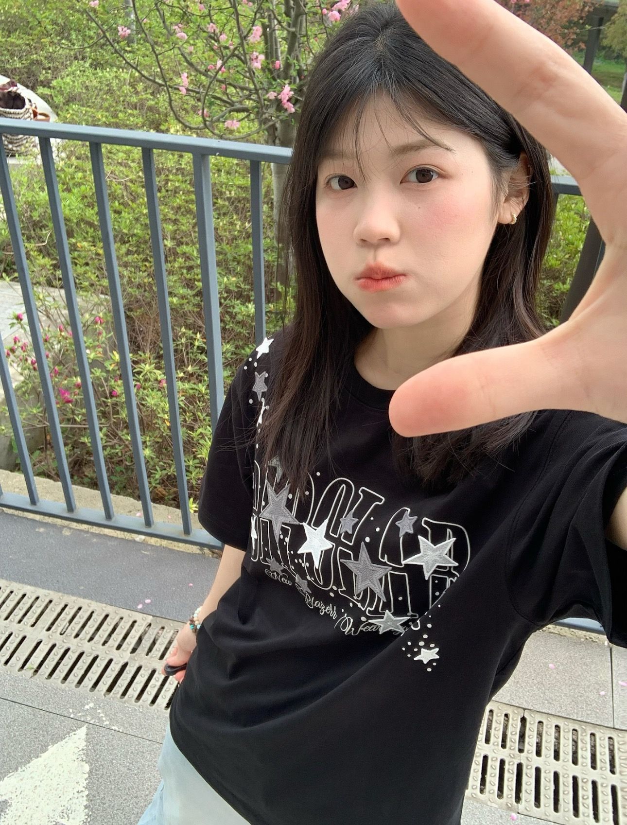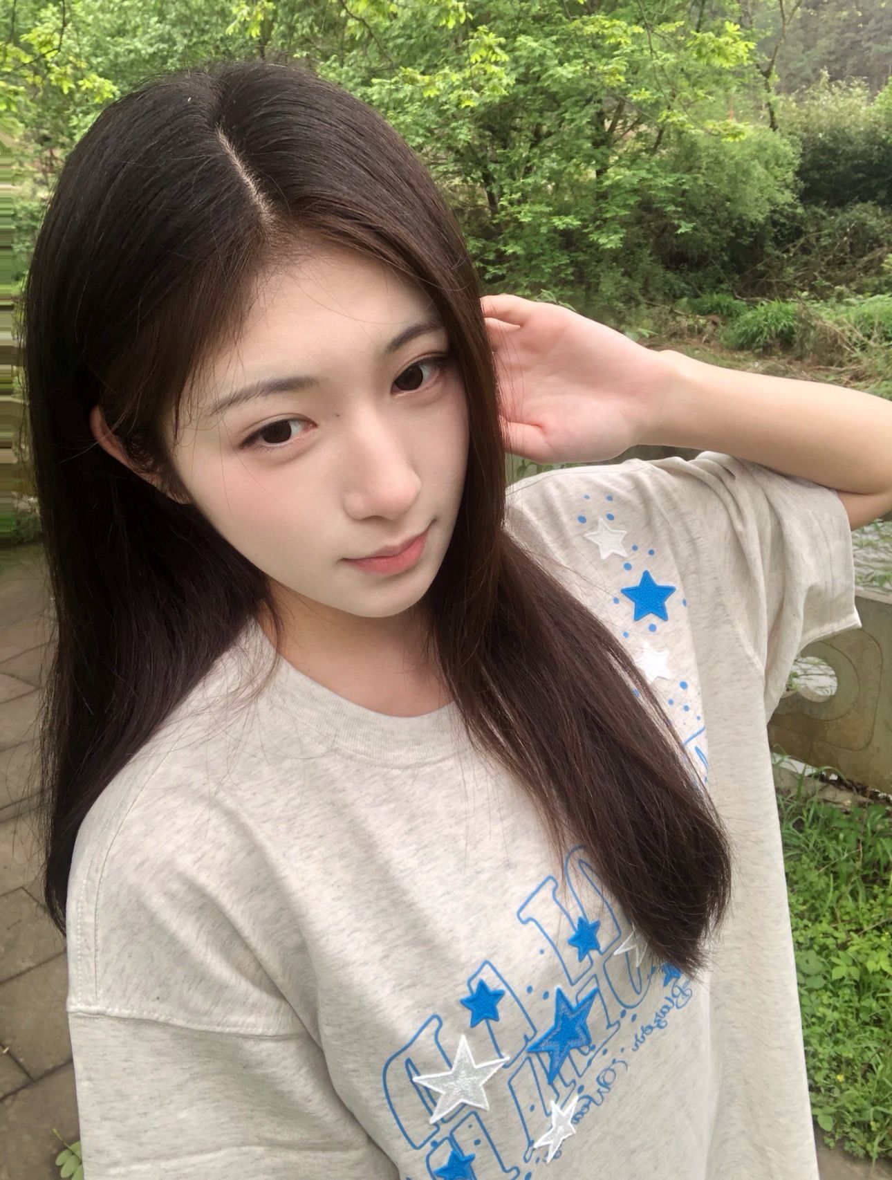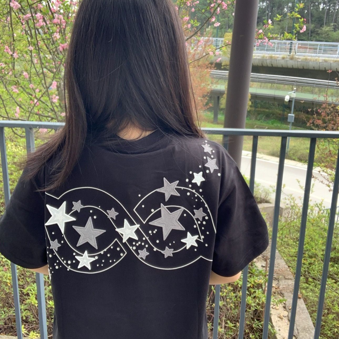 210 그램 40 순면 y2k 빛 아시아 인 바람 전체 인쇄 별 반팔 기본 셔츠 맨위 여름 새로운 반팔 여성