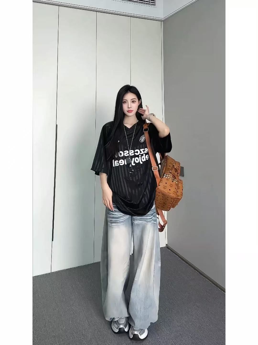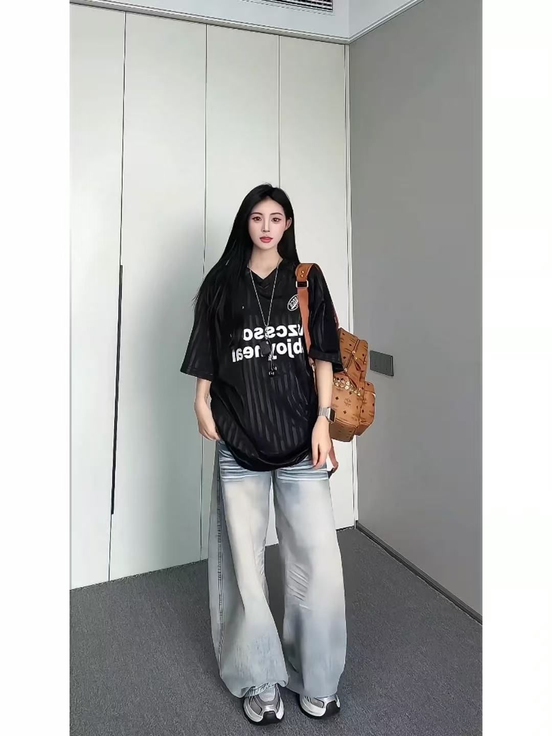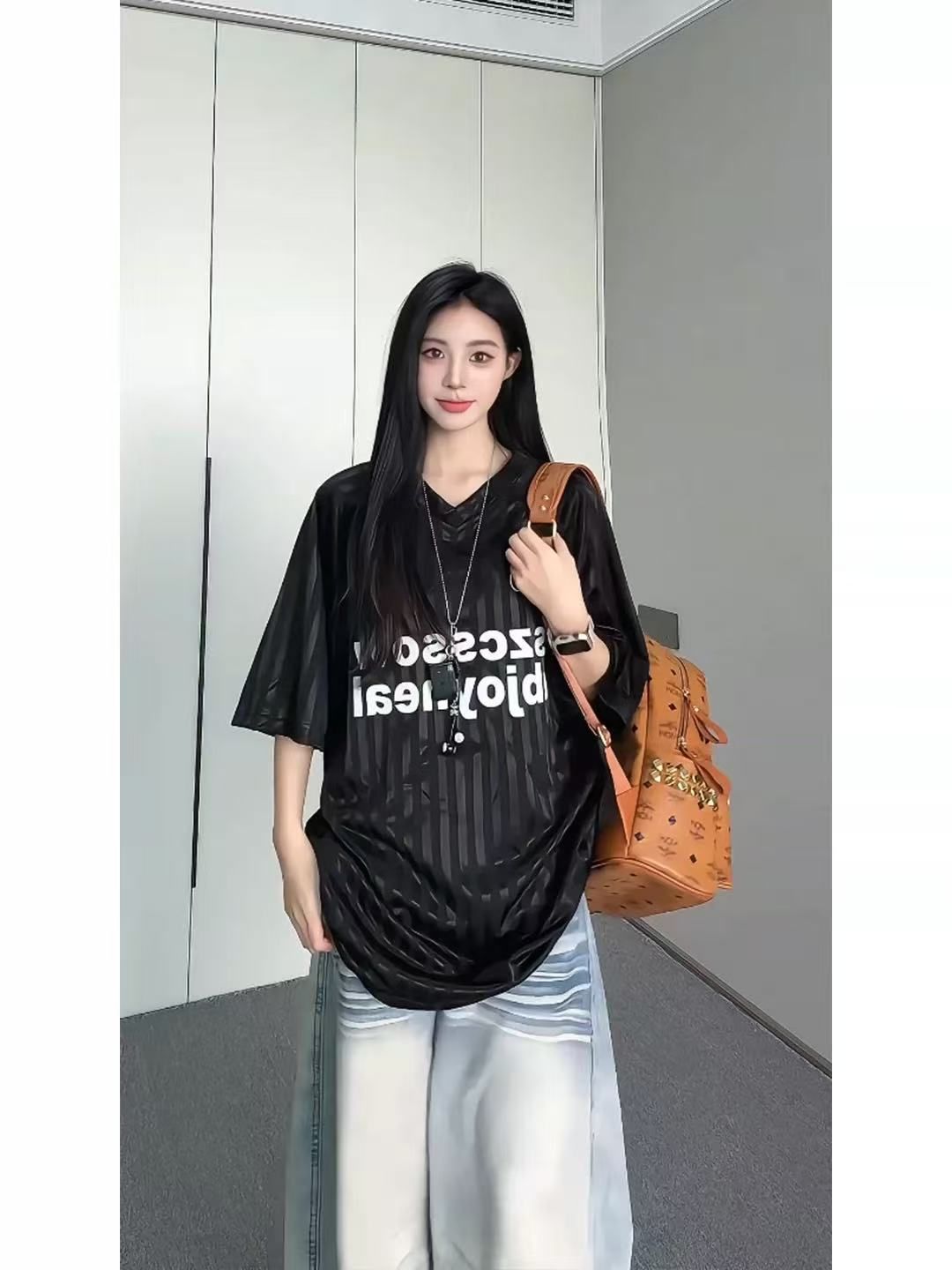 원본 원단 여름 휴가 바람 캐주얼 루즈핏 반팔 티셔츠 여성 여름 다용도 맨위