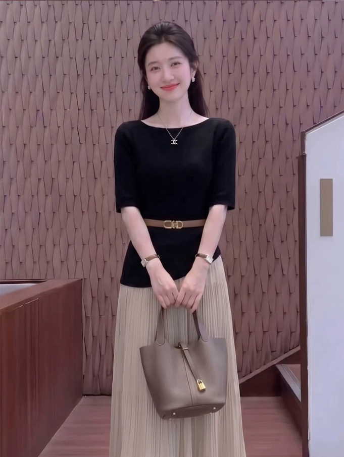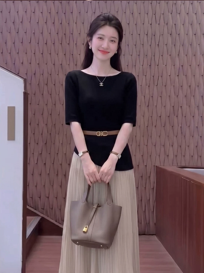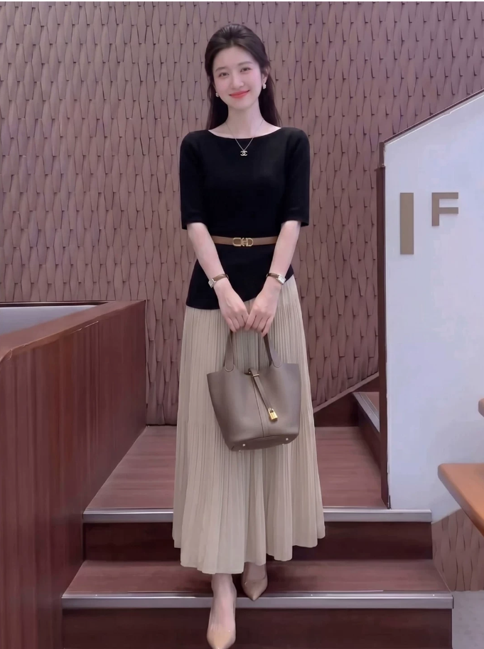 2026 슈퍼 화재 착용 가져 가라. 전체 집합 빛 요리 한 로얄 자매 품격 느긋한 바람 검정색 맨위 반신 스커트 투피스 세트 여름