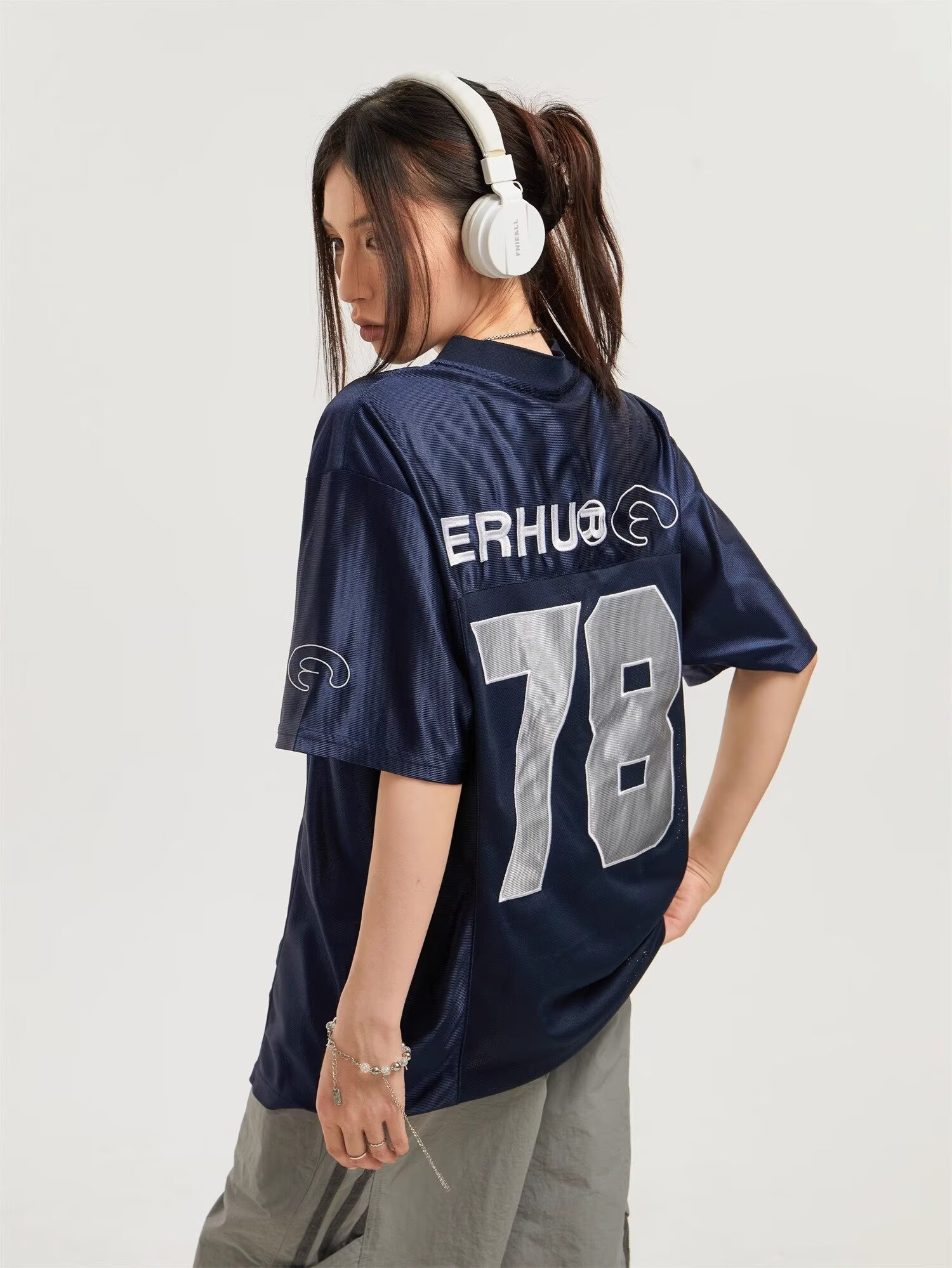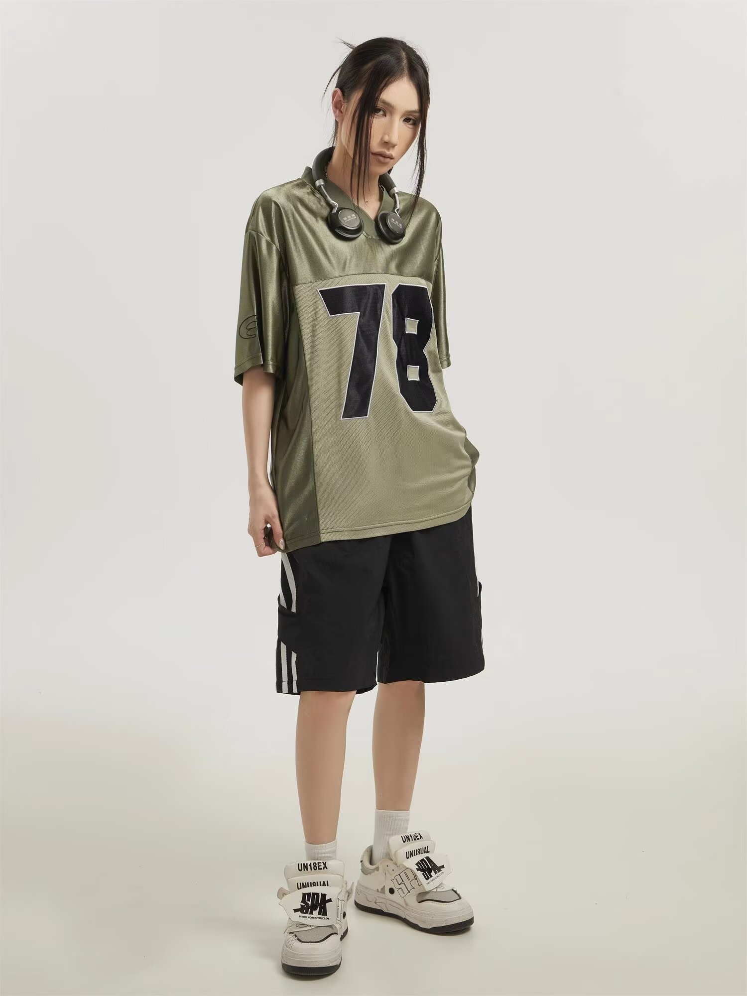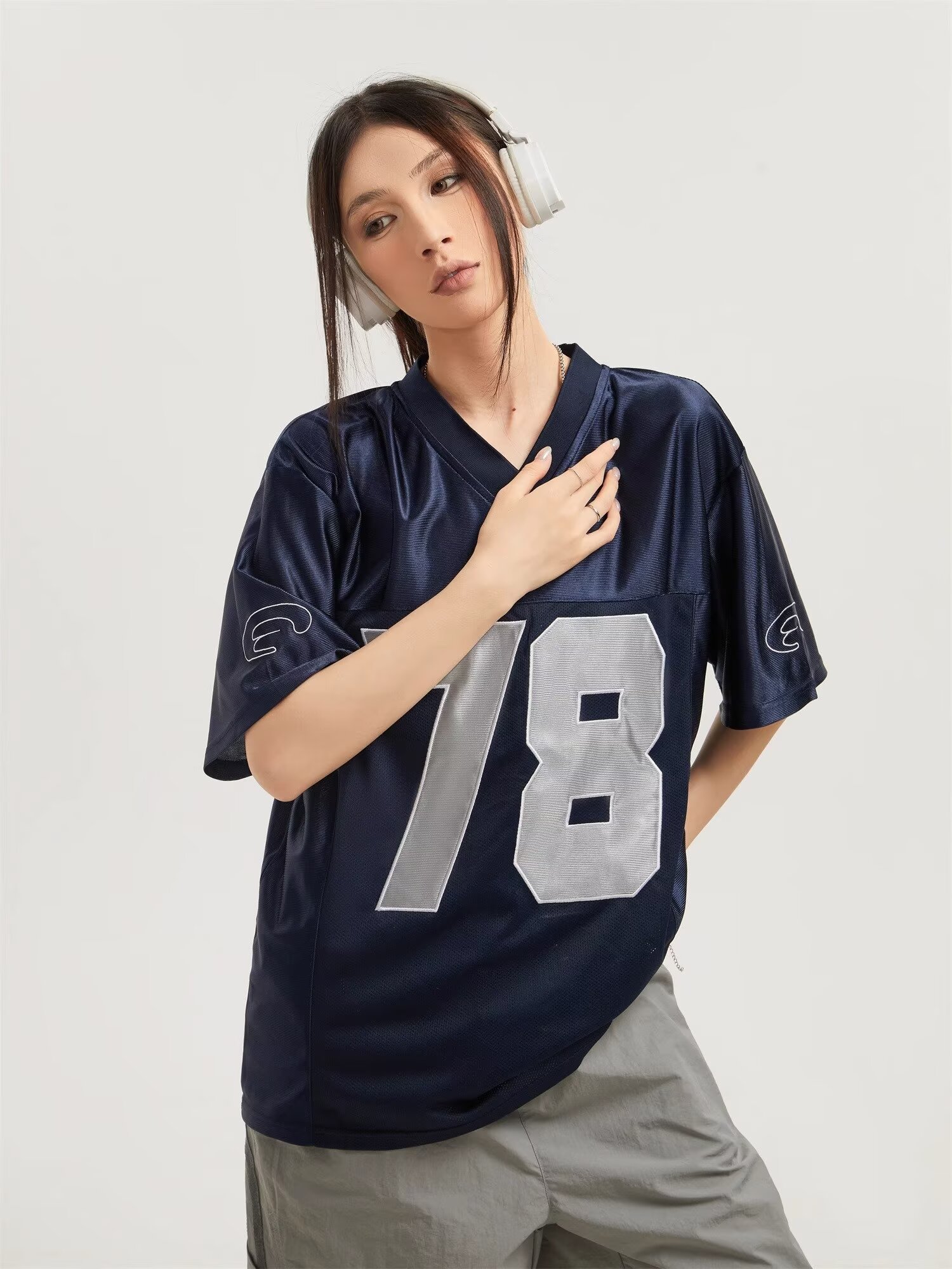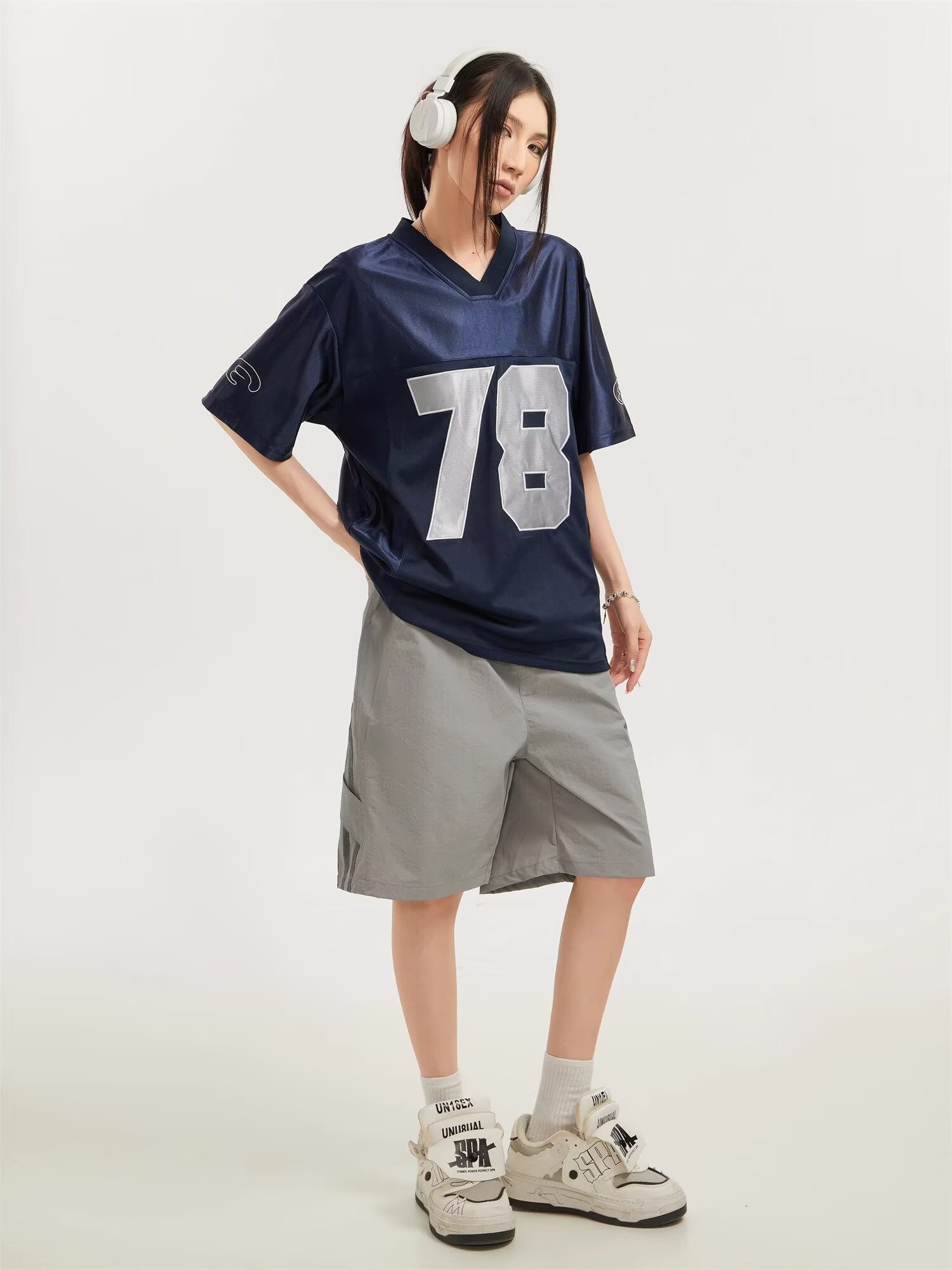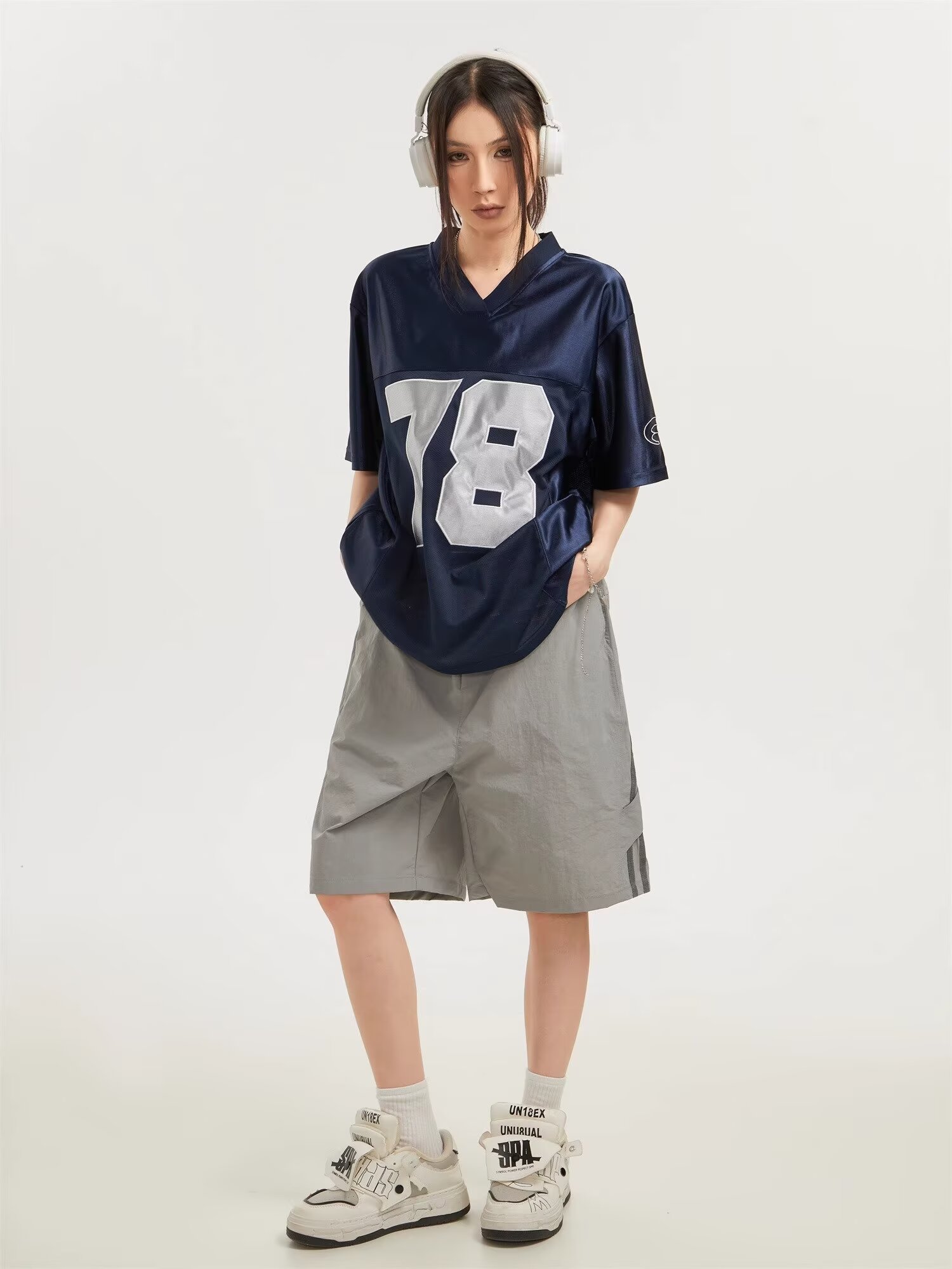 원본 자카드 원단 원본 솜씨 아메리칸 스트라이프 알파벳 프린트 저지 V넥 티셔츠 맨위 남녀 커플 여름