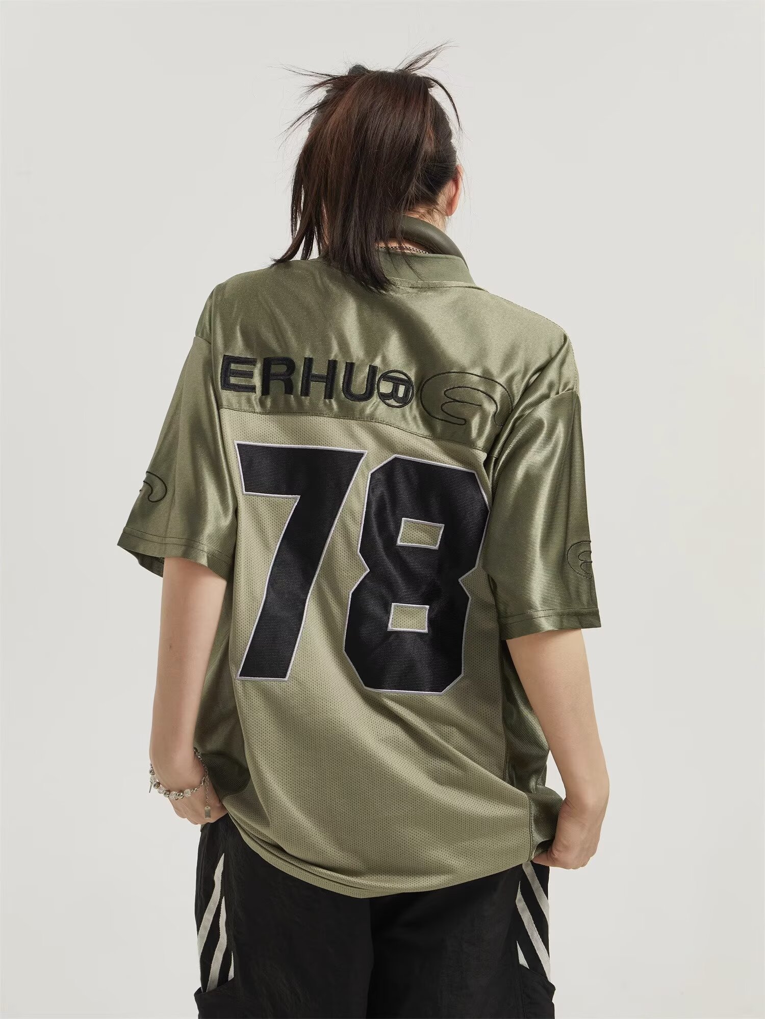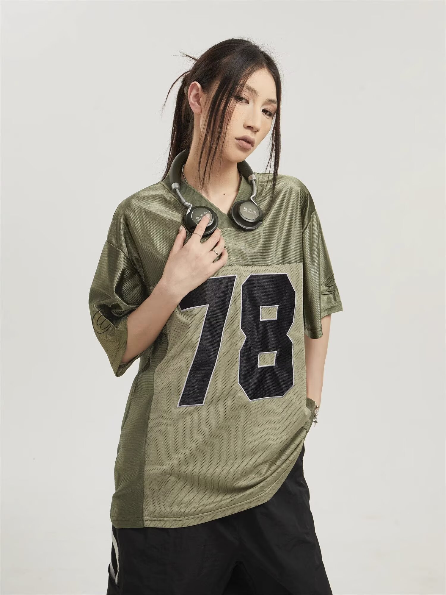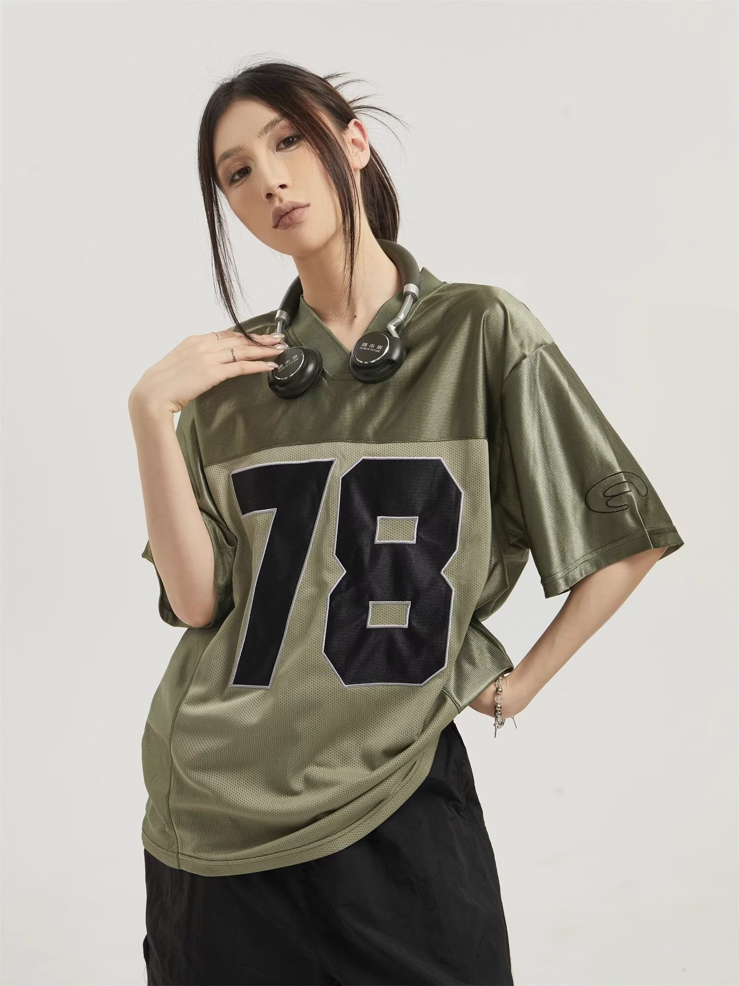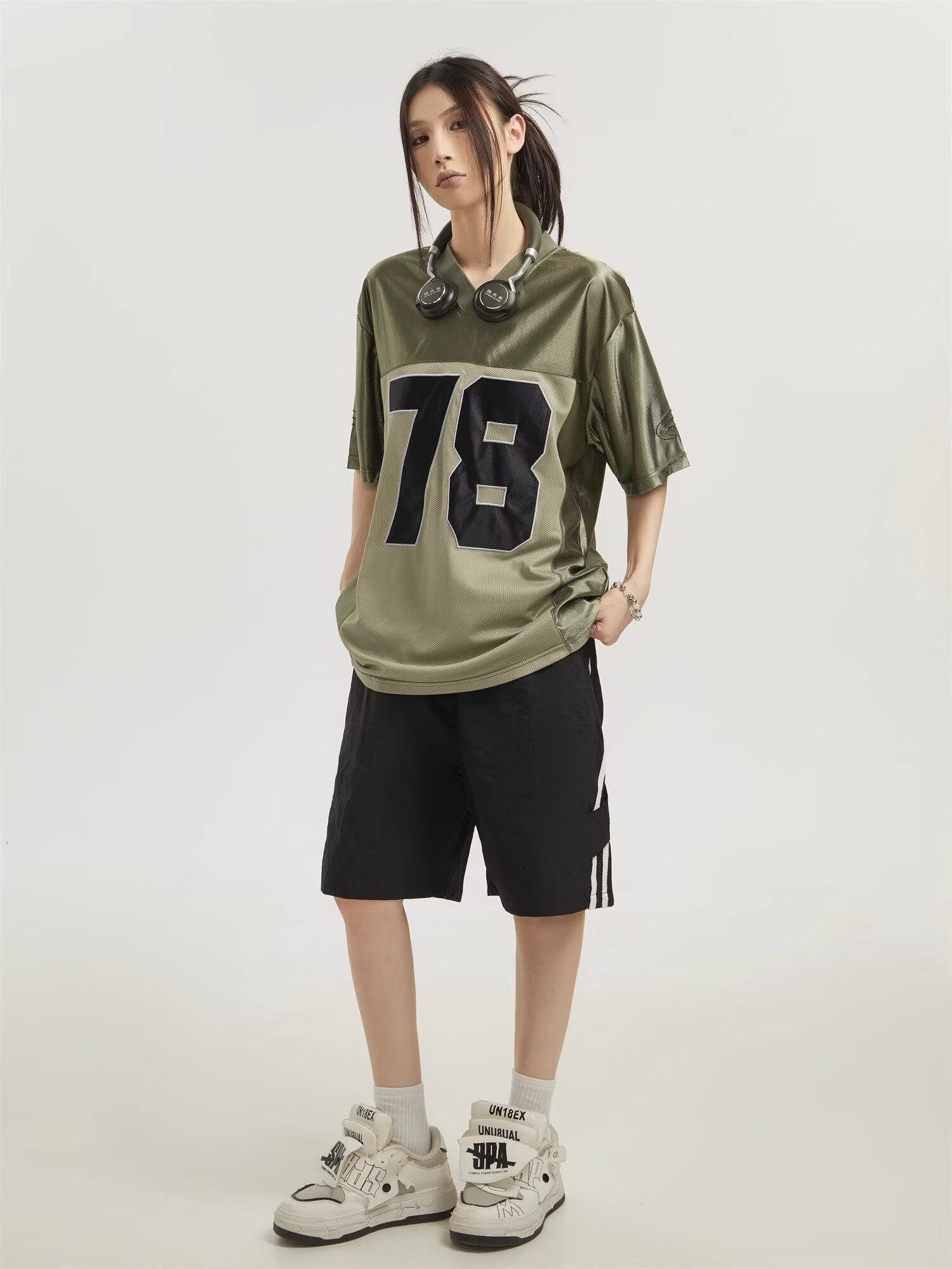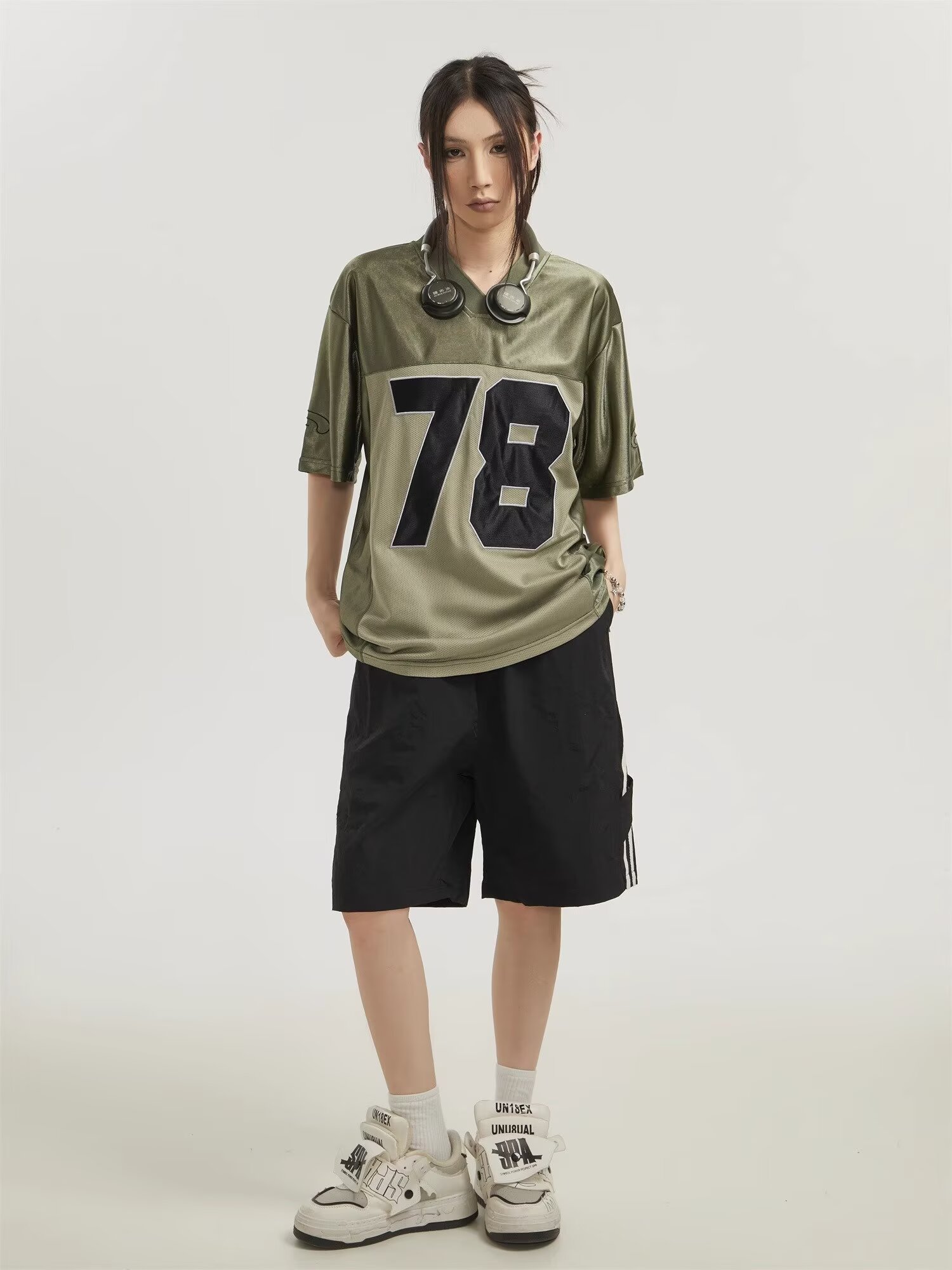원본 자카드 원단 원본 솜씨 아메리칸 스트라이프 알파벳 프린트 저지 V넥 티셔츠 맨위 남녀 커플 여름