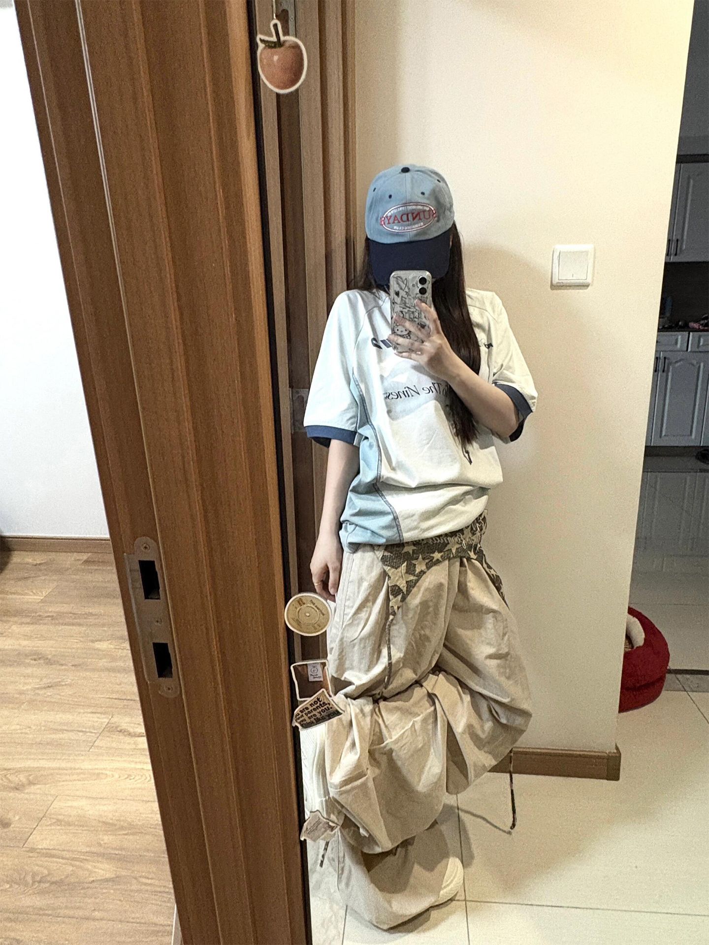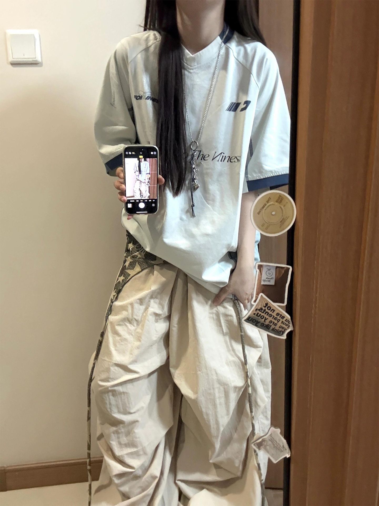 210 그램 40 순면 y2k 빛 아시아 인 바람 전체 인쇄 별 반팔 기본 셔츠 맨위 여름 새로운 반팔 여성