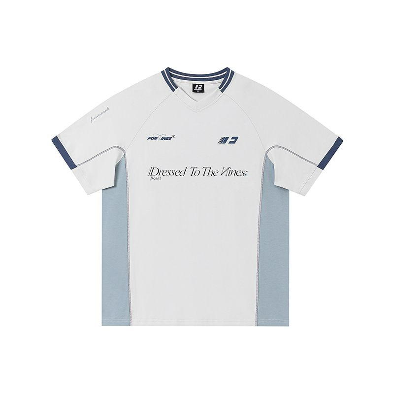 원본 자카드 원단 원본 솜씨 아메리칸 스트라이프 알파벳 프린트 저지 V넥 티셔츠 맨위 남녀 커플 여름