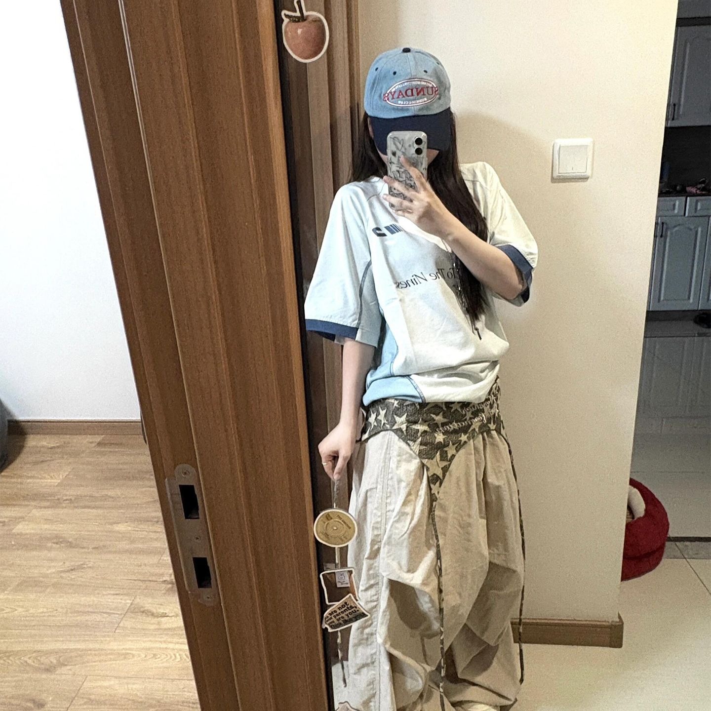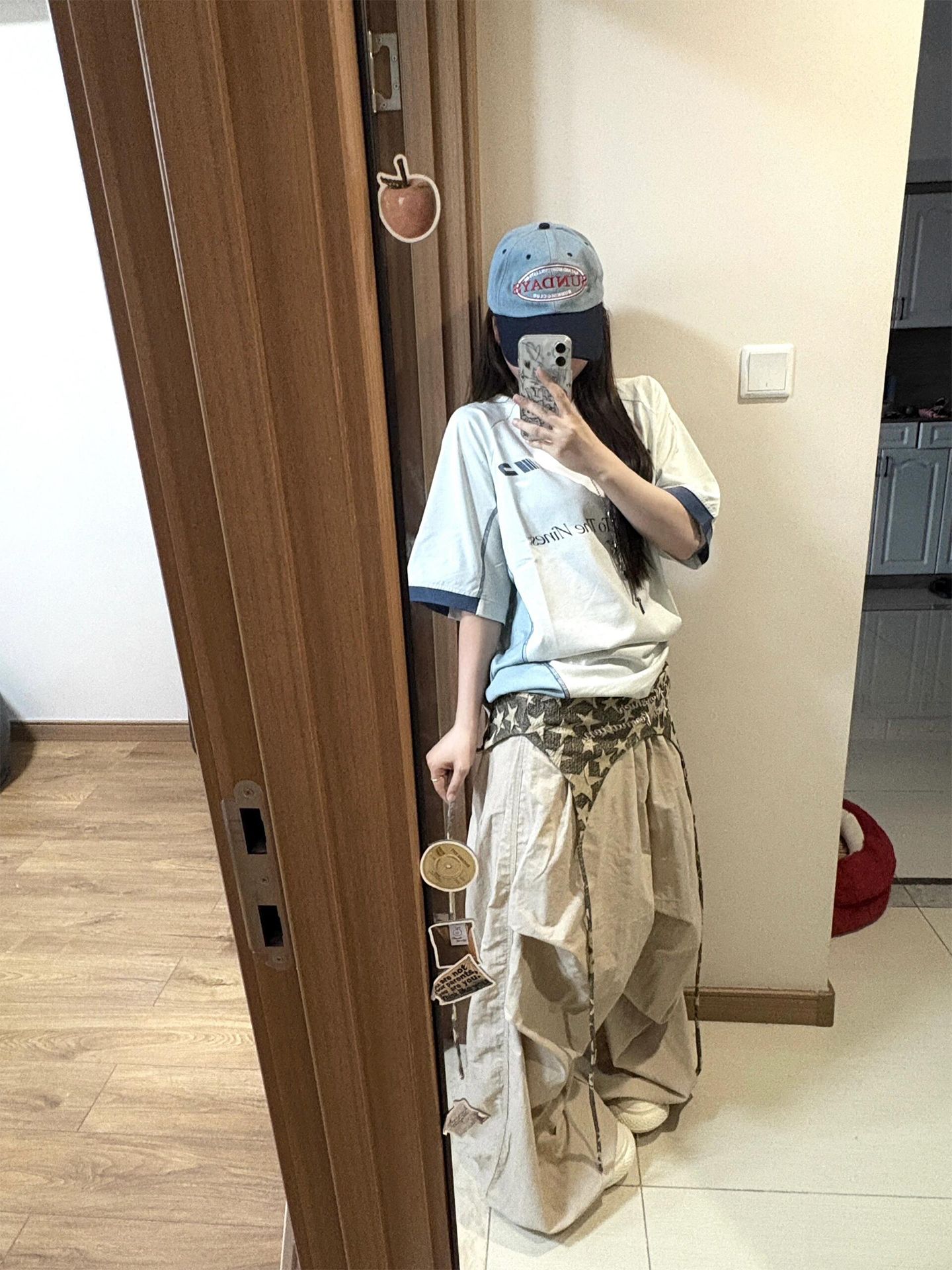 반팔 티셔츠 여성 2026 새로운 한 부서 아메리칸 레트로 도트 무늬 별 패치 펌프 로프 슬림해 보이는 y2k 맨위 여성