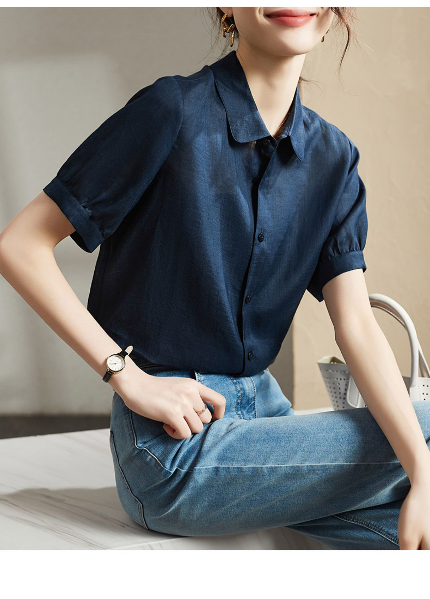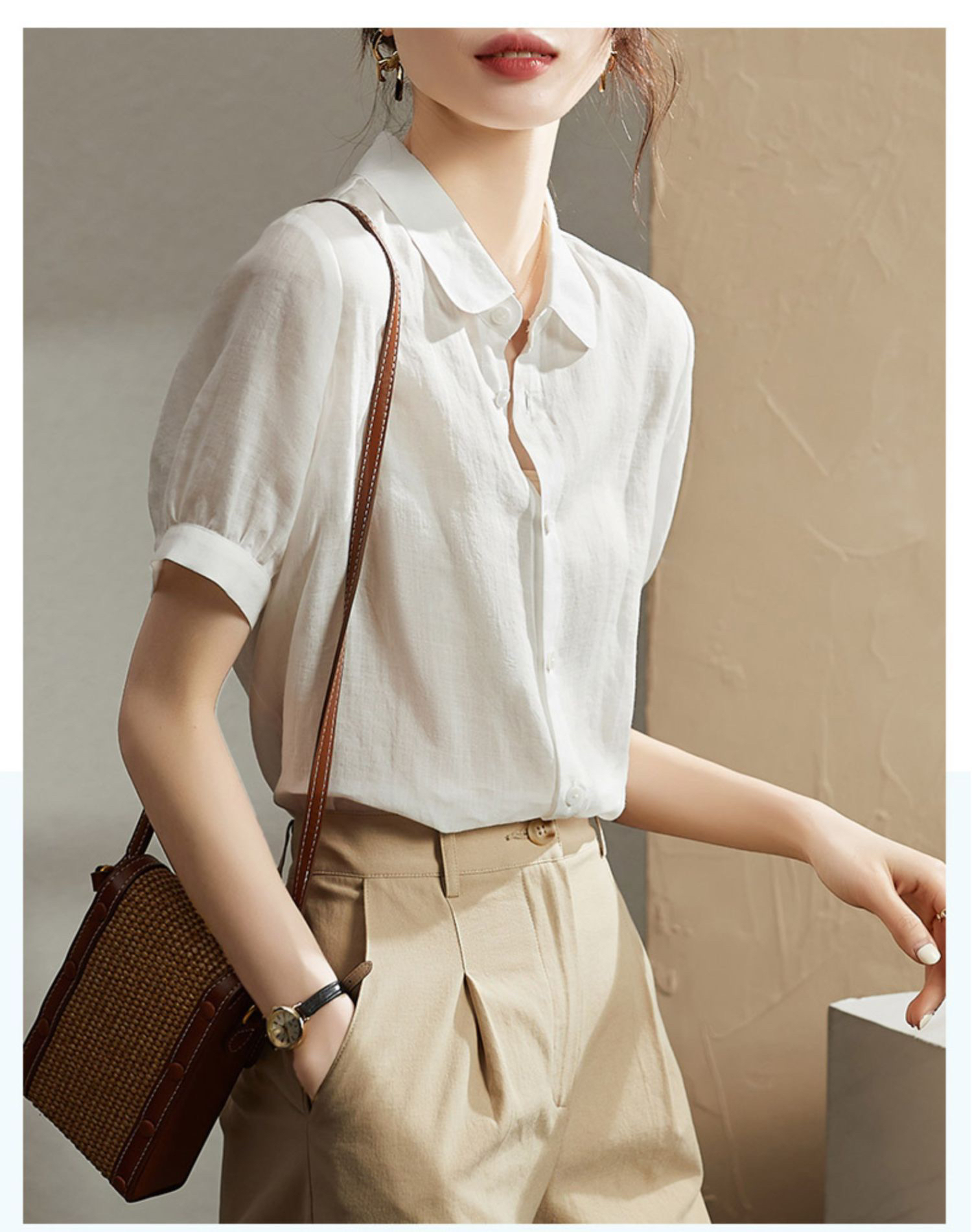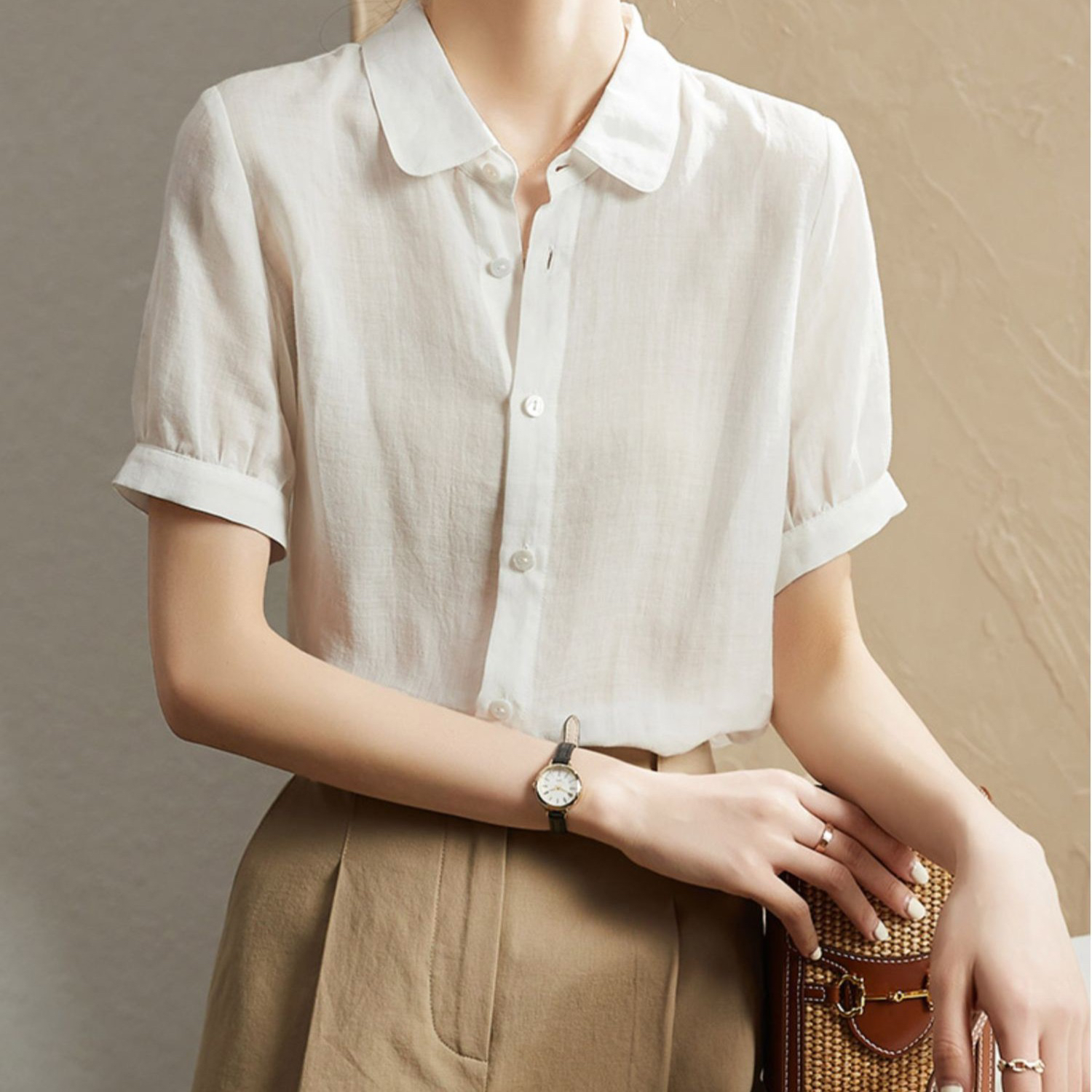 실크 여성 셔츠 반팔 봄 여름 프랑스식 Chic 품격 맨위 출퇴근 미니멀리즘 경력 ol 고급 센스 셔츠