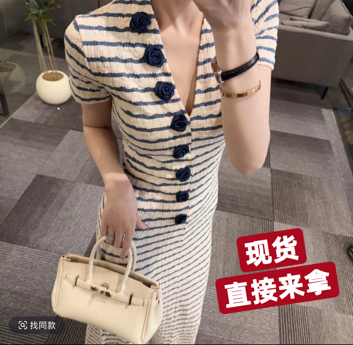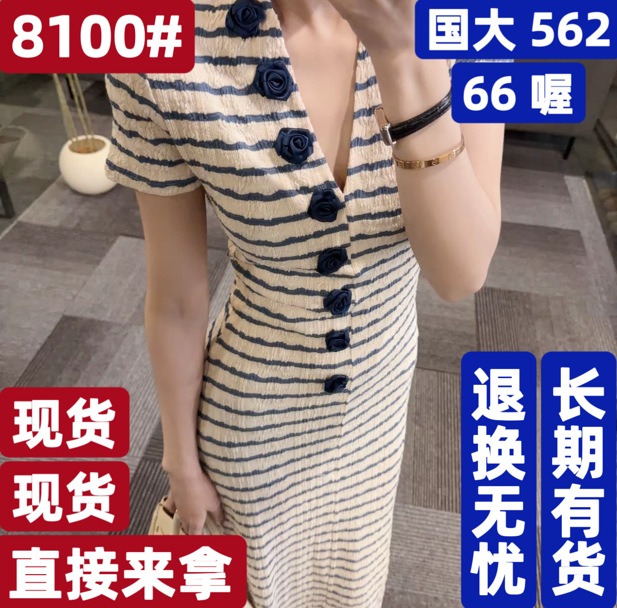 2026 여름 새로운 캐주얼 반팔 스트라이프 V넥 연령 감소 패션 느긋한 드레스