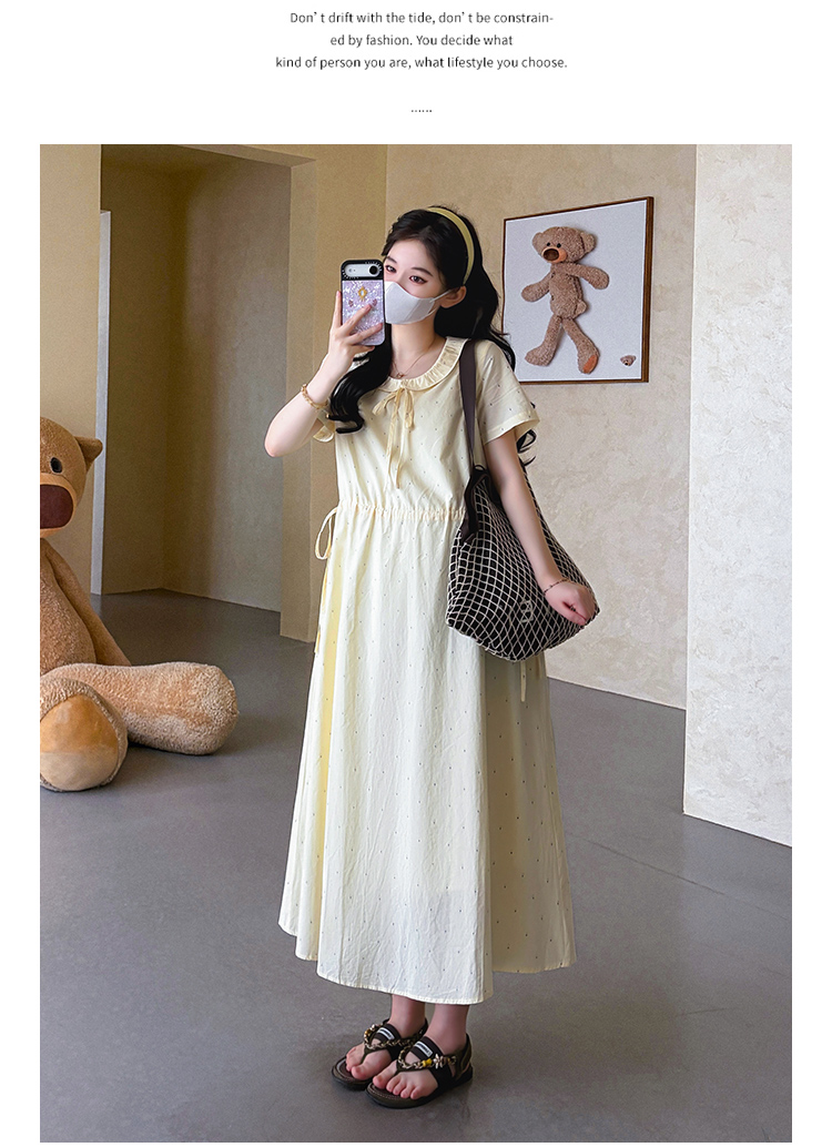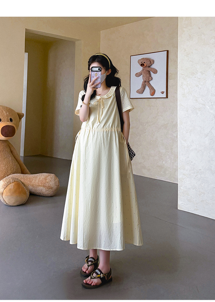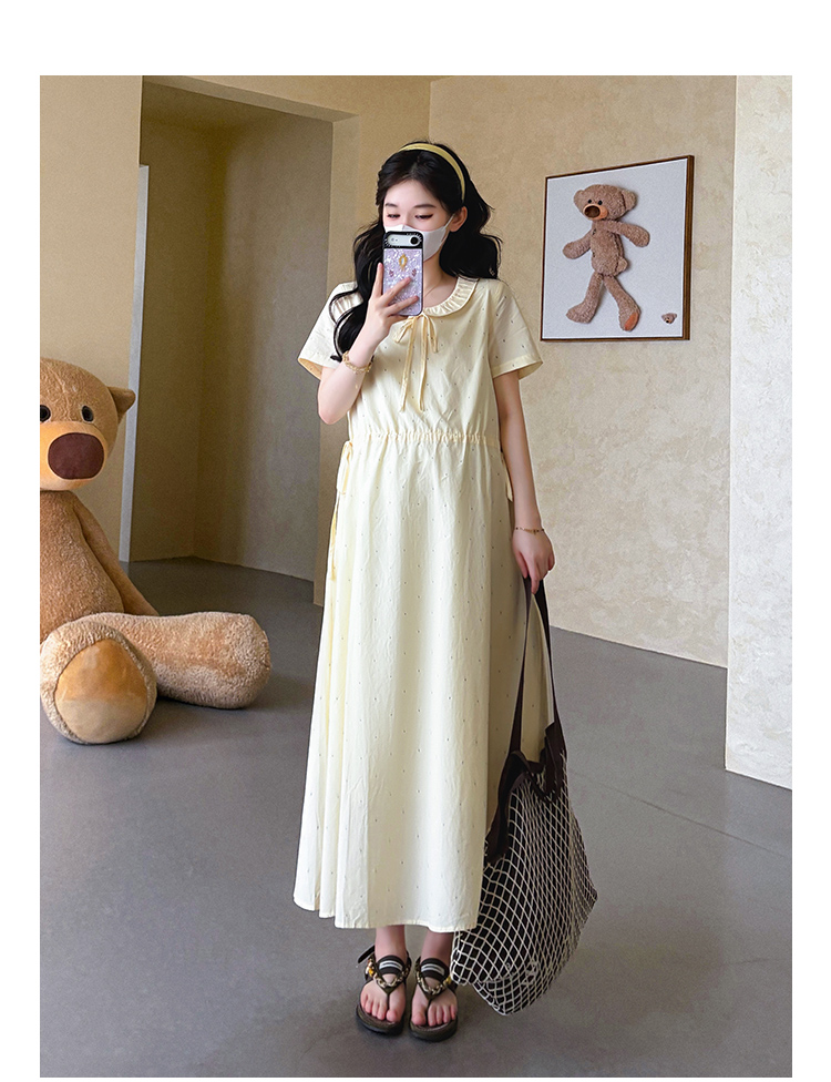 실사 지금 2026 여름 신제품 레이스 폴로 칼라 여름 롱 코트 반팔 드레스