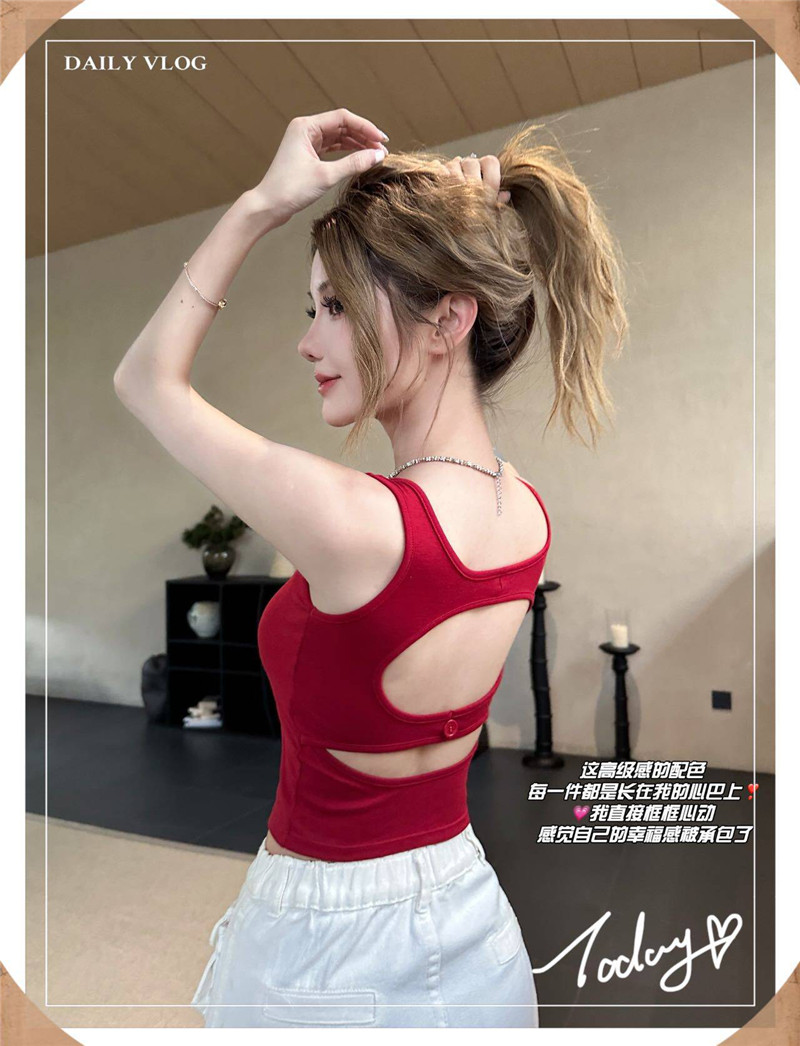 인터넷 유명인 섹시함 뒤로 홀로우 아웃 작은 가슴 디스플레이 대 와이드 어깨끈 캐미솔 벨트 가슴 패드 수 있습니다. 외출용 인사이드 잡아라. 의류