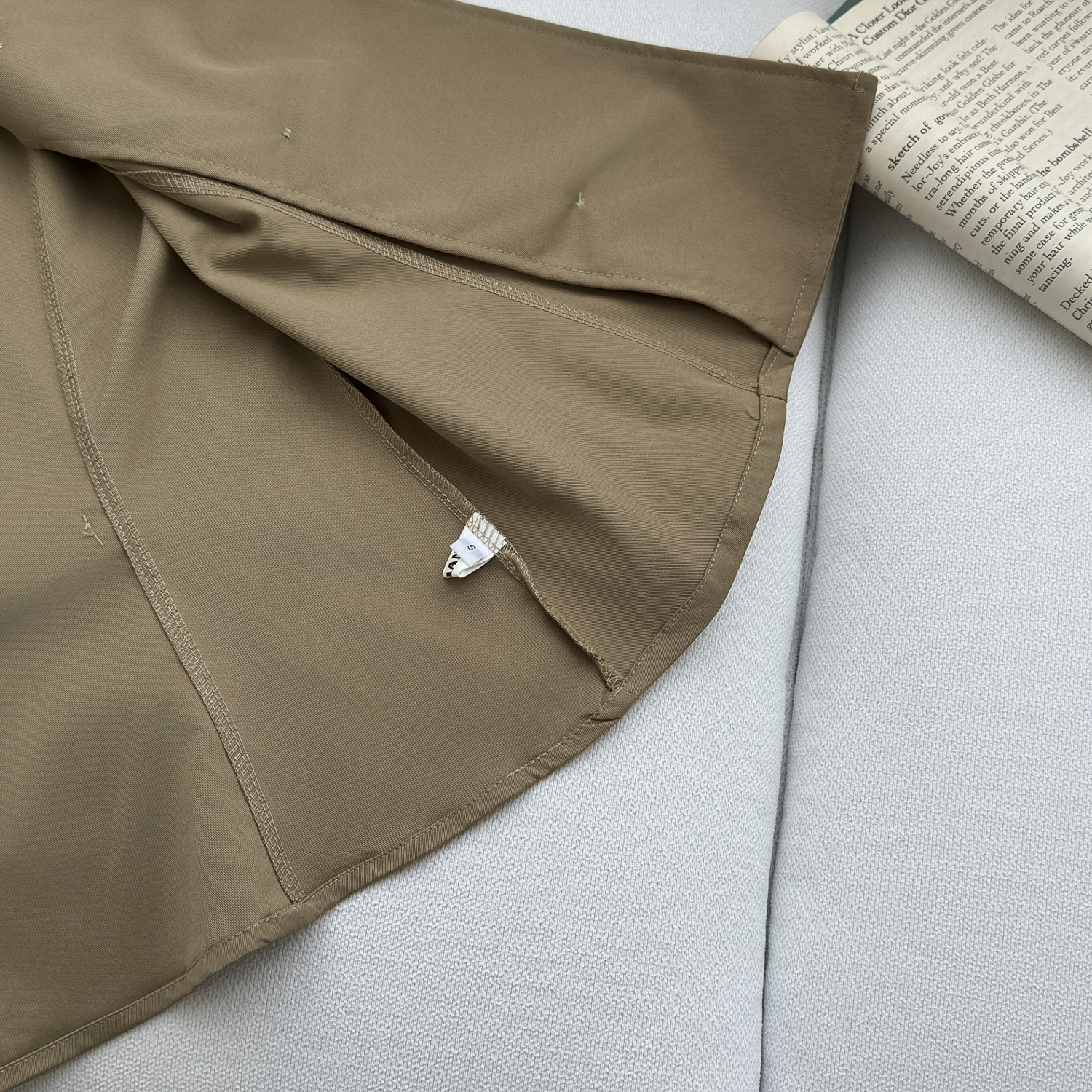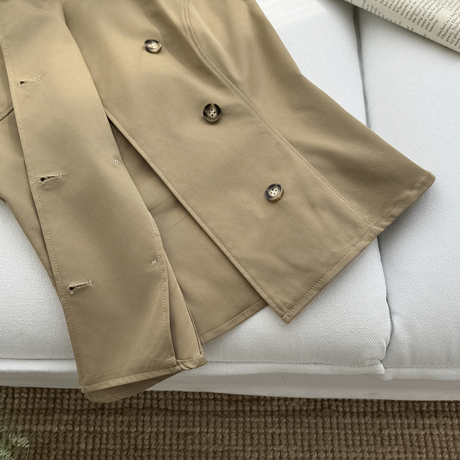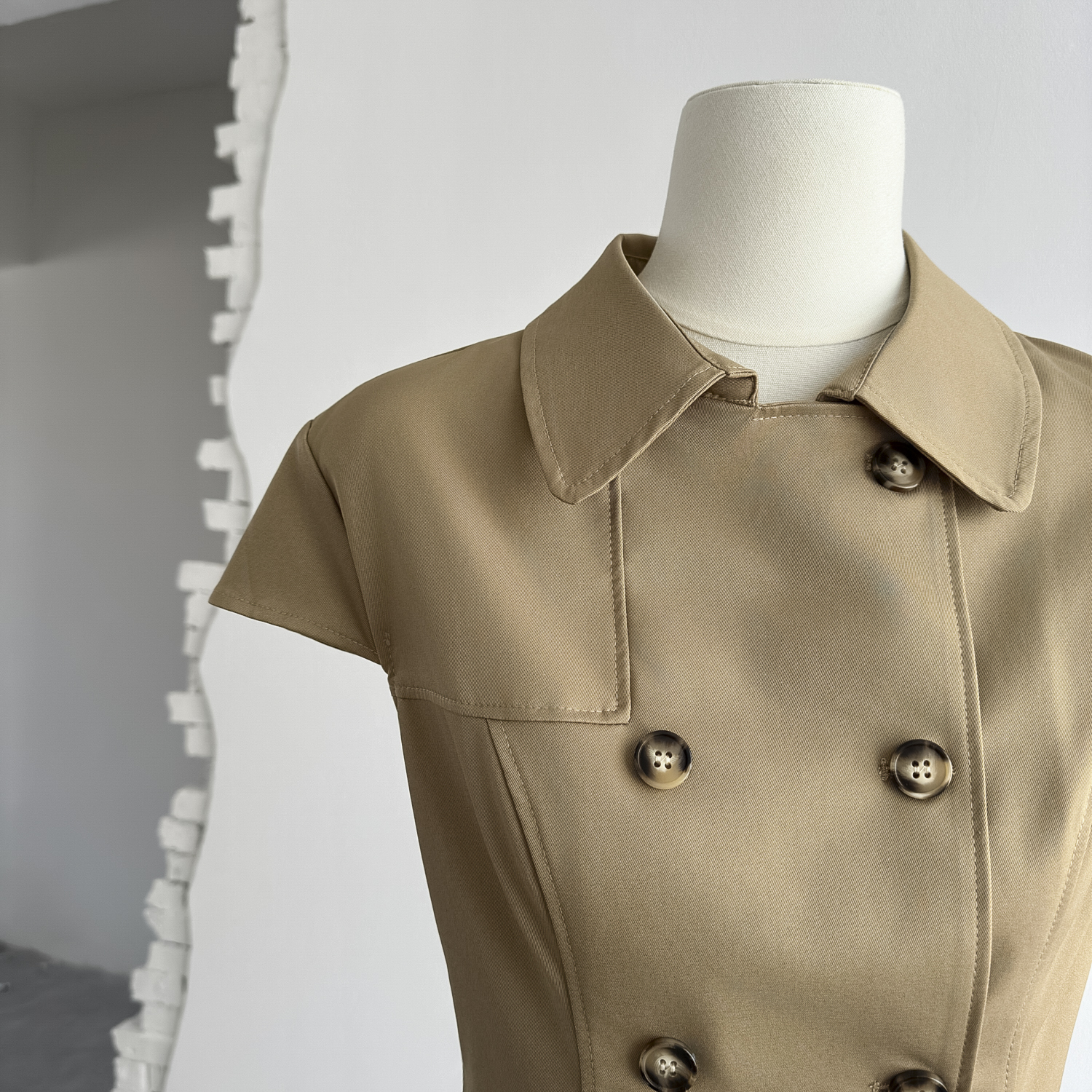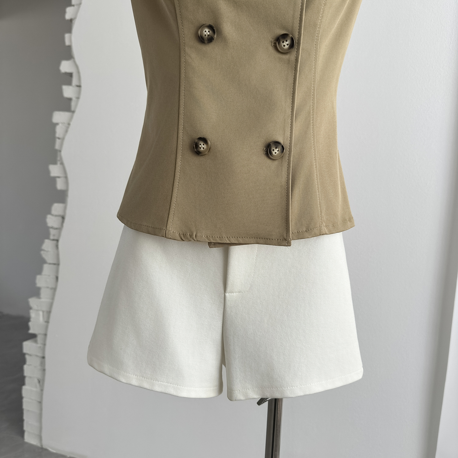 call a day 카키 색 화이트 폴로 칼라 이중 버튼 허리 수축 반팔 여성 셔츠 긍정적 인 어깨 슬림해 보이는 셔츠