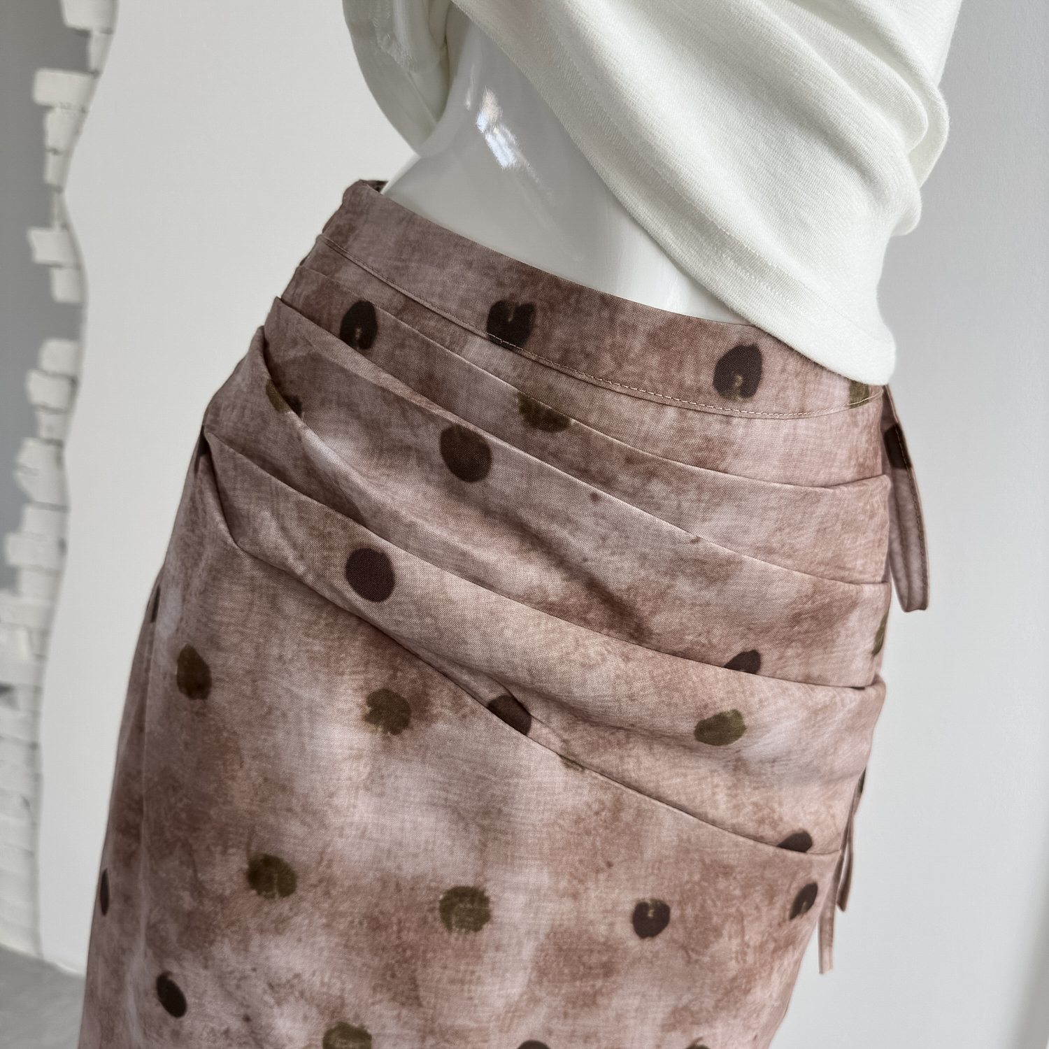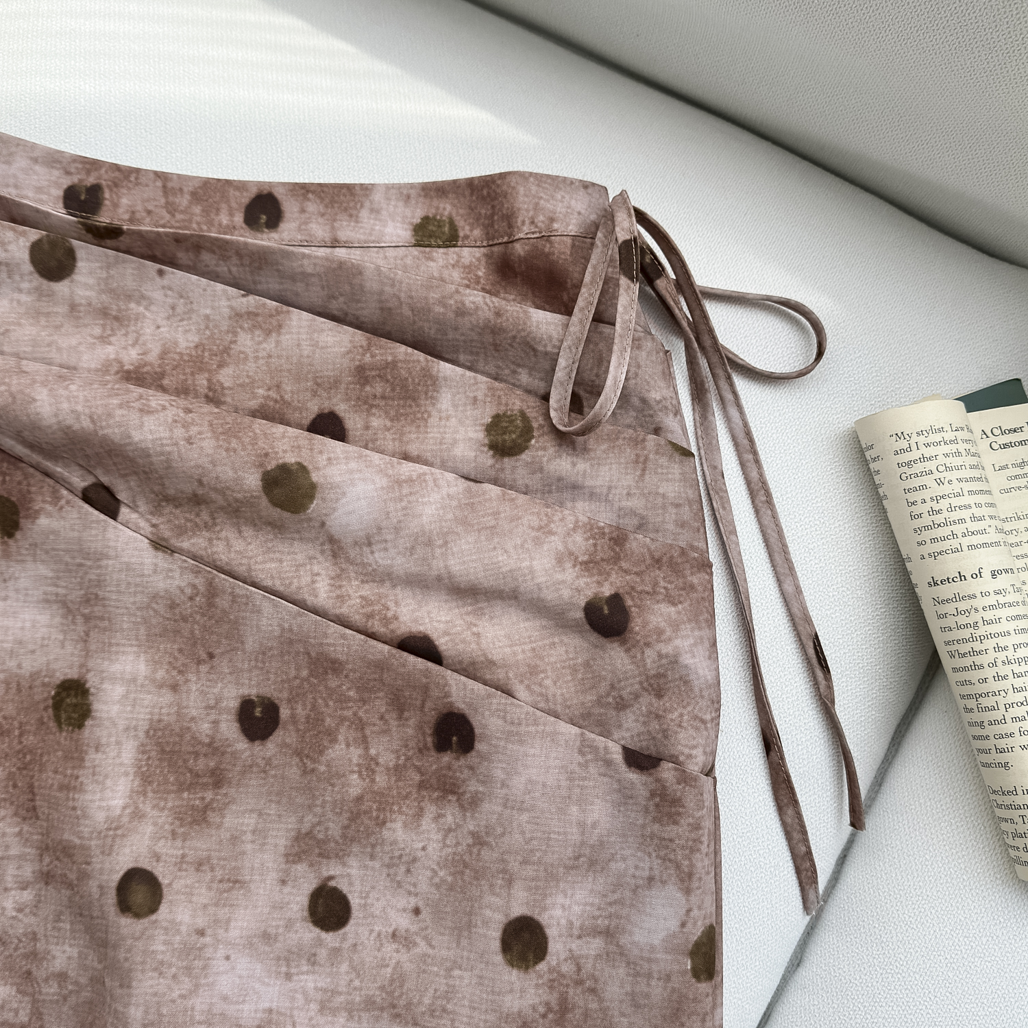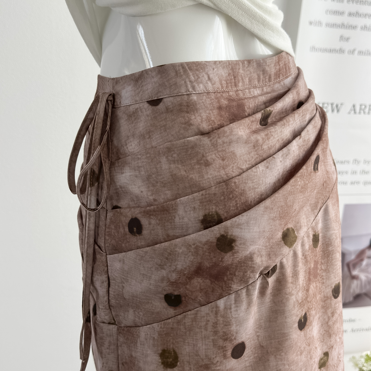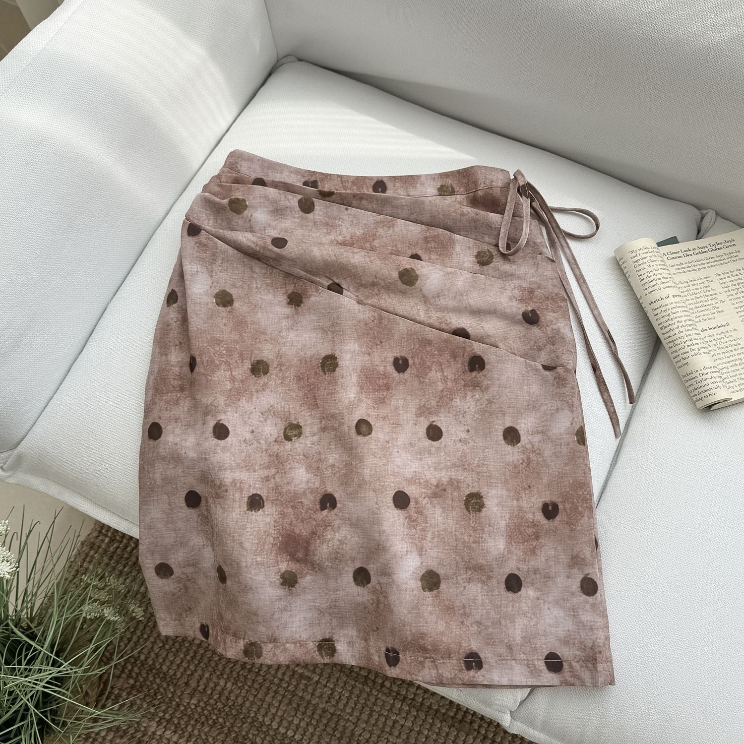 acosey 오리지널 디자인 라이 경기 서울 아마 뽕나무 누에 실크 세트 염색 도트 무늬 흔들다 Pleat 로마 Pleat 스트레이트 반 스커트
