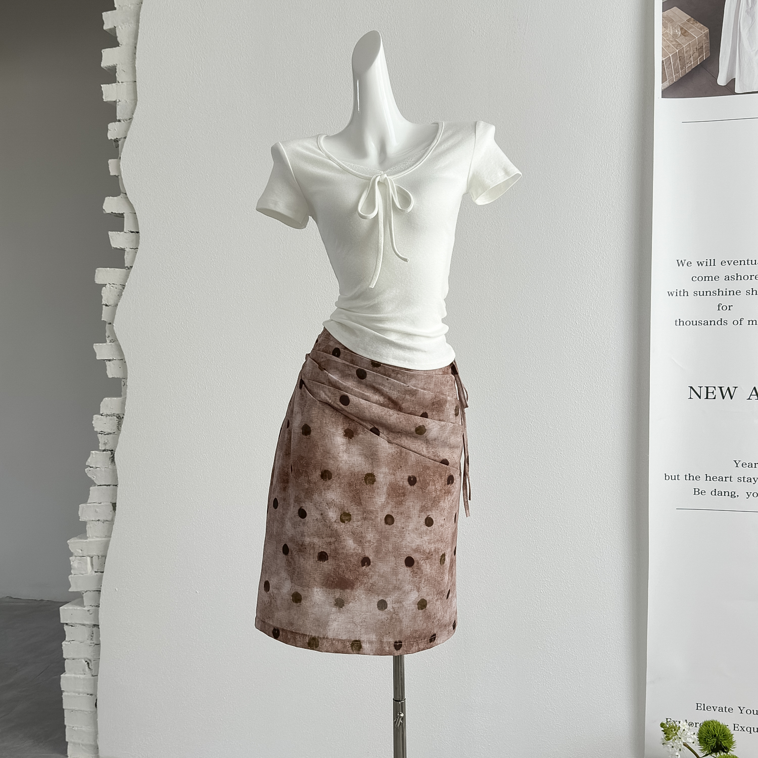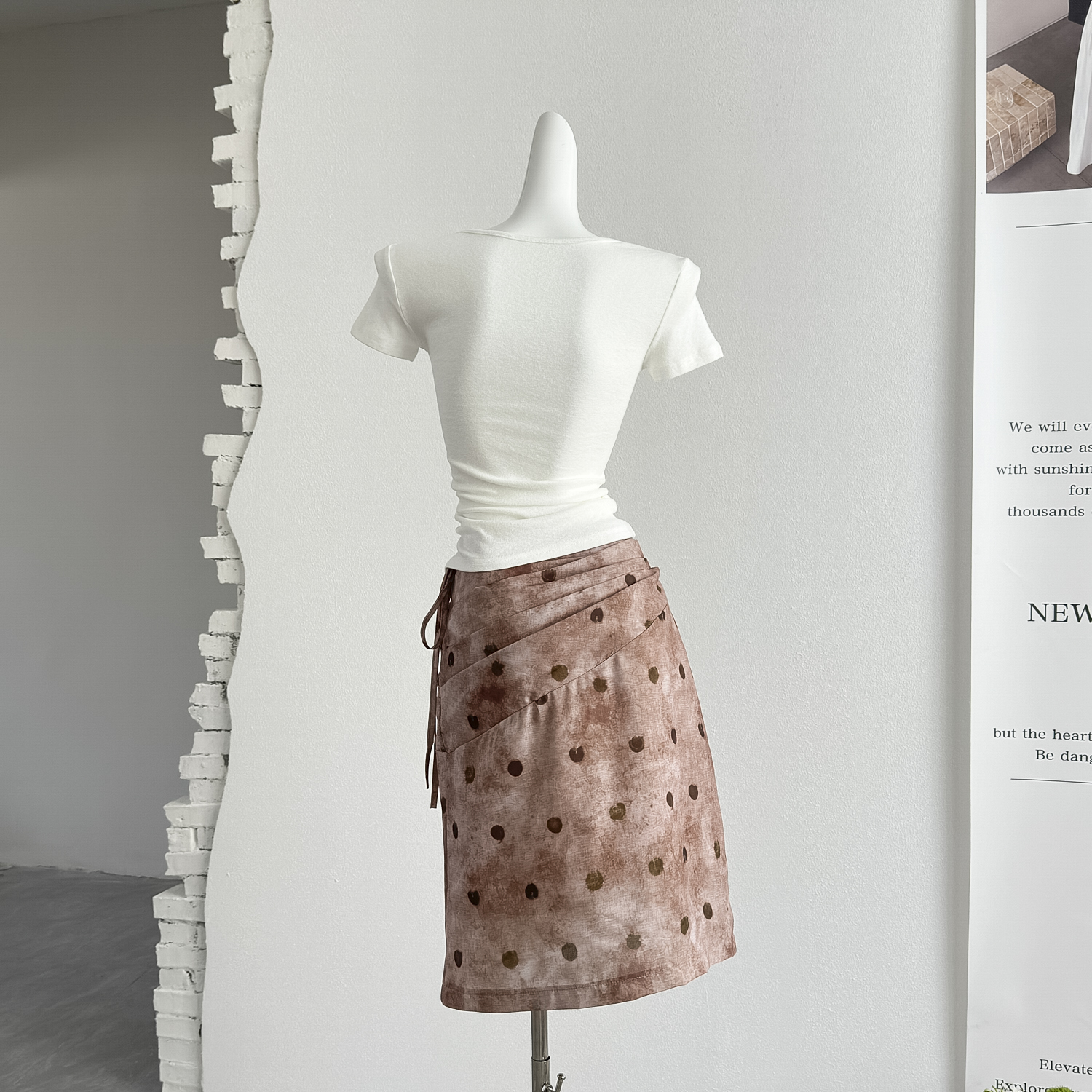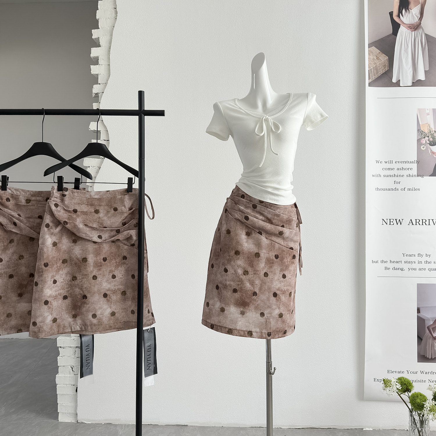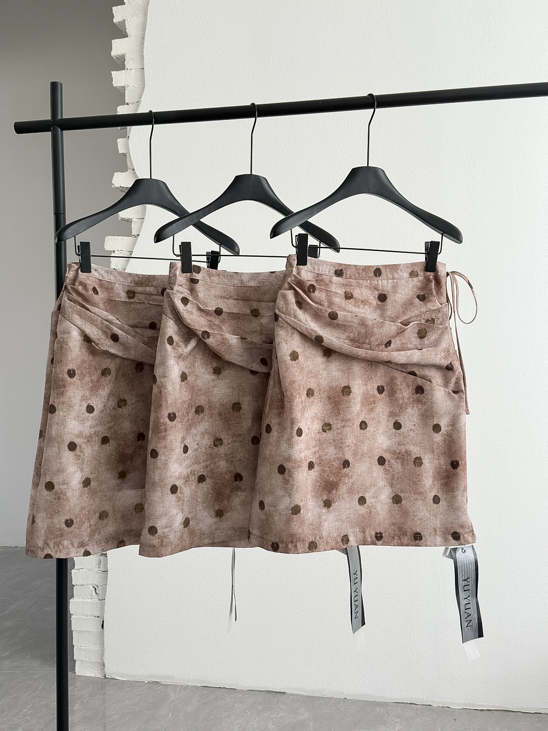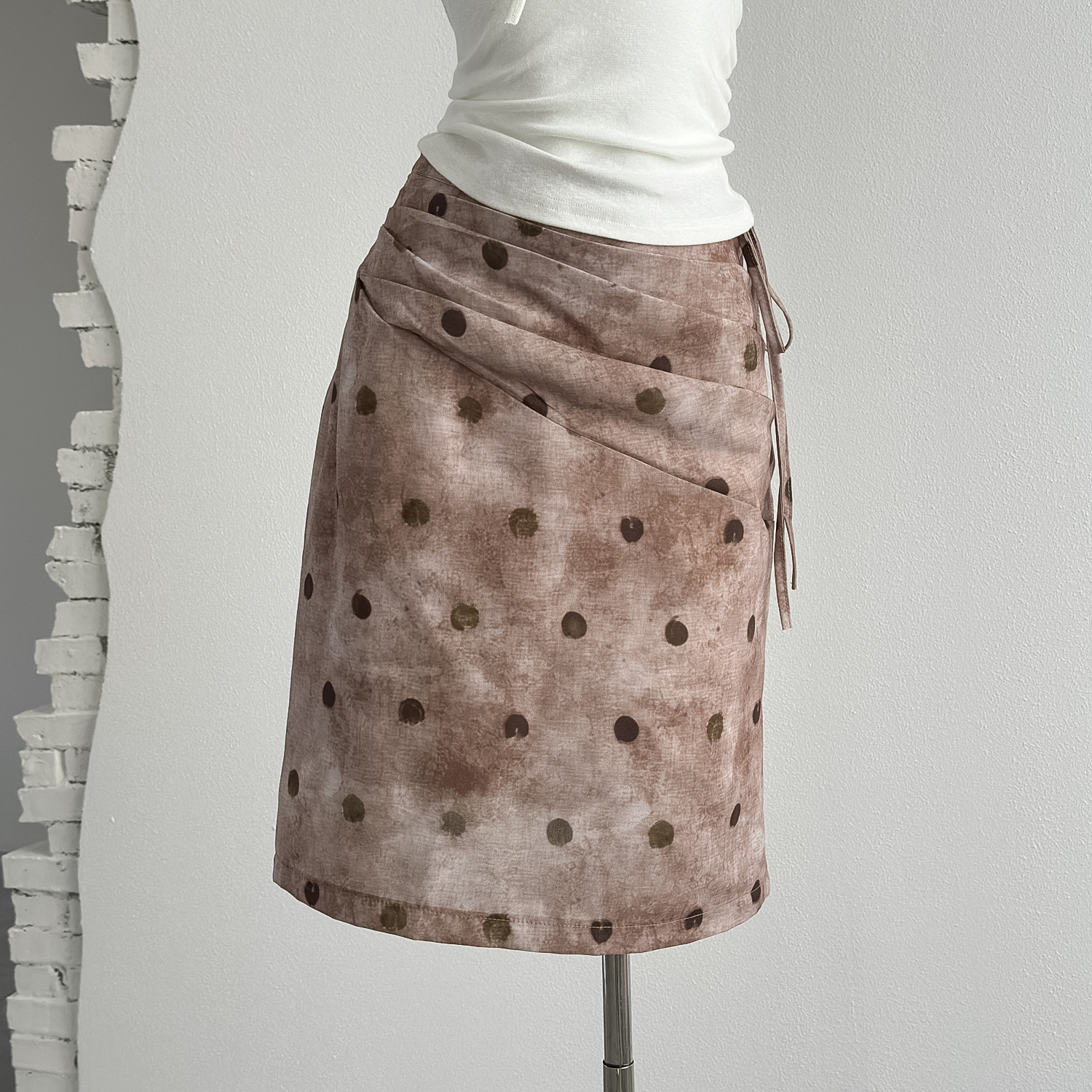acosey 오리지널 디자인 라이 경기 서울 아마 뽕나무 누에 실크 세트 염색 도트 무늬 흔들다 Pleat 로마 Pleat 스트레이트 반 스커트