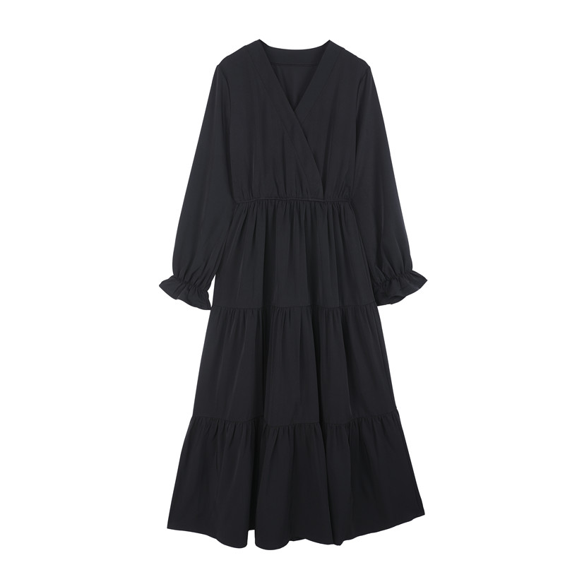 실사 거품 소매 작은 검은 드레스 빅 사이즈 해군 칼라 드레스 지방 mm 허리 수축 슬림해 보이는 A라인 스커트
