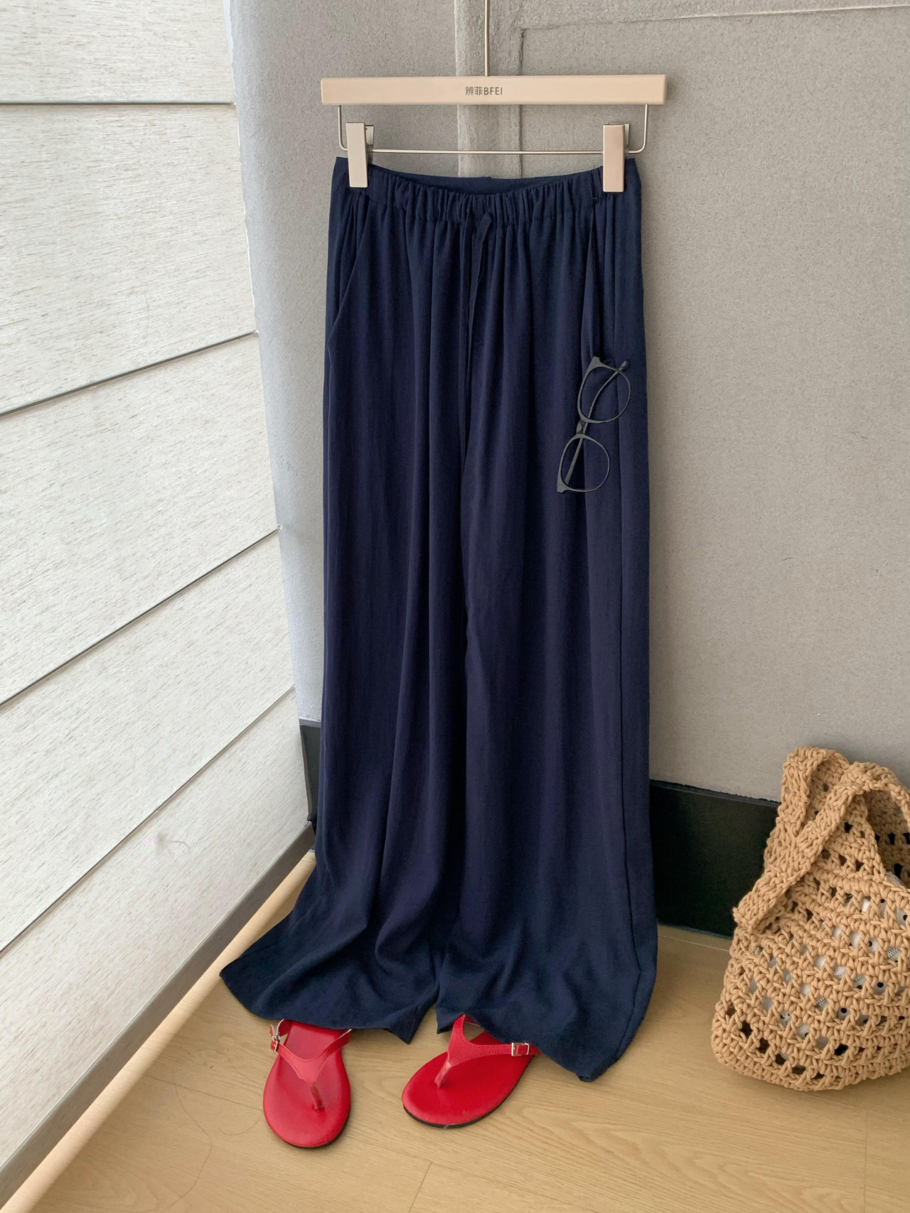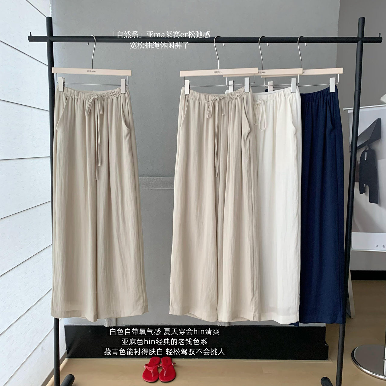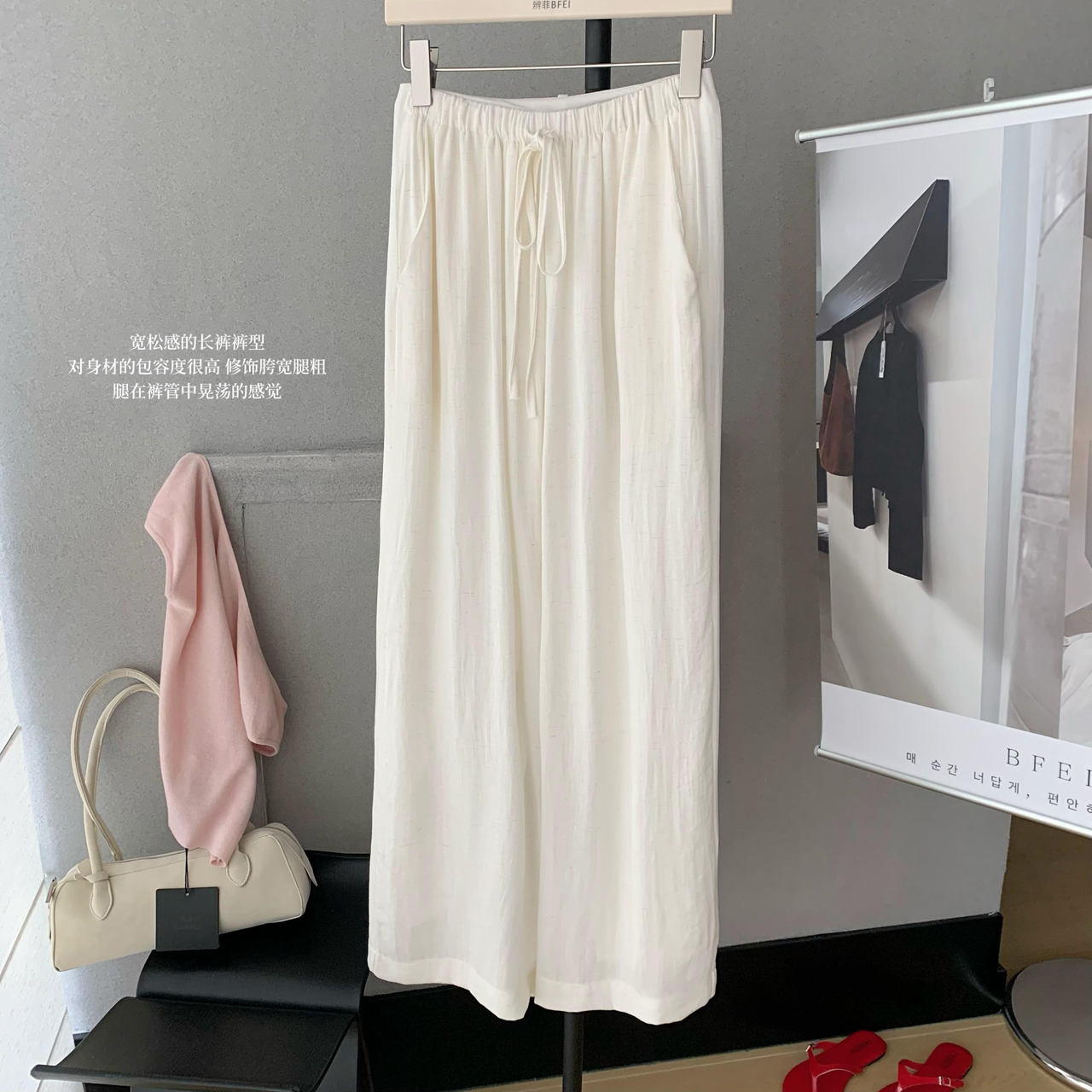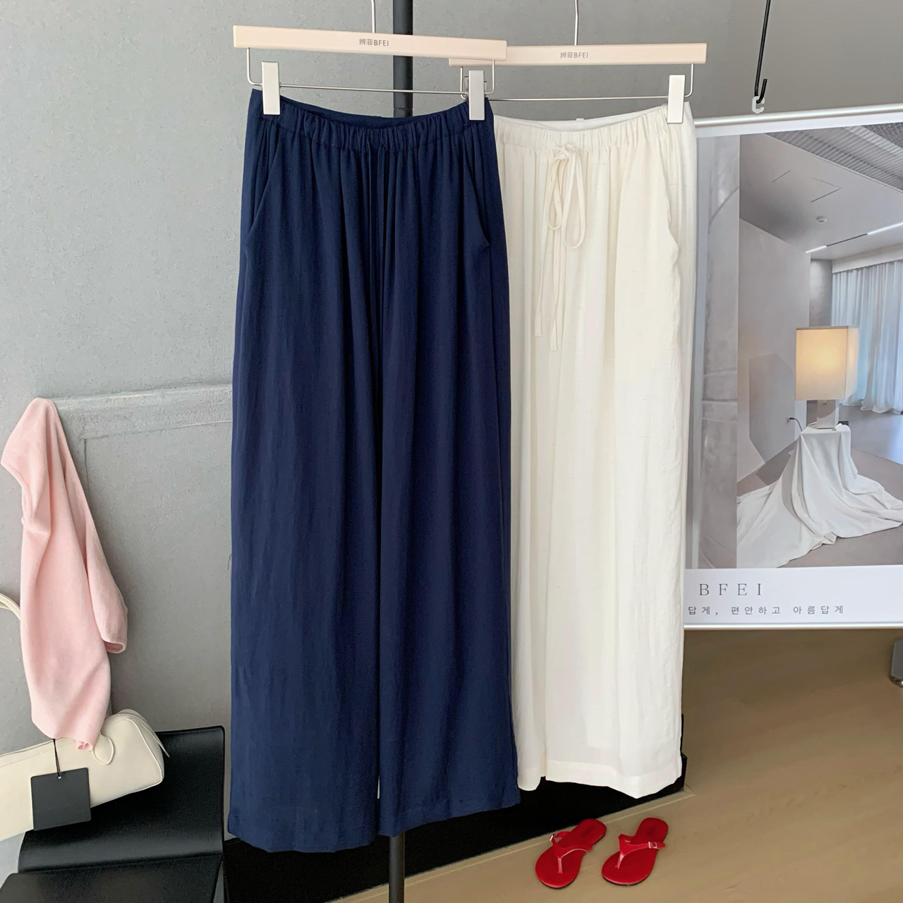 안녕하세요. 팬 팬 자연 부서 100 아마 라이 경기 서울 긴 바지 여성 느슨함 센스 루즈핏 펌프 로프 캐주얼 바지