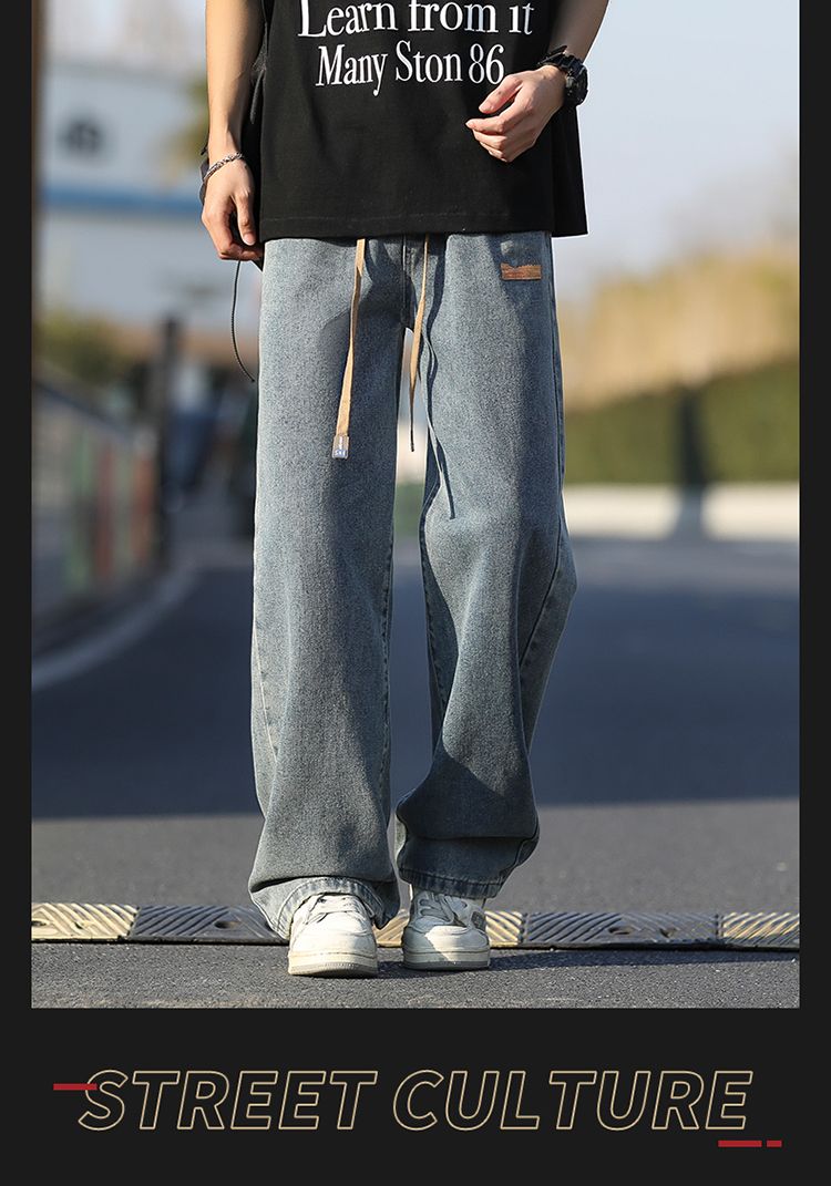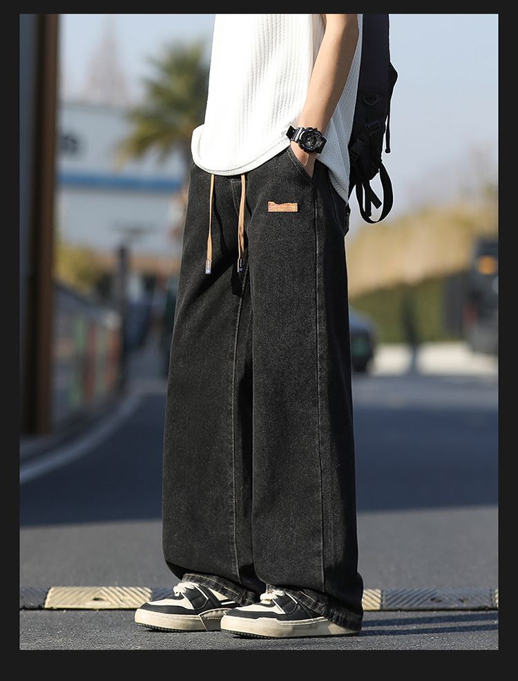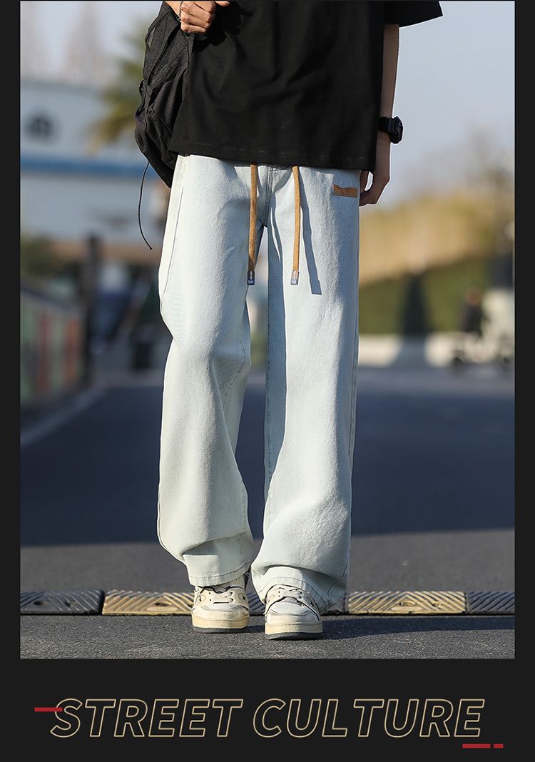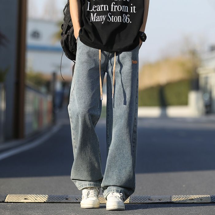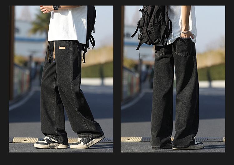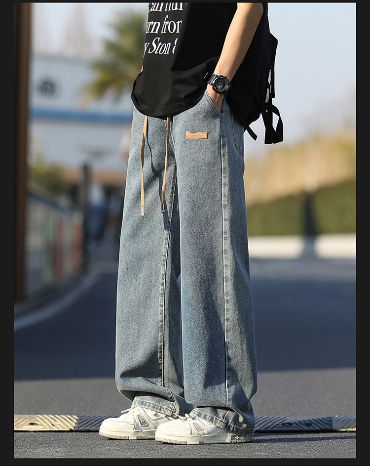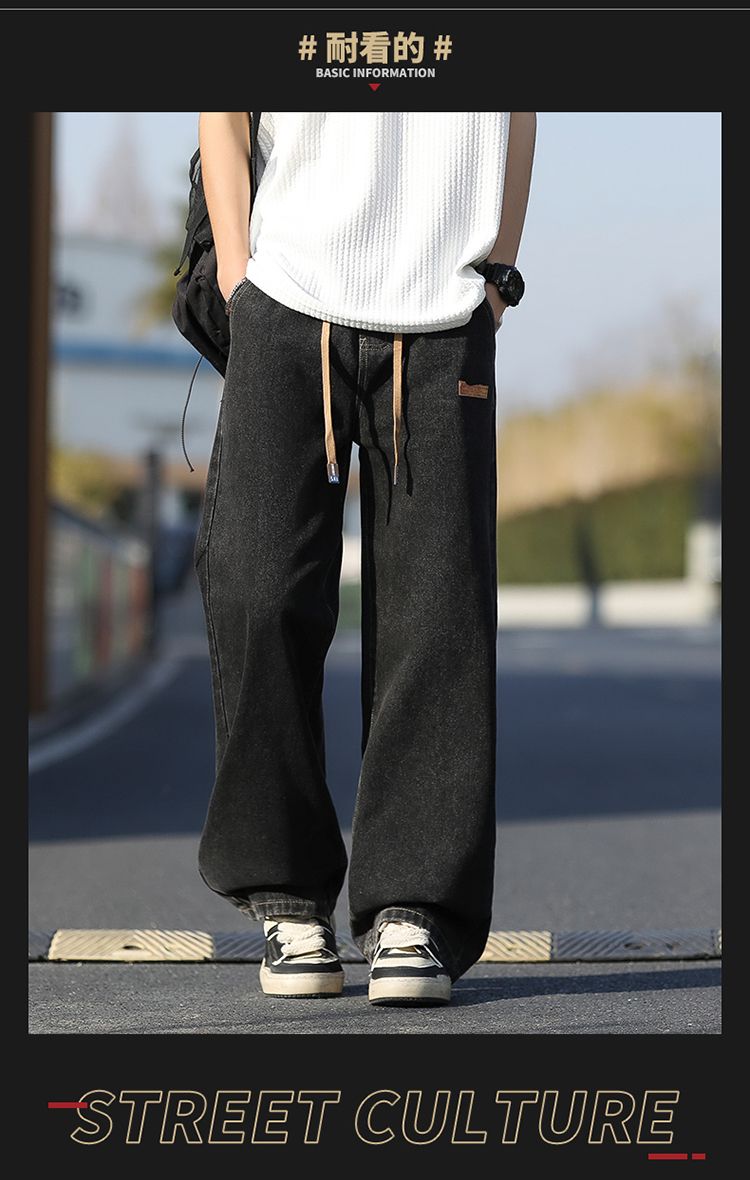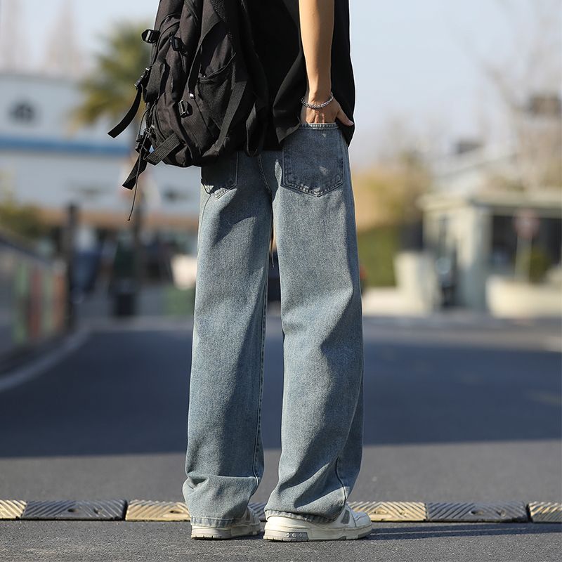 사계절 워시 물 바닥 청소 남성 청바지 레트로 항구 바람 루즈핏 스트레이트 트렌드 다용도 바지 와이드 레그 팬츠 긴 바지
