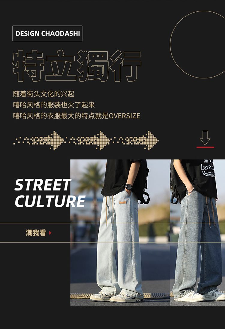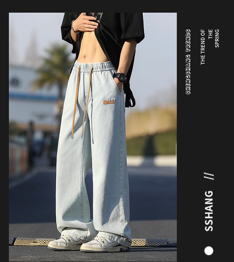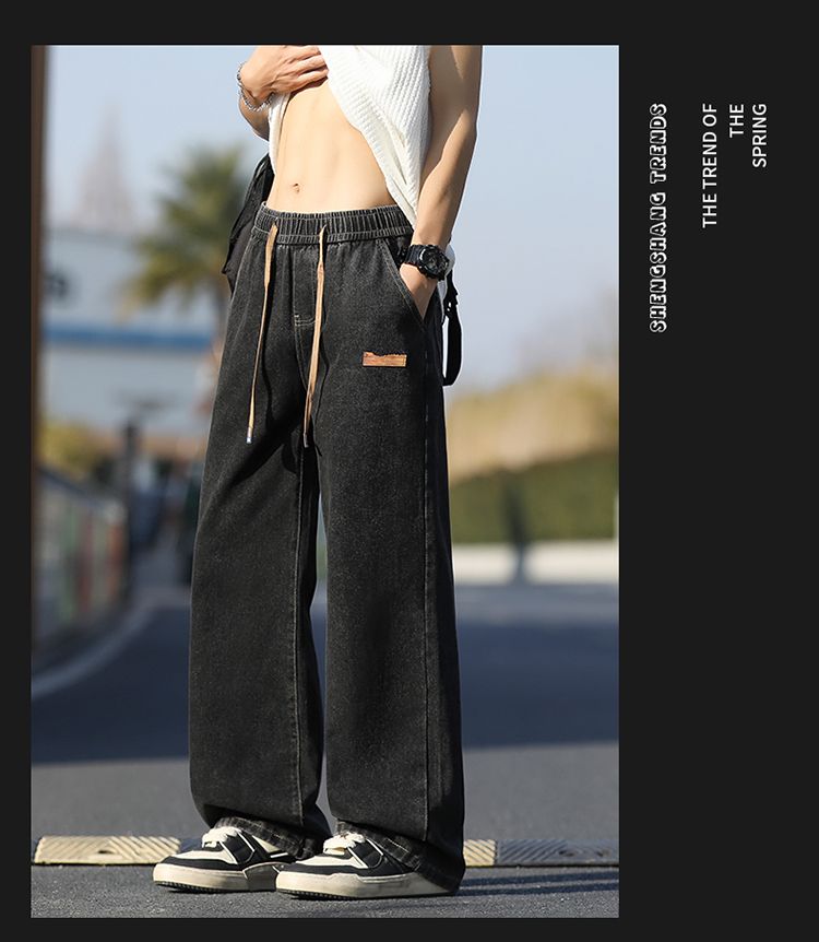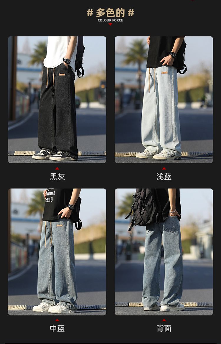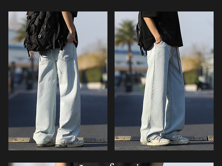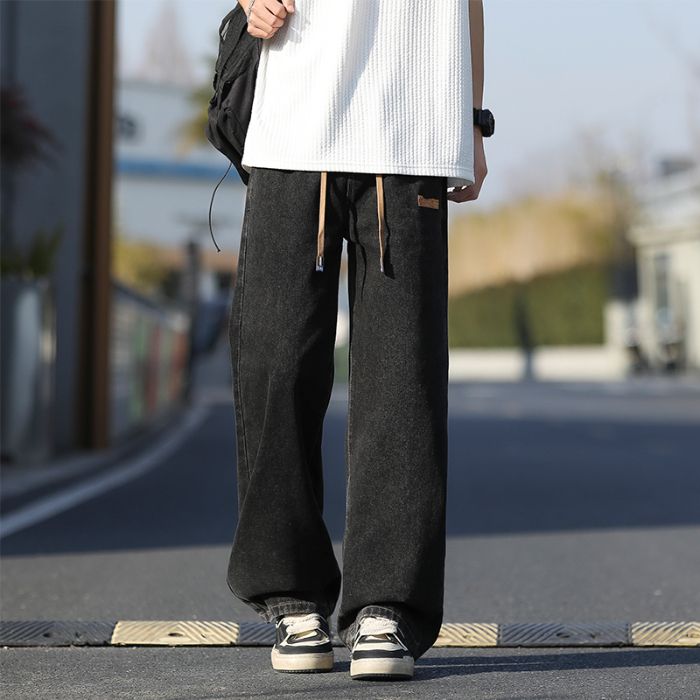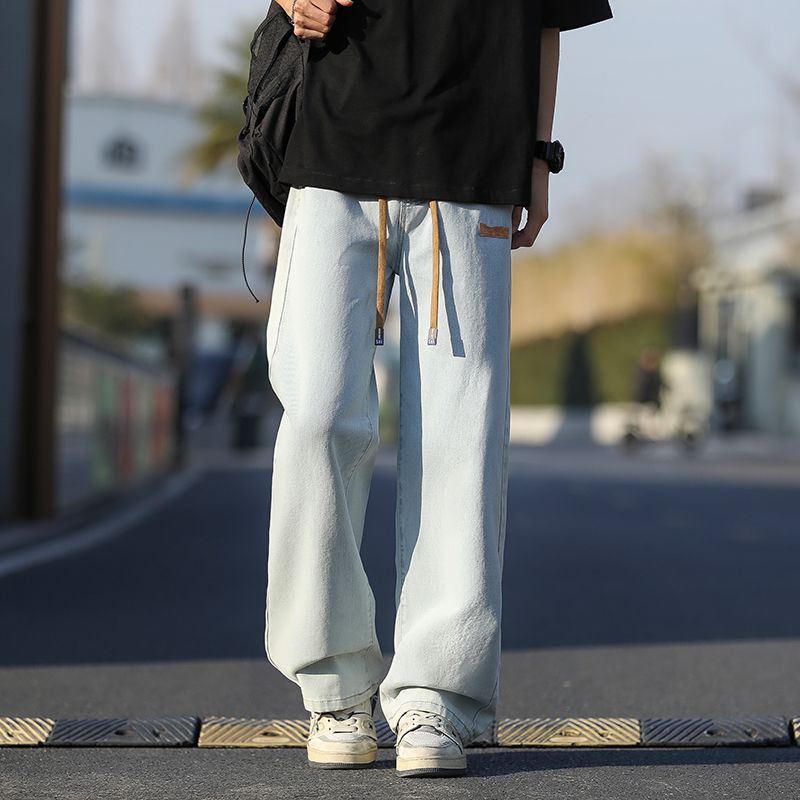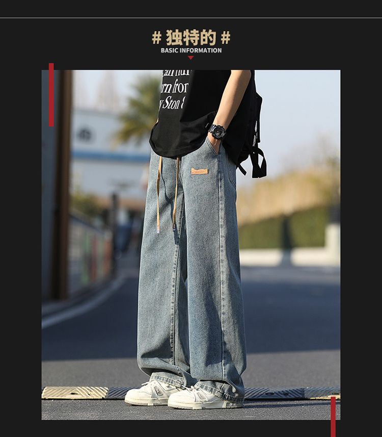 사계절 워시 물 바닥 청소 남성 청바지 레트로 항구 바람 루즈핏 스트레이트 트렌드 다용도 바지 와이드 레그 팬츠 긴 바지