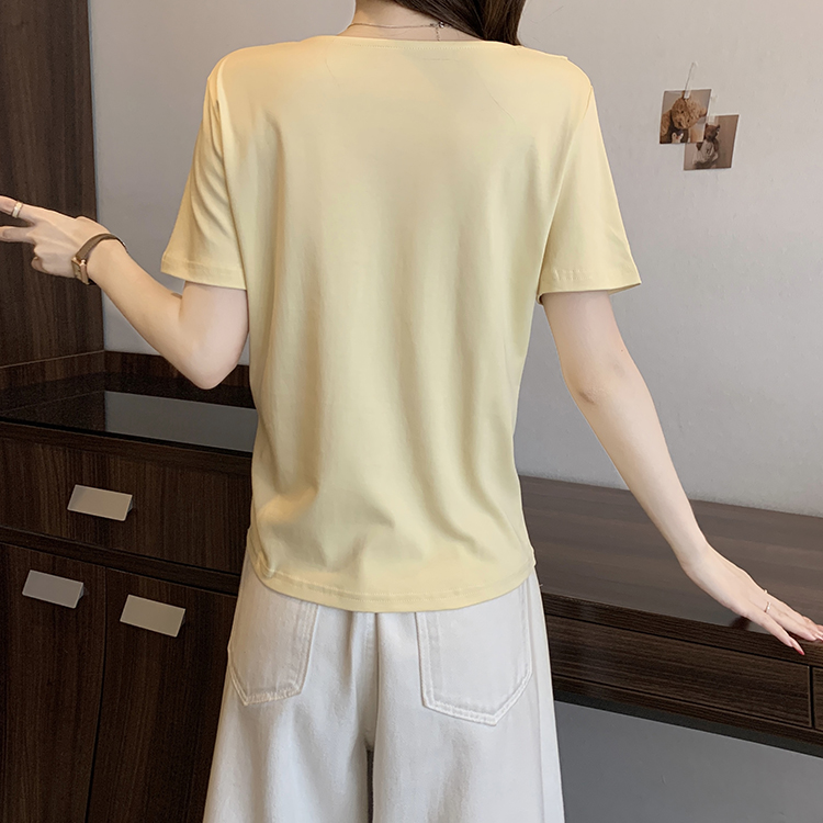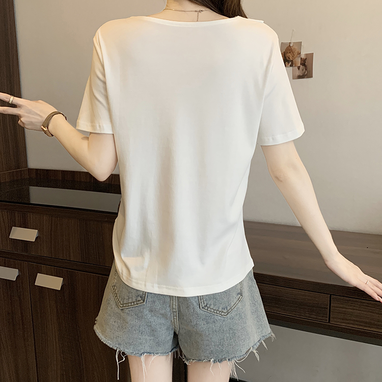 실사 2026 여름 드레스 새로운 지방 mm 빅 사이즈 여성 레저 품격 광장 칼라 불규칙 트임 반팔 티셔츠
